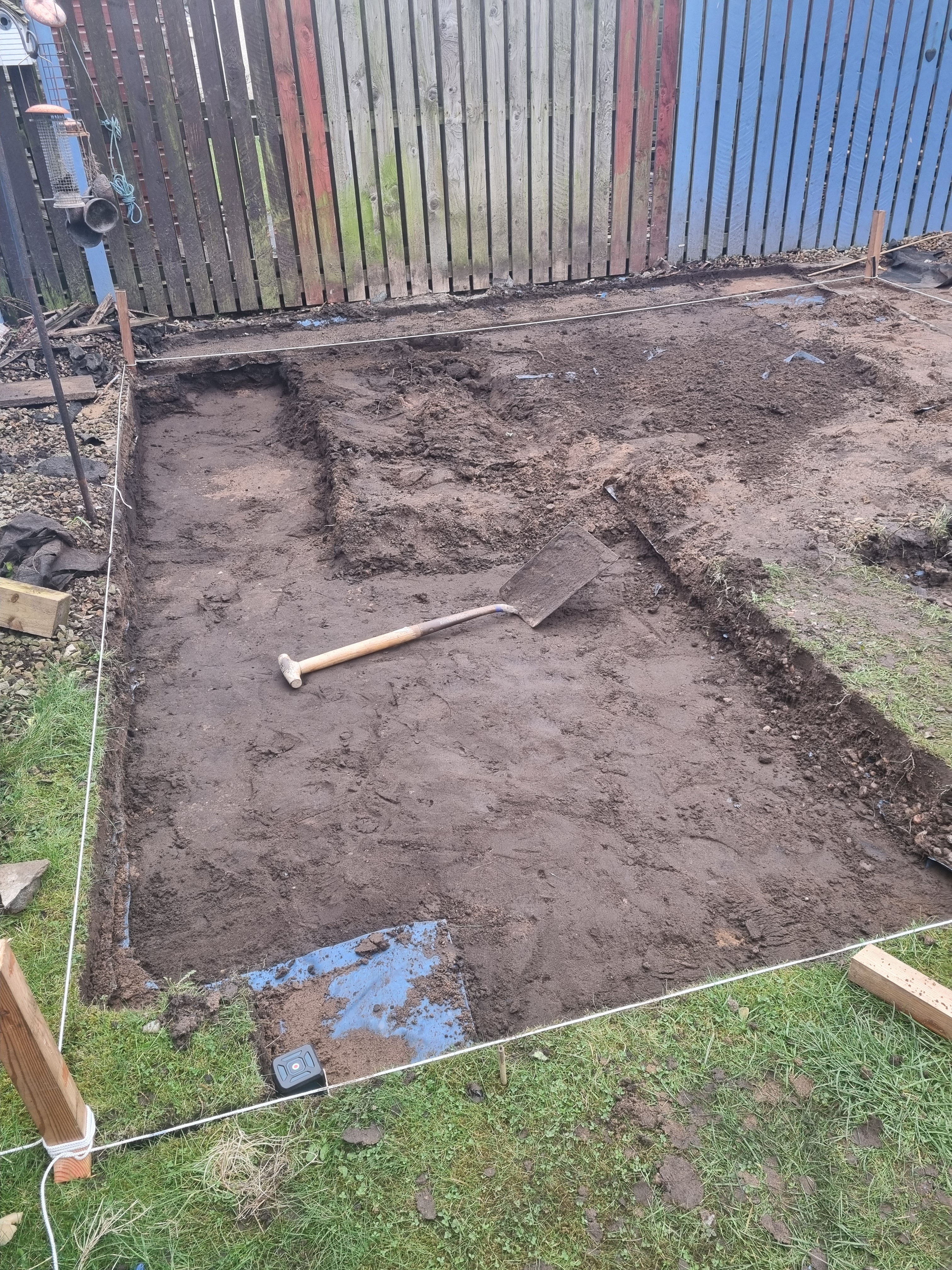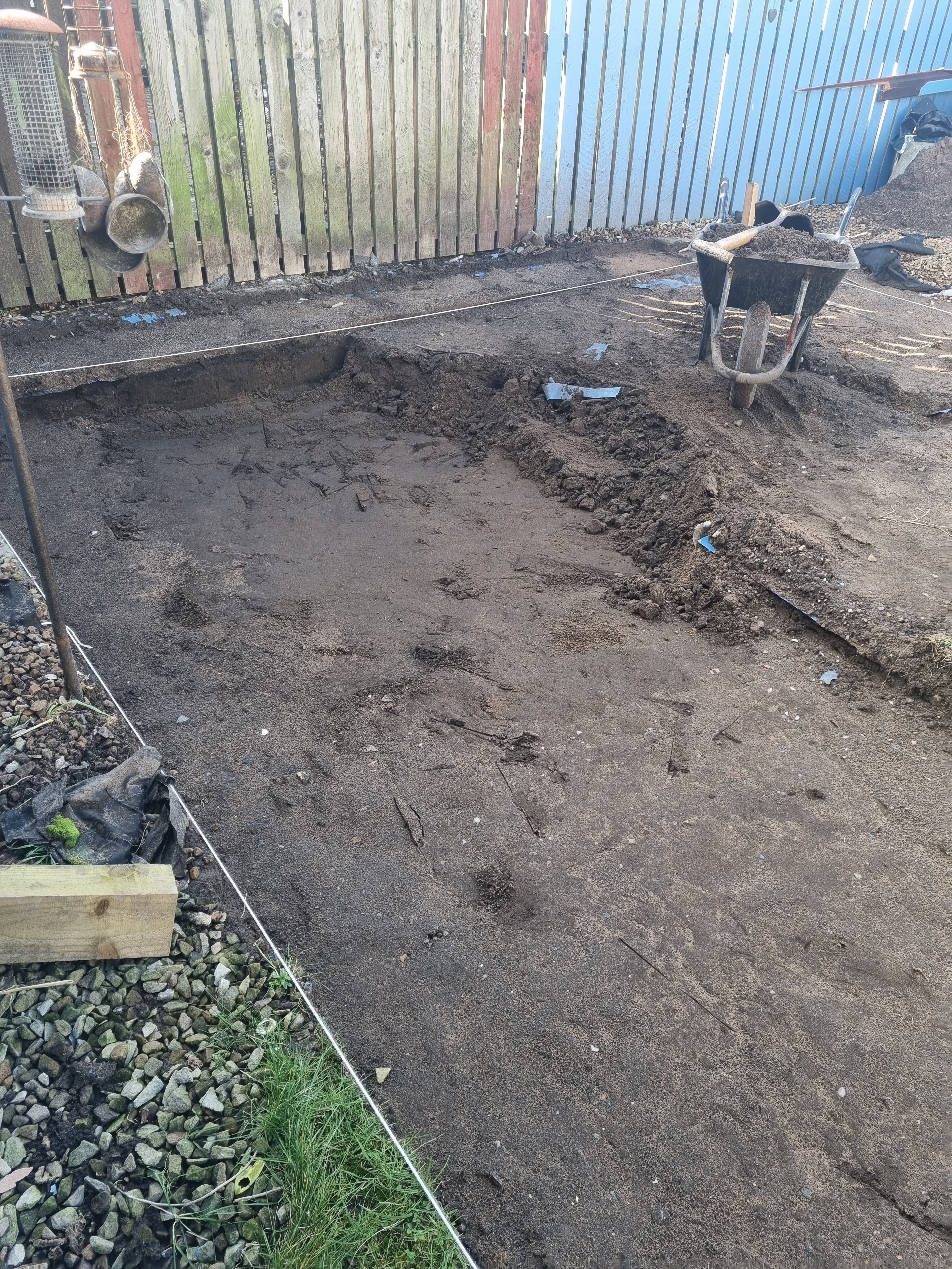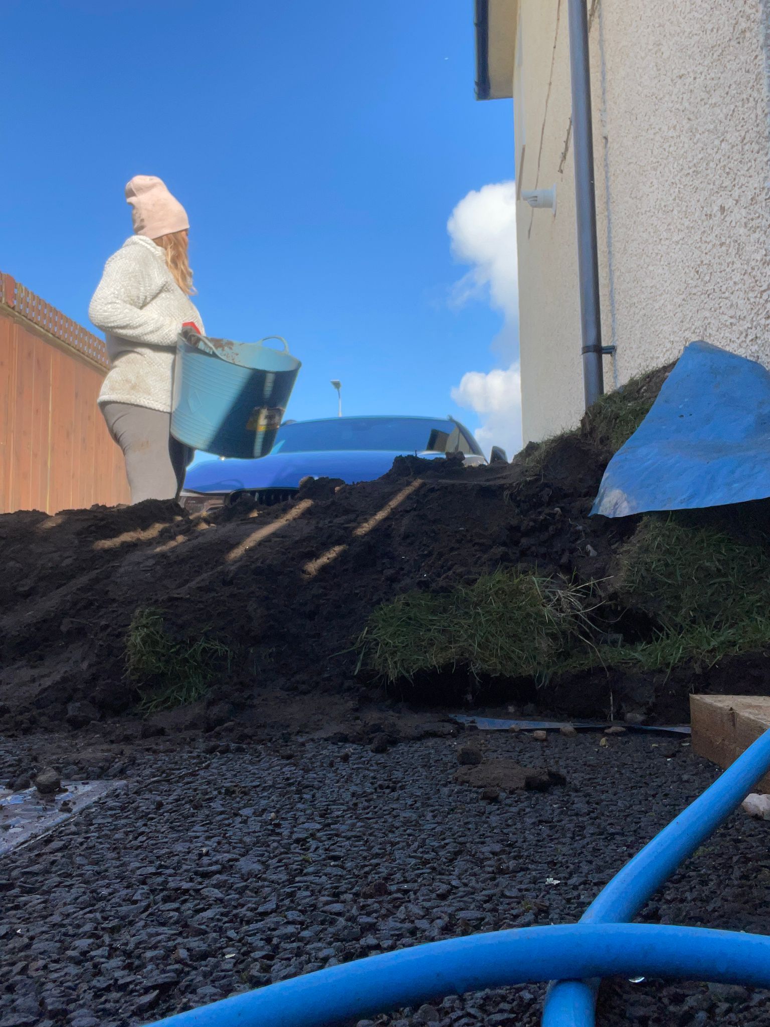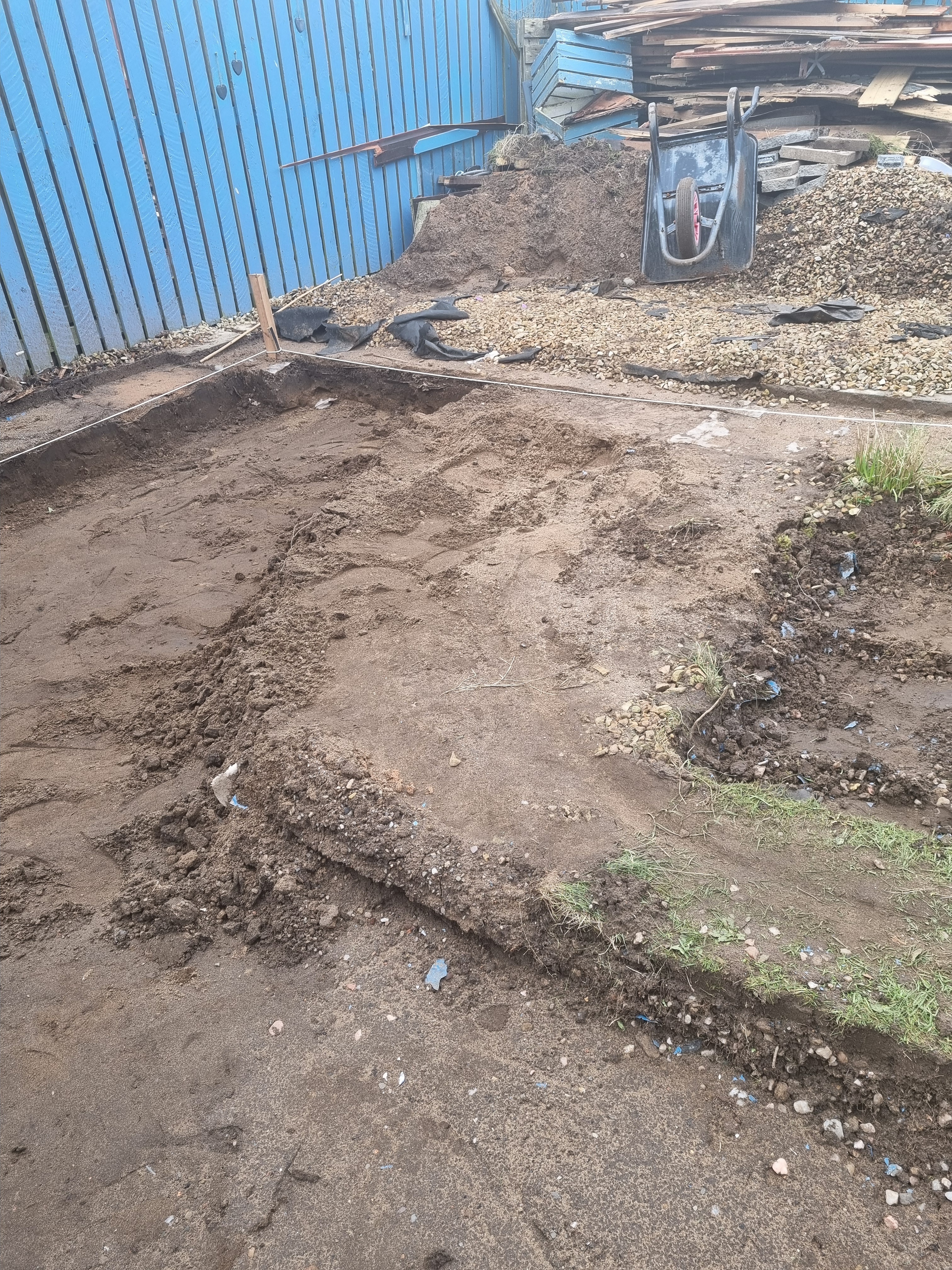 Site levelling underway but cut short as there's no more space for the waste topsoil!! Skip arriving tomorrow...