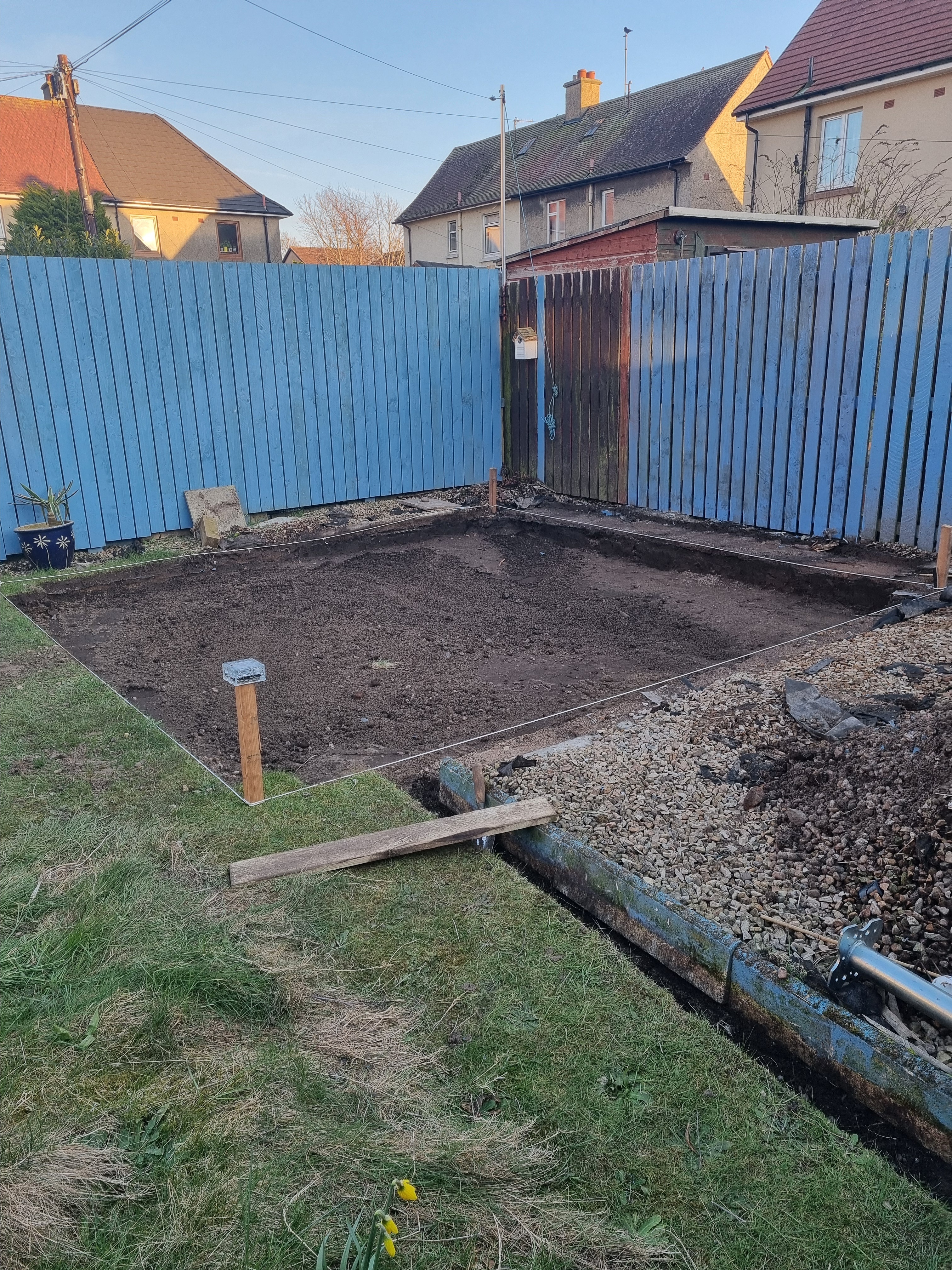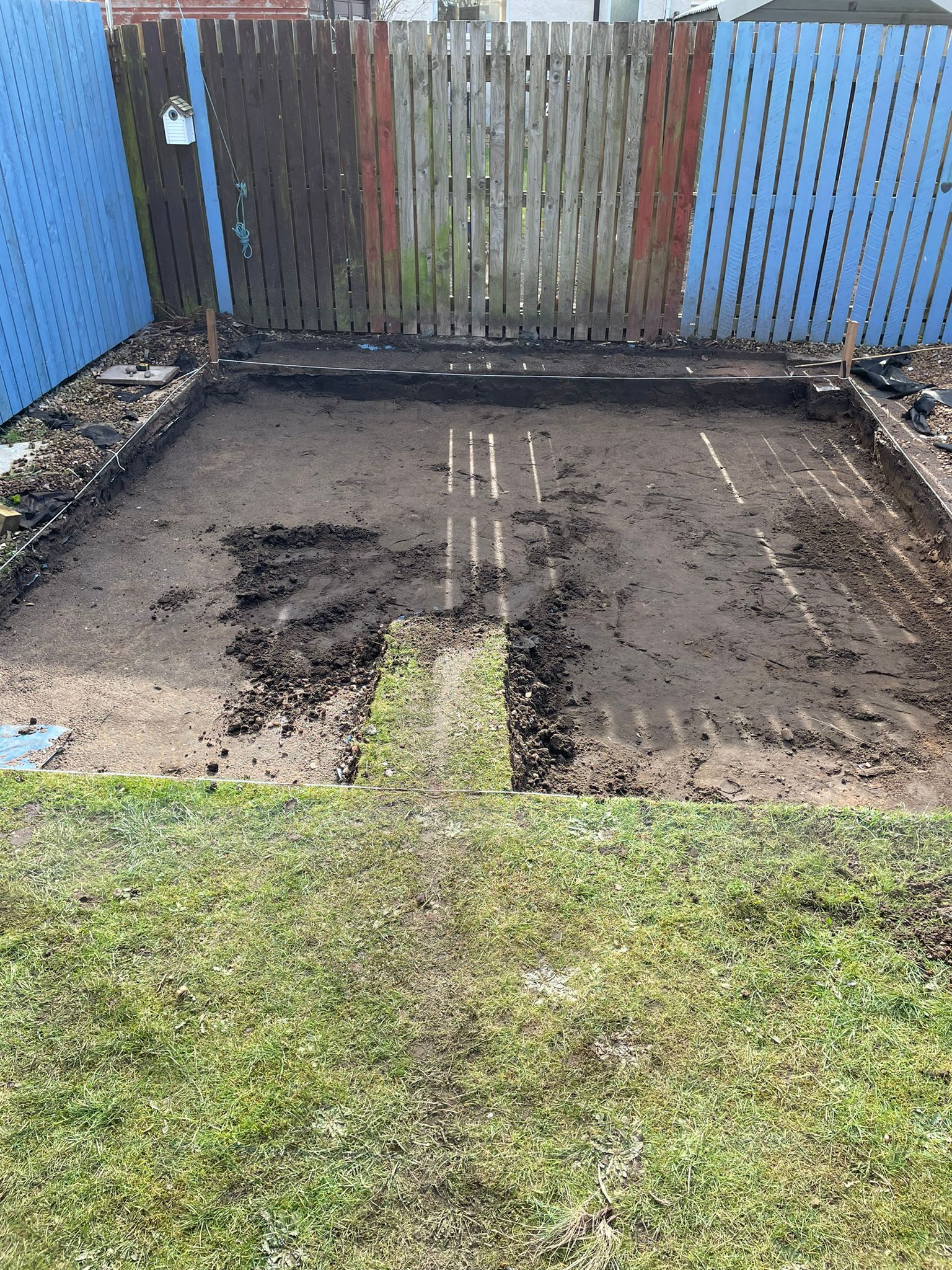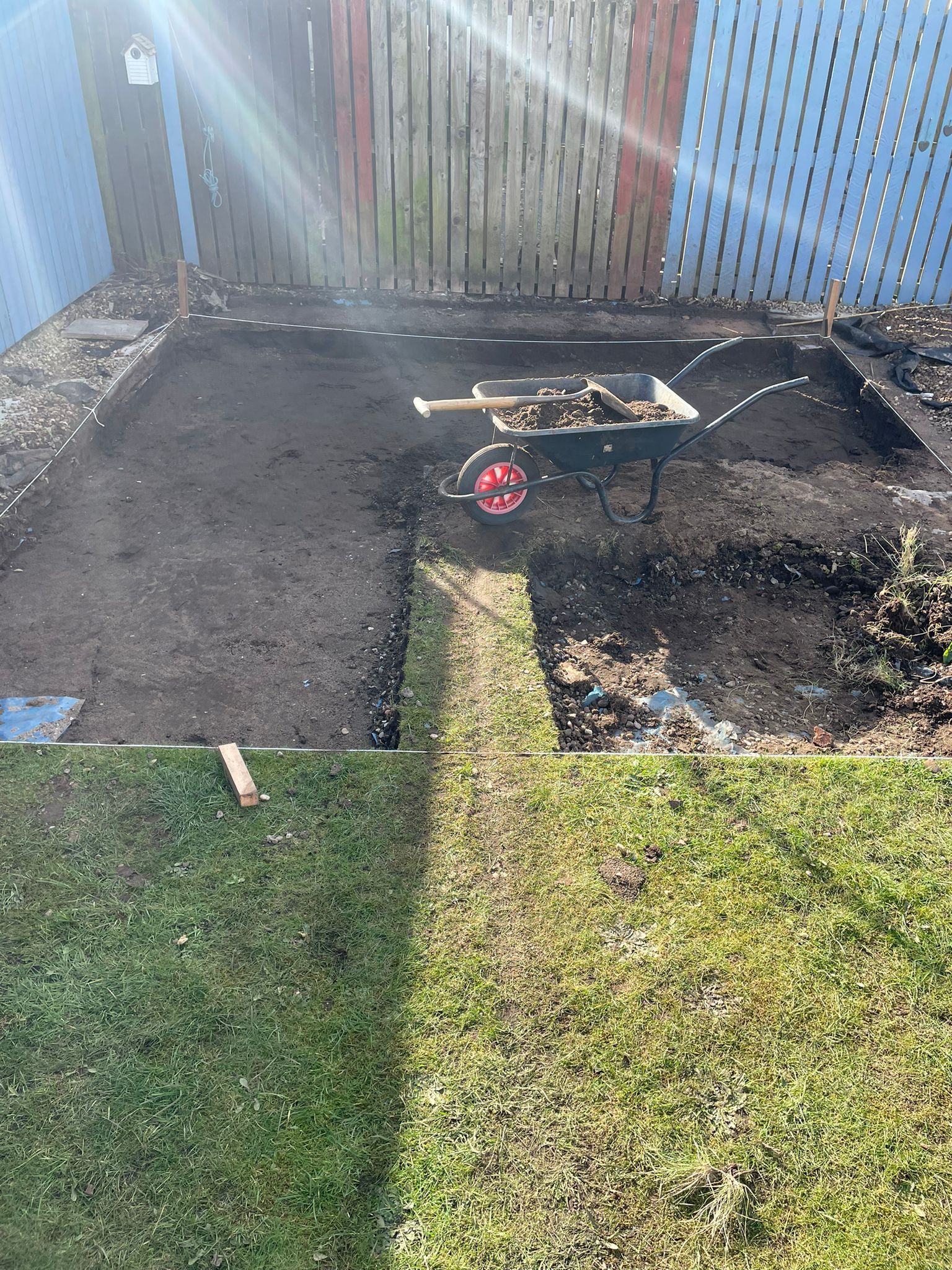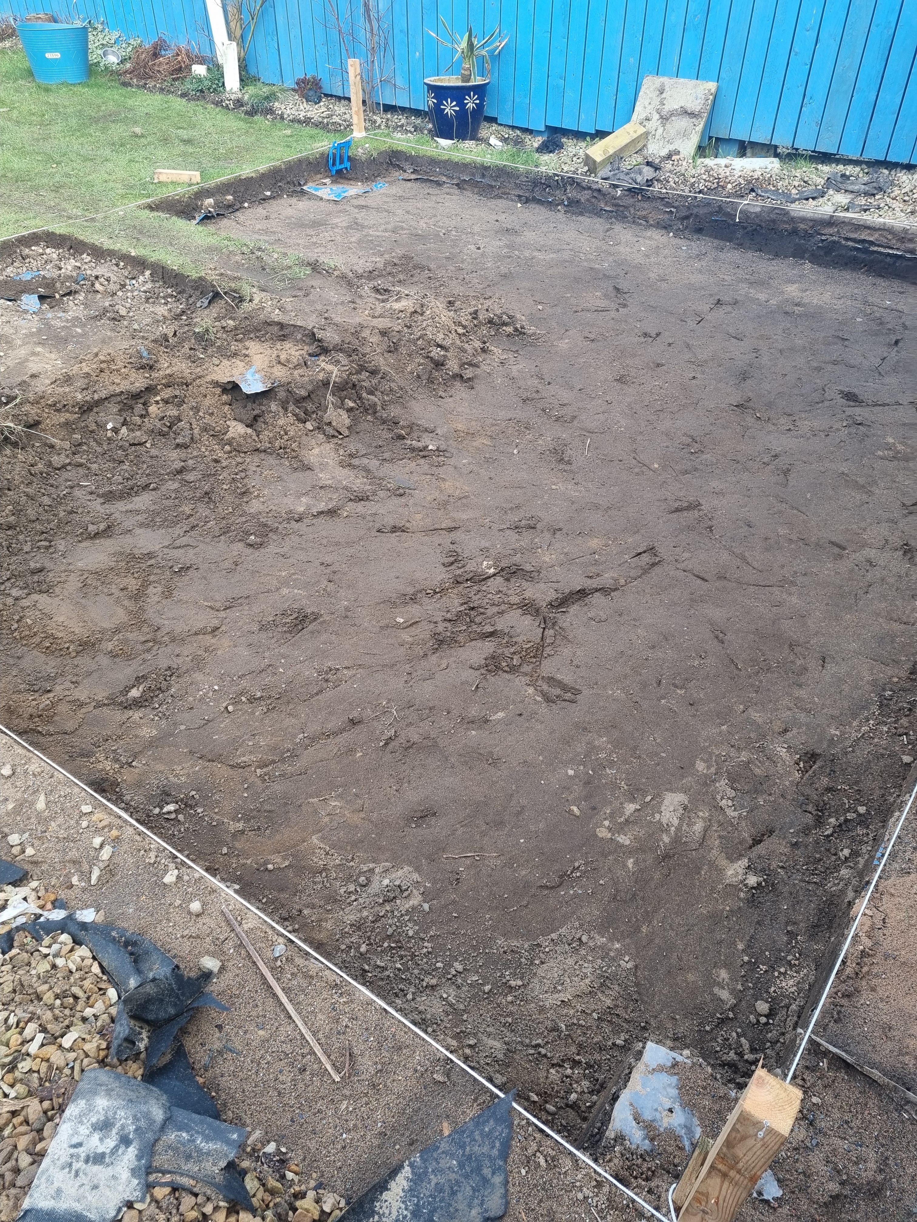Site levelling underway but cut short as there's no more space for the waste topsoil!! Skip arriving tomorrow...