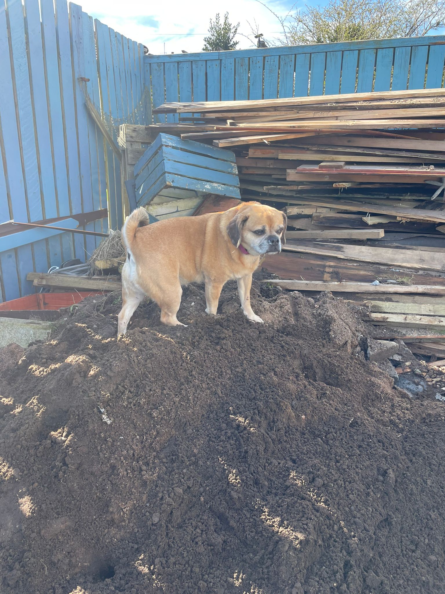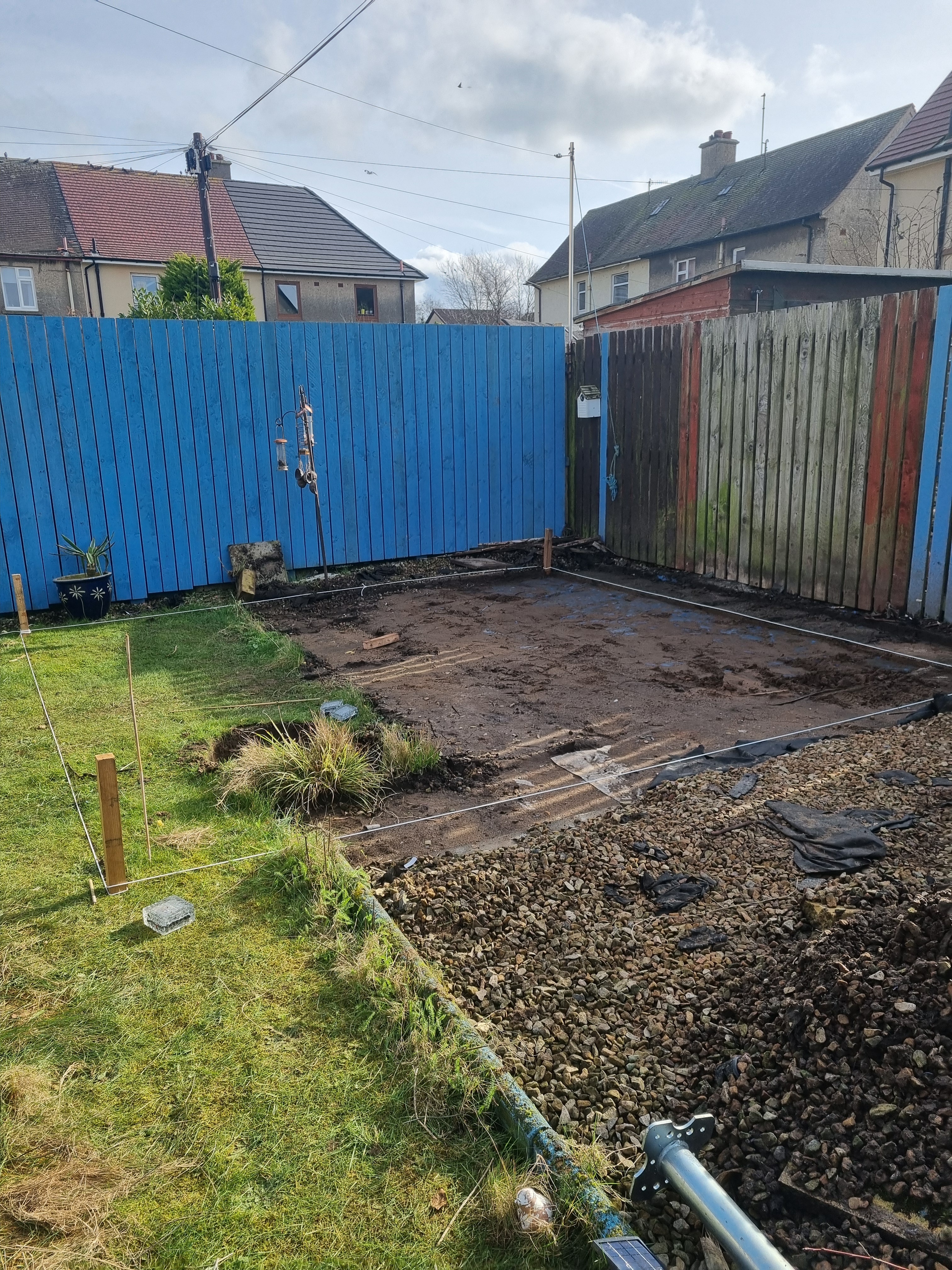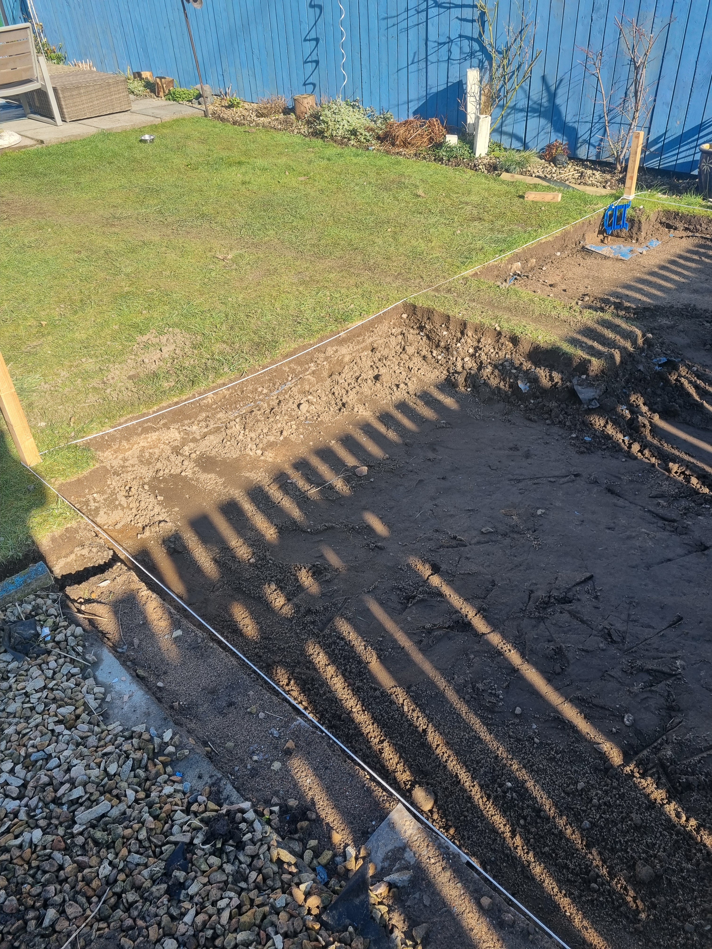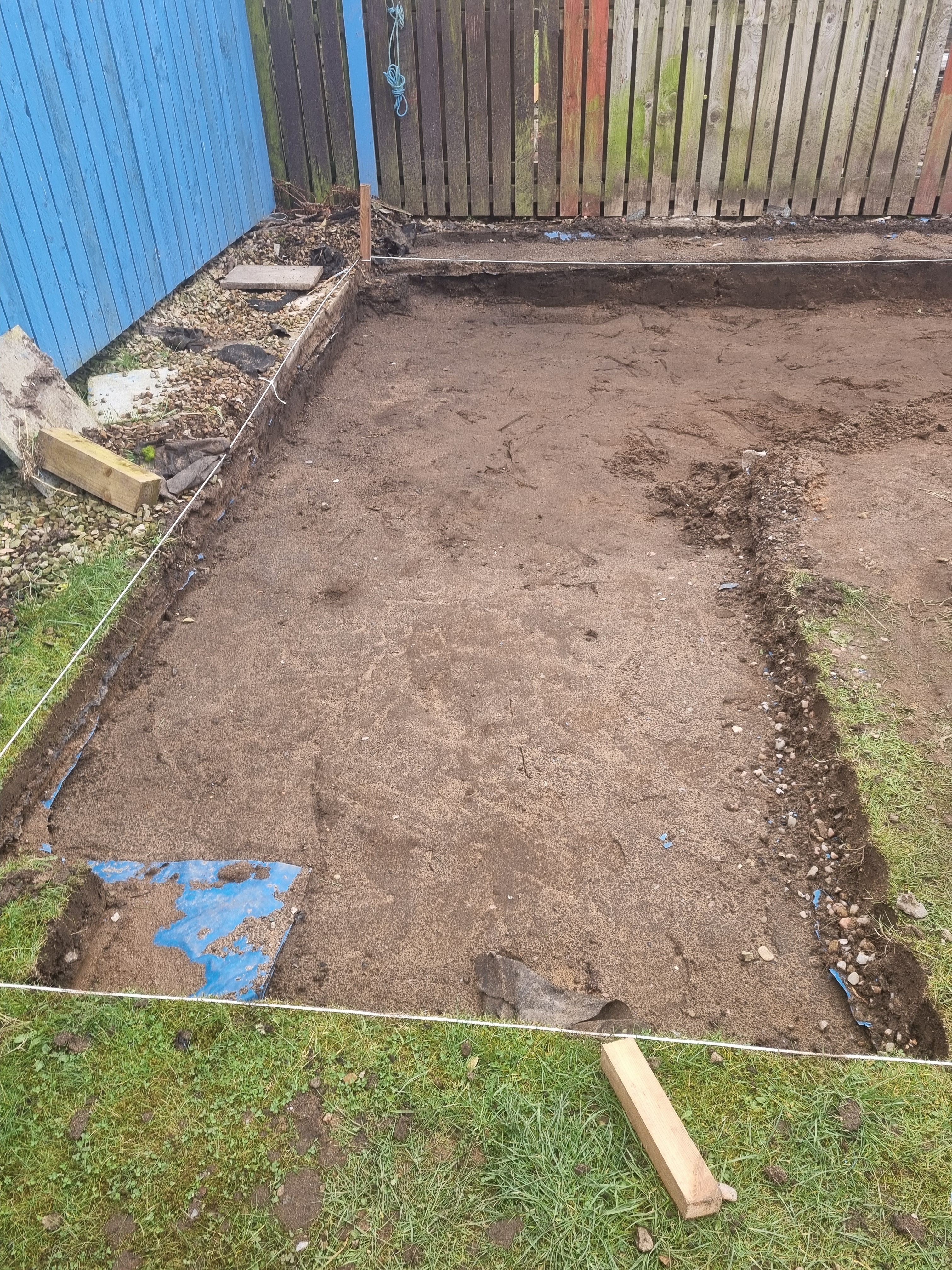 Site levelling underway but cut short as there's no more space for the waste topsoil!! Skip arriving tomorrow...