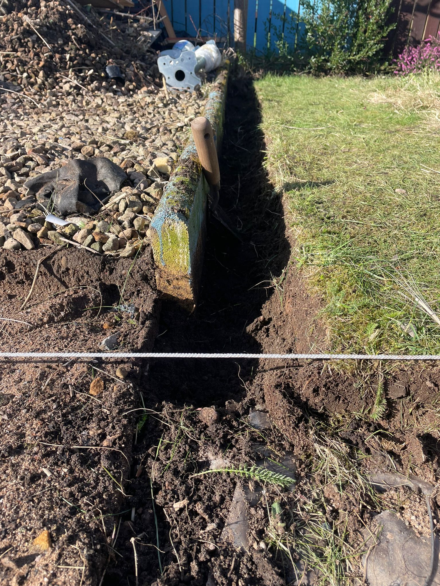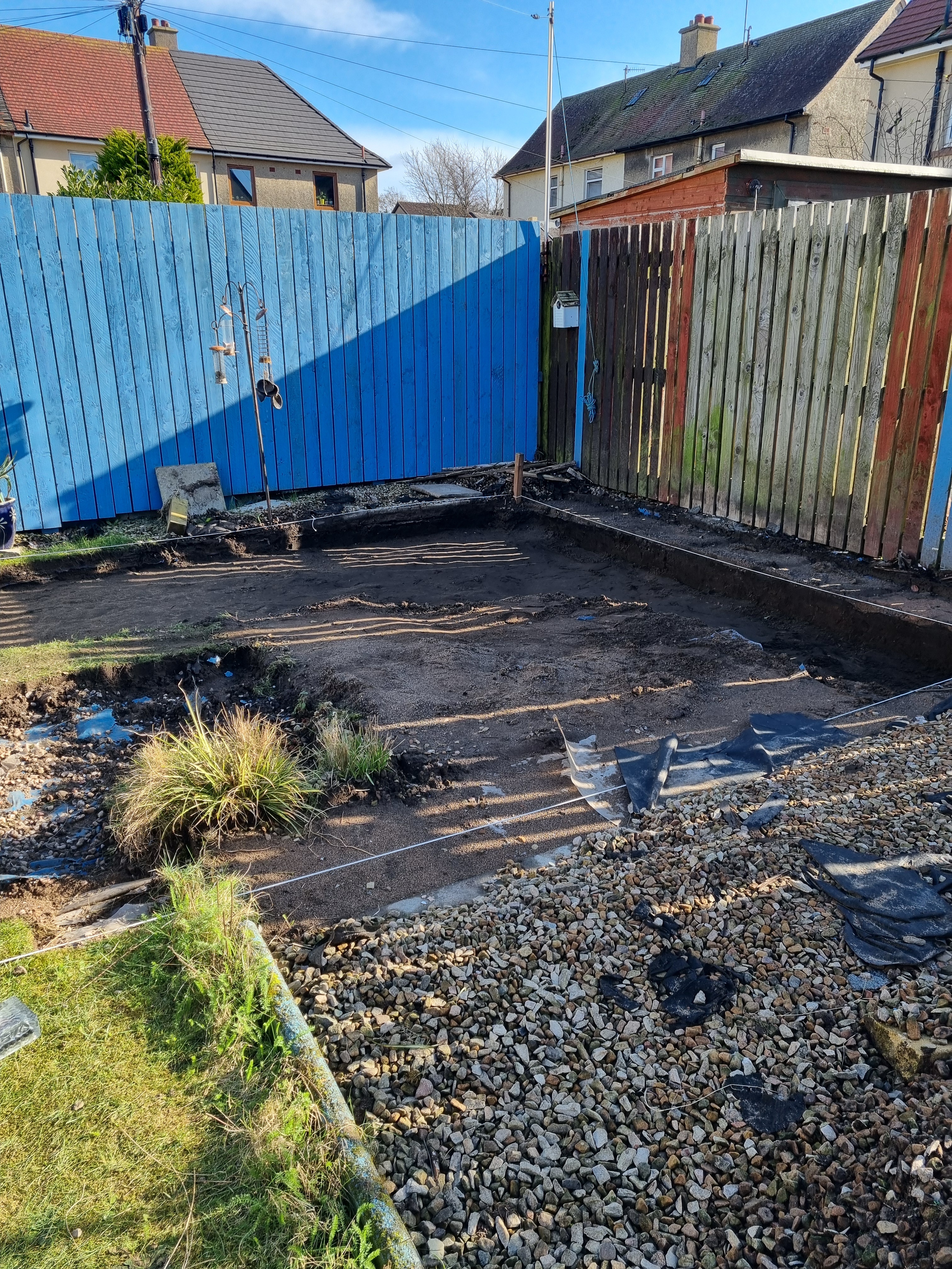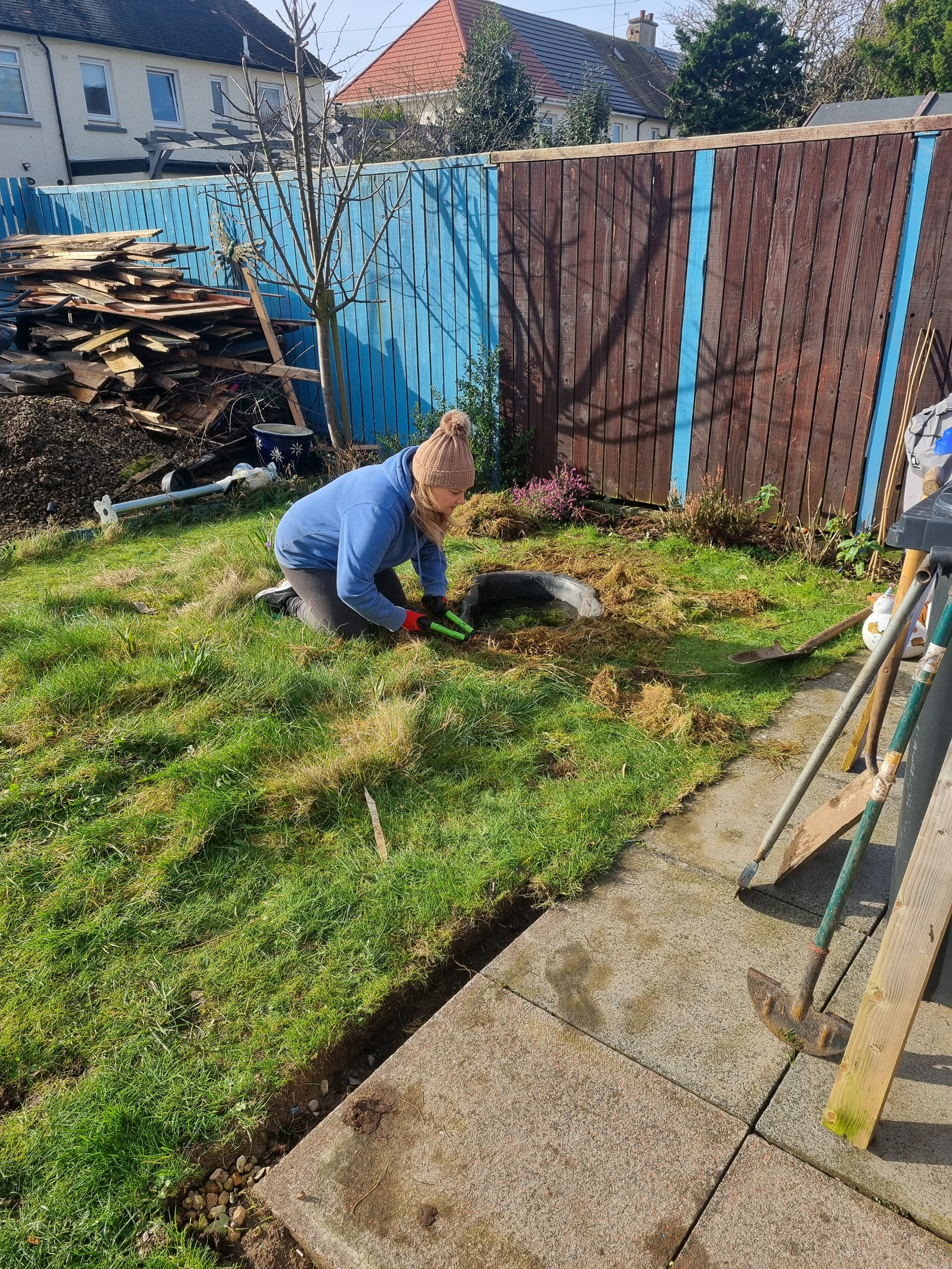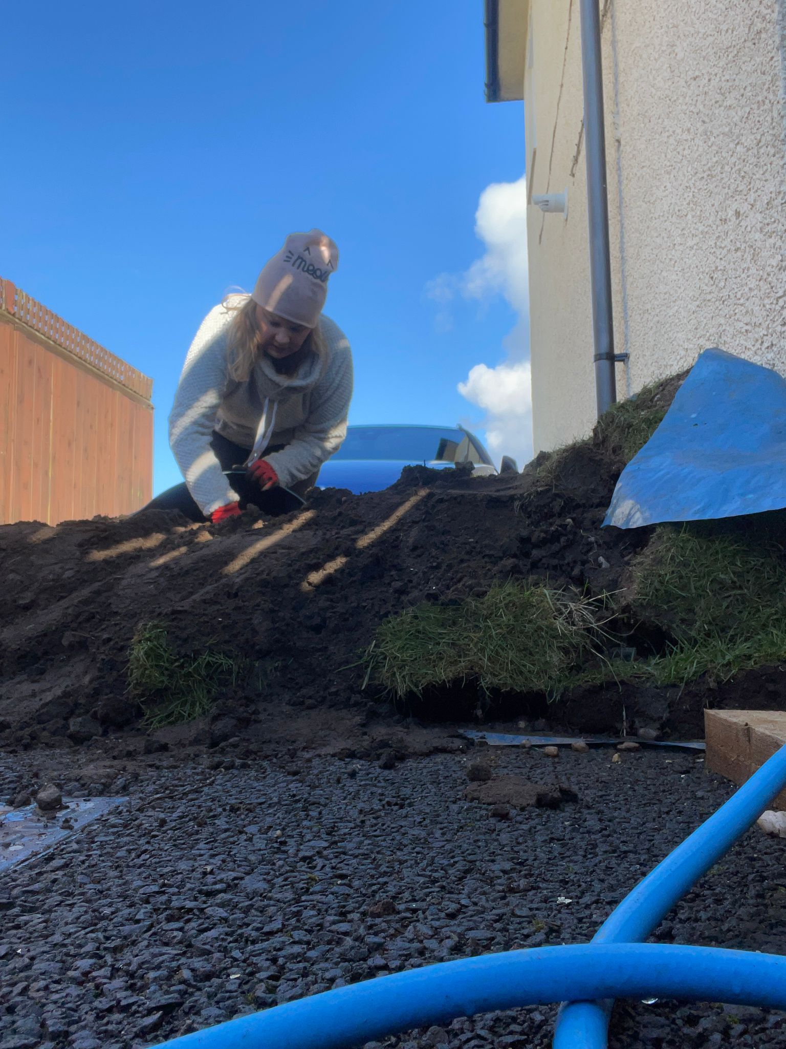 Pond moved to it's new home and foundation digging underway. Plenty of help from Wendy today as it's the weekend...