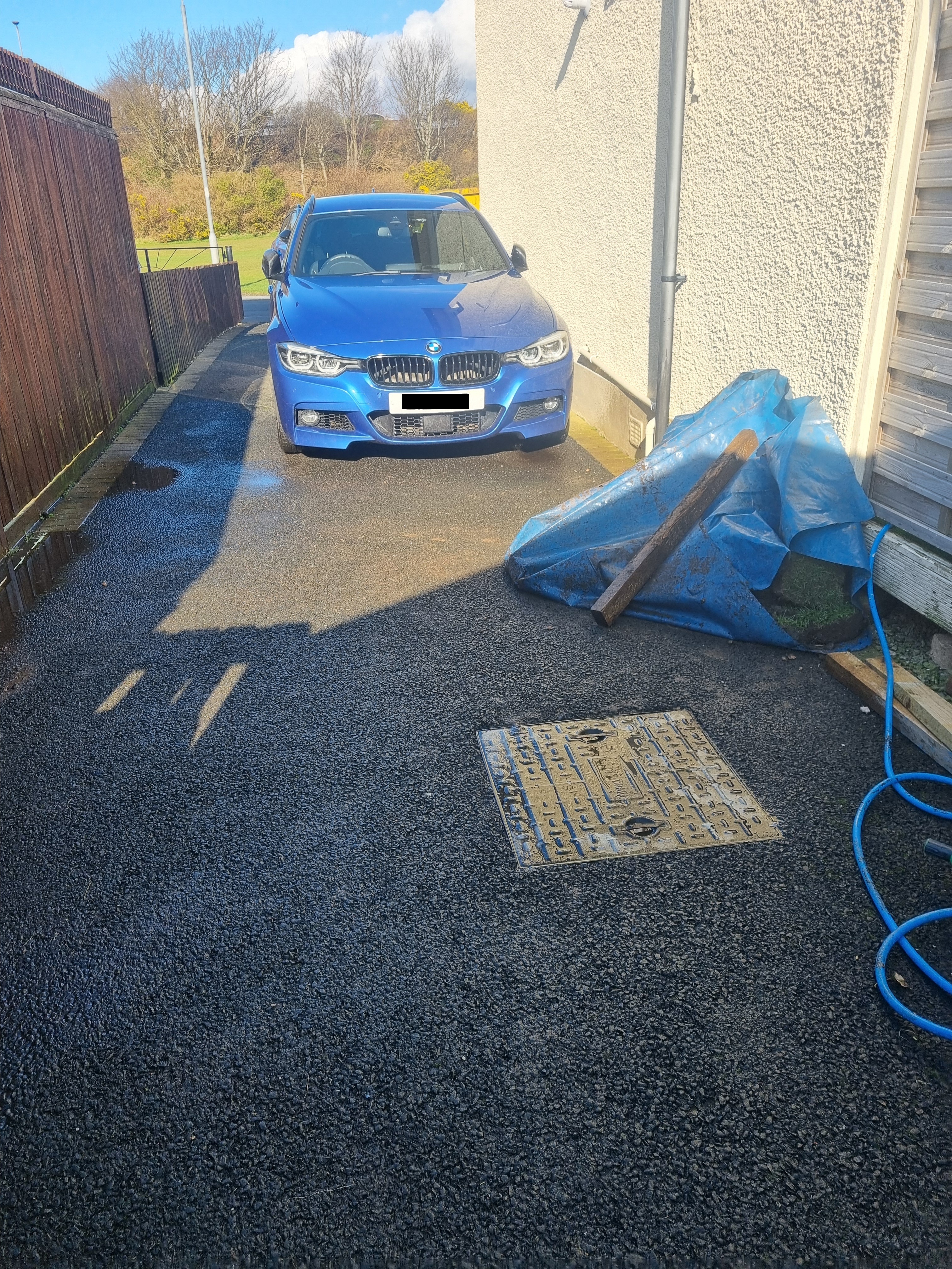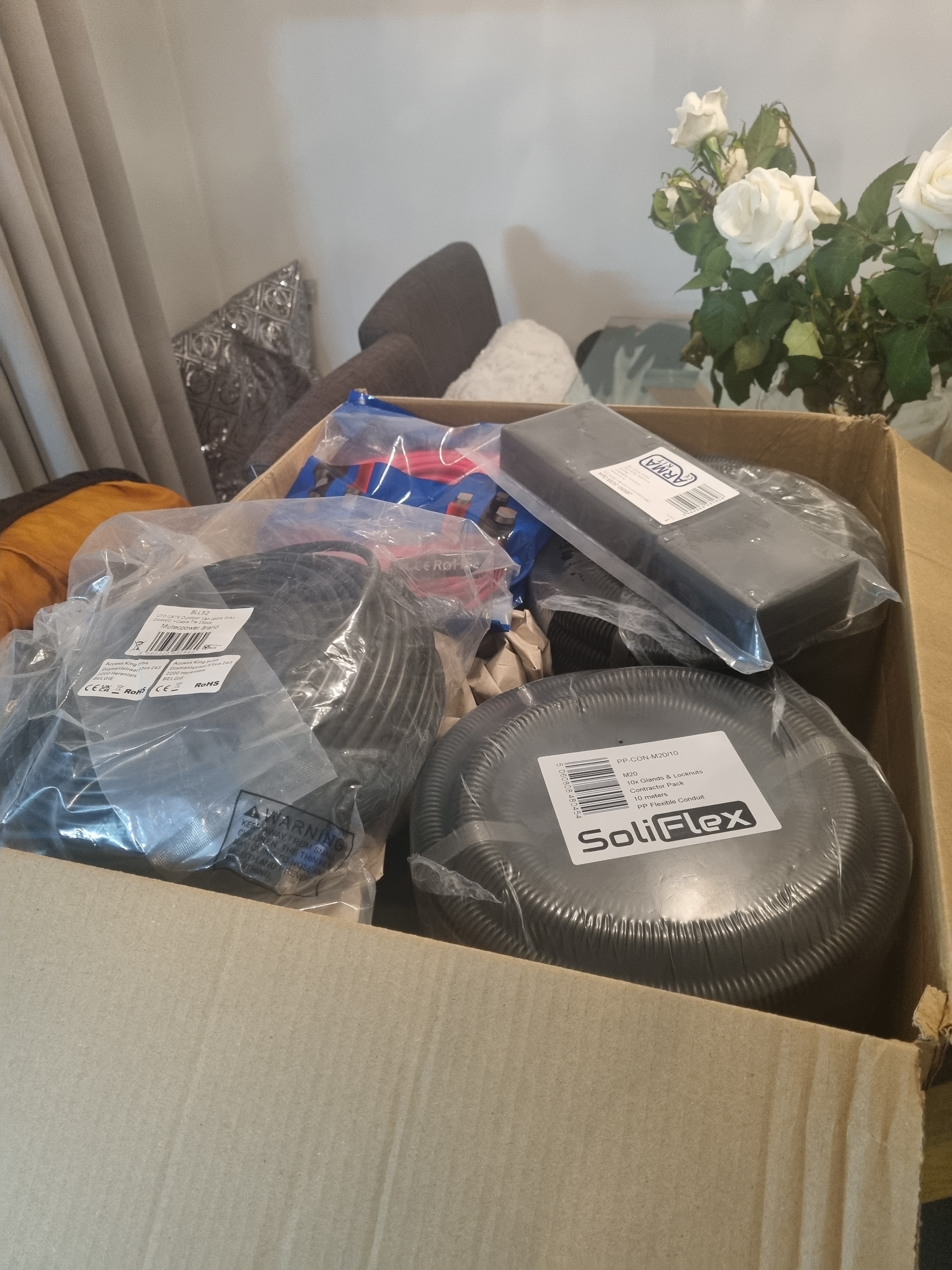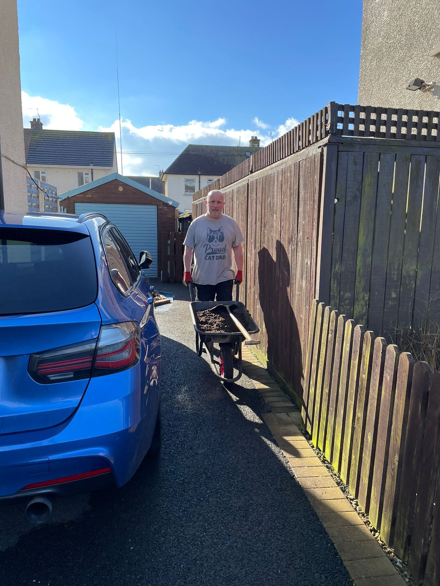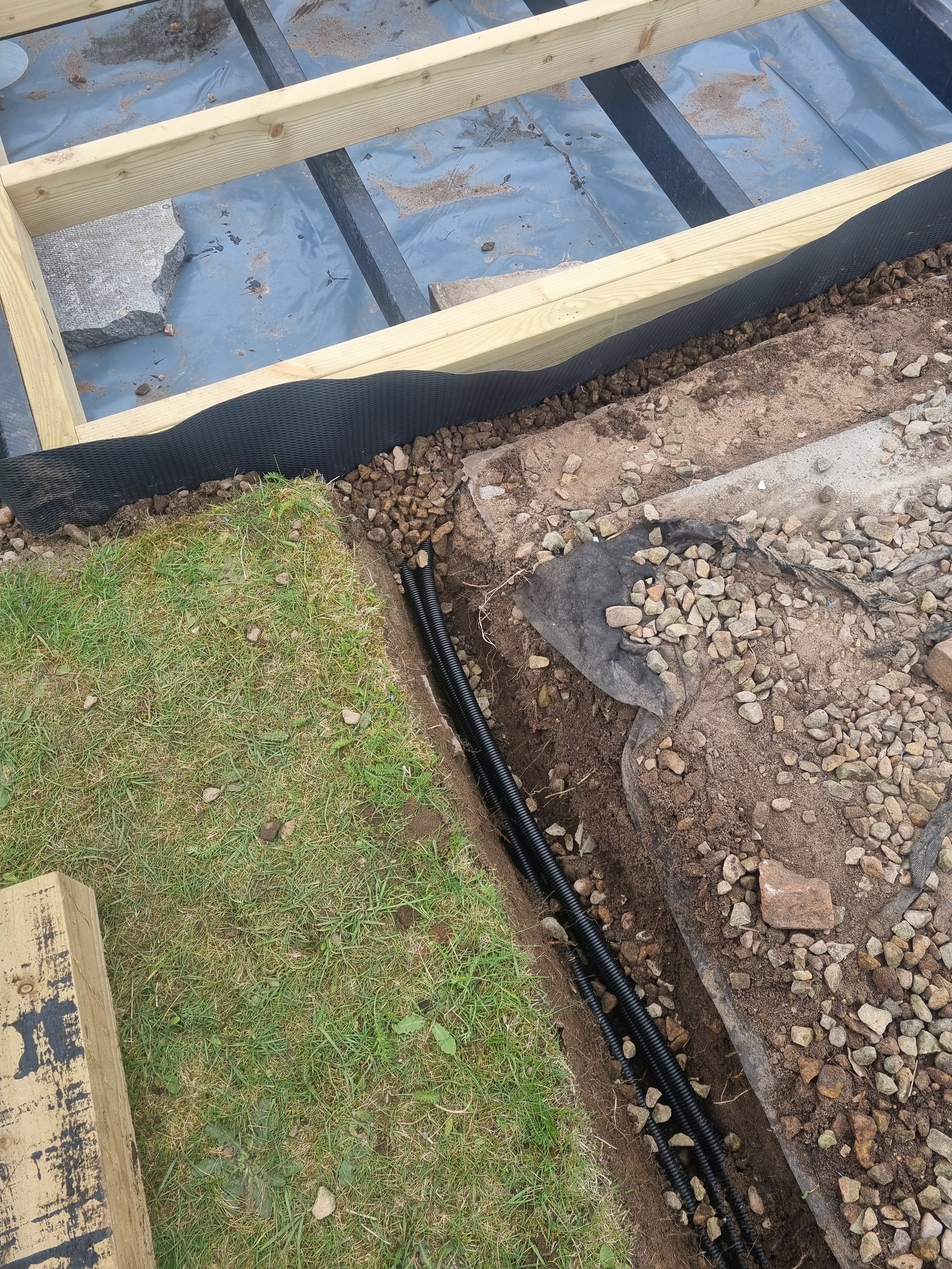Going to try and remove the 2x2 slabs and stack them on the driveway but damn, those things are heavy - about 45Kg each I think!! Waiting for Amazon to deliver a sack barrow which should make things easier. Meanwhile, I've broken up a line of slabs so that I can carry on and lay the cable duct...