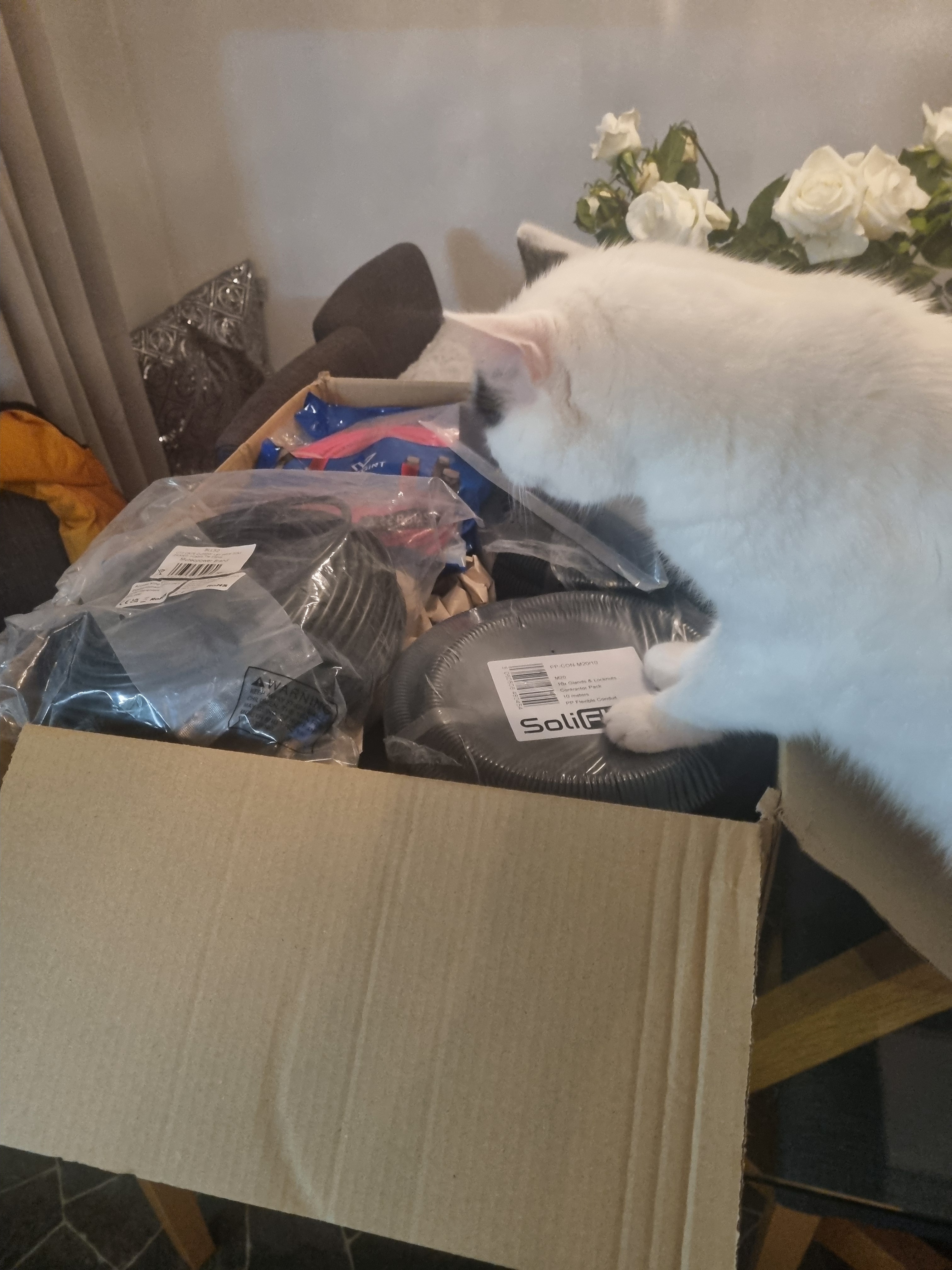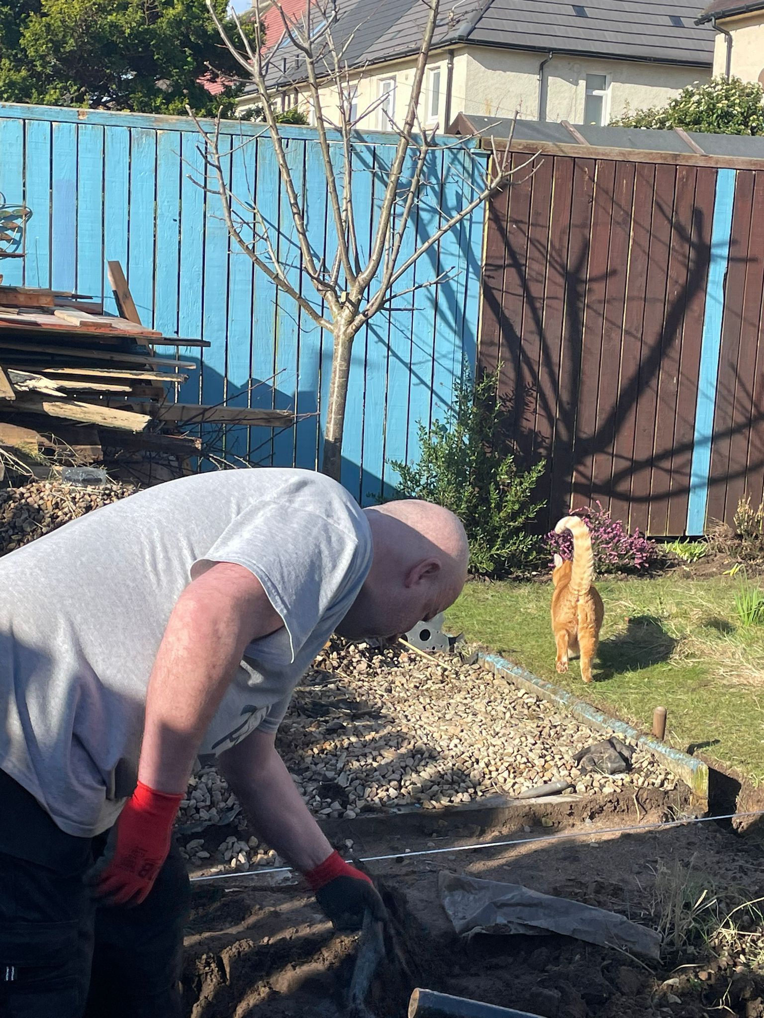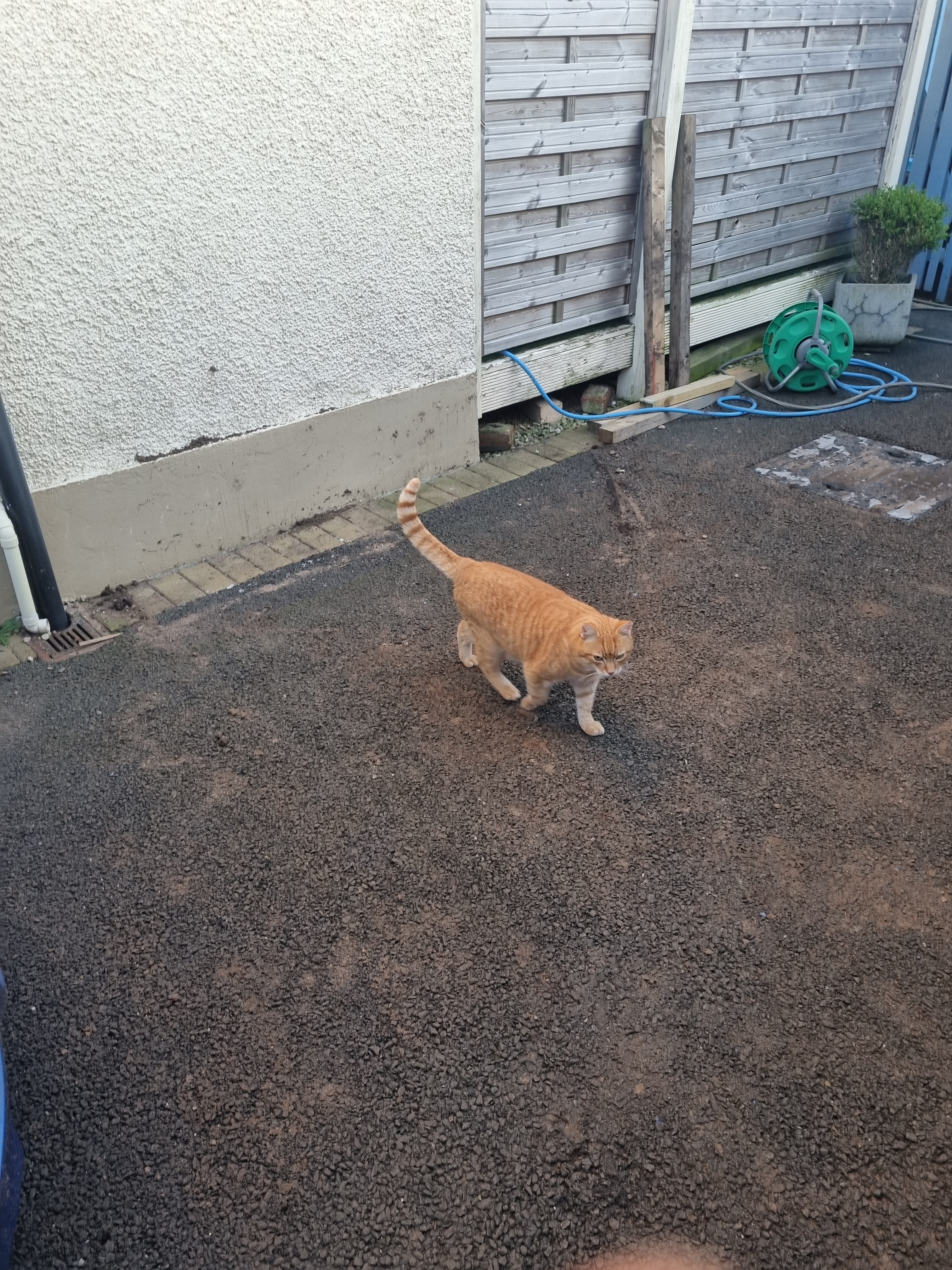Well that's it, site preparation complete and most of the tidying up done (apart from the ubiquitous ginger cat!!). I'll not have much to do now until the cabin arrives which hopefully will be before the Easter holidays...