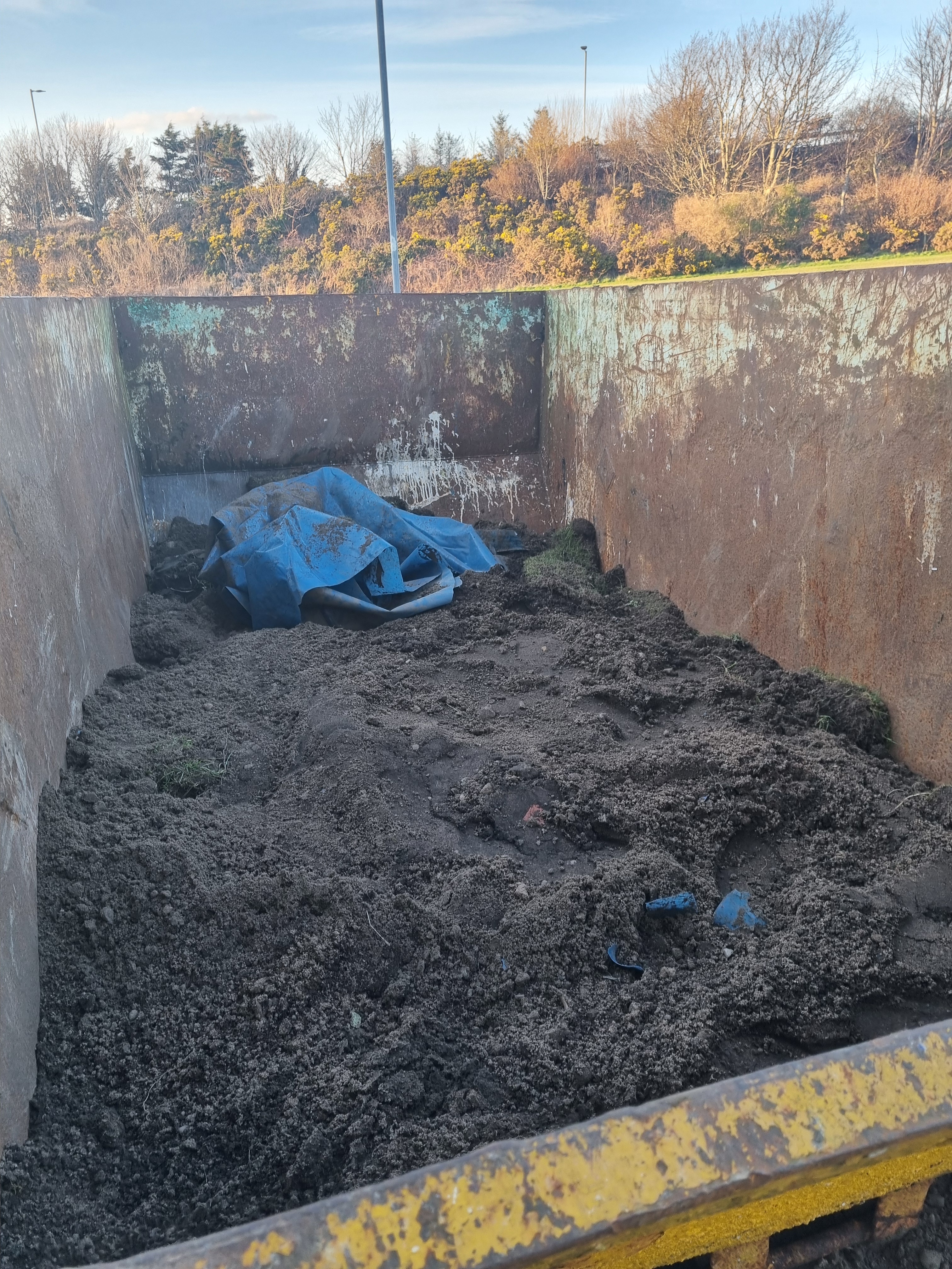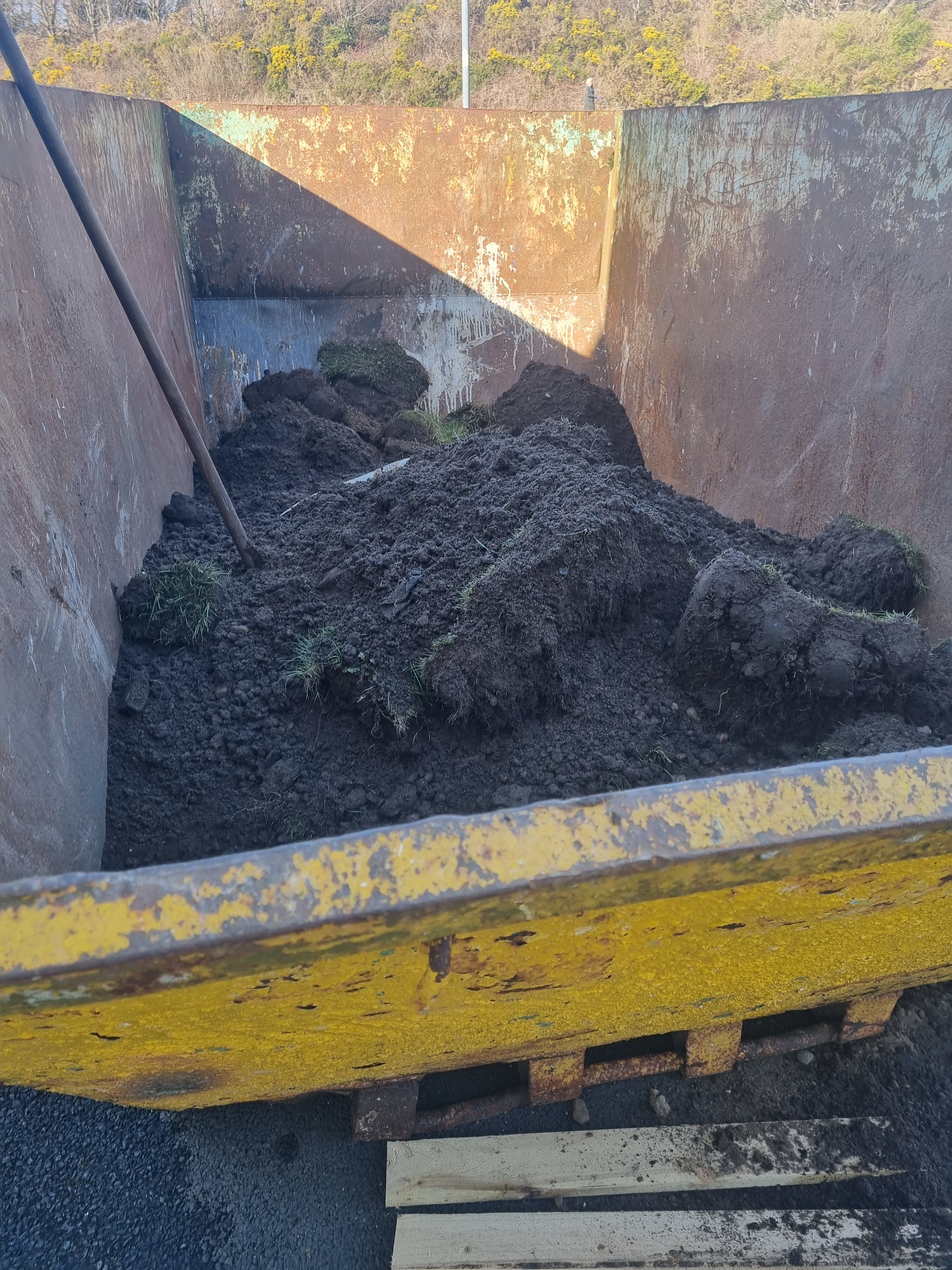 I'm a bit concerned about the weight in the skip - it should be below the 8 tonne limit but I really can't be sure. I've measured the topsoil volume as 4m x 4m x 0.25m i.e. 4m cubed, sandy topsoil weighs about 1.8 tonnes/m3. Total weight 7.2 tonnes plus whatever Wendy has added. Fingers crossed!!