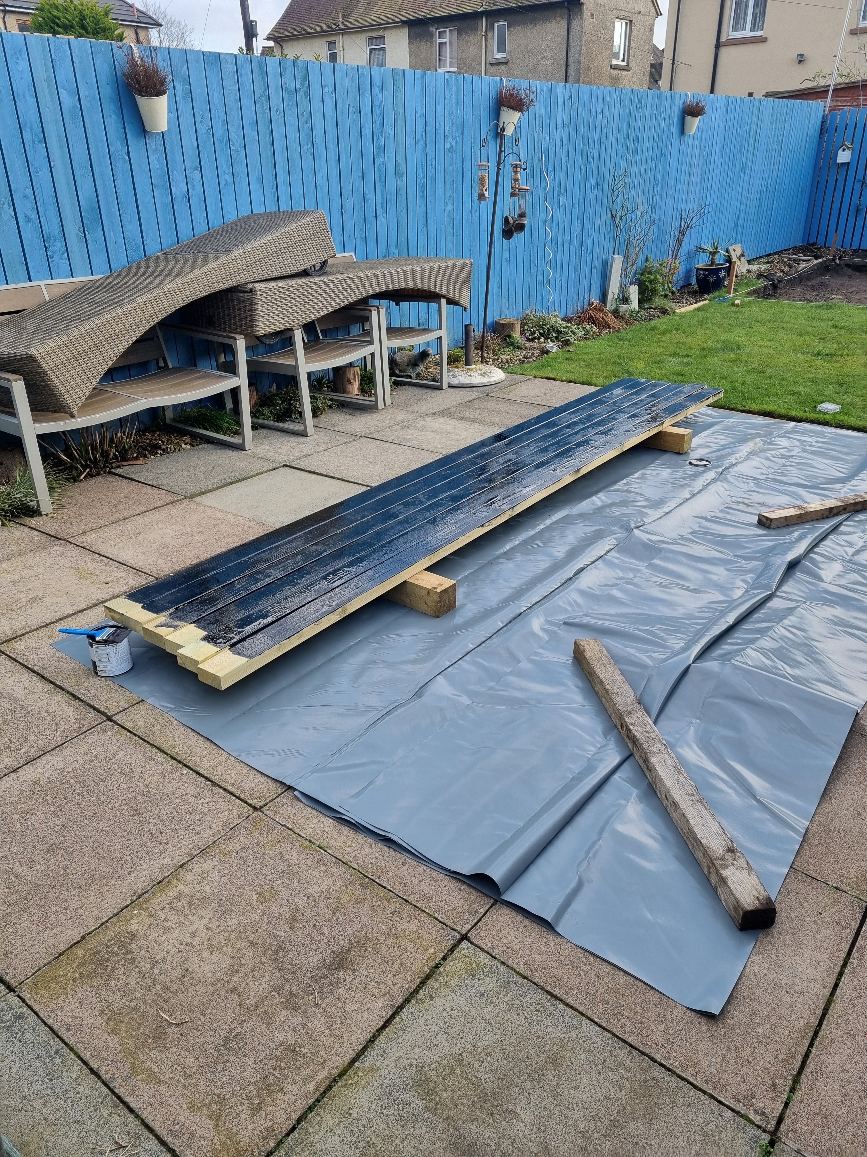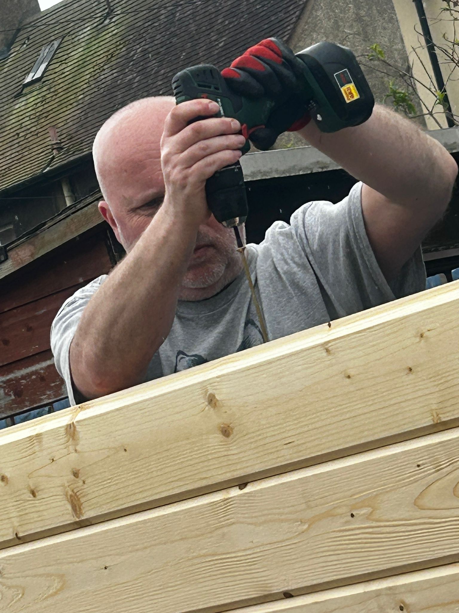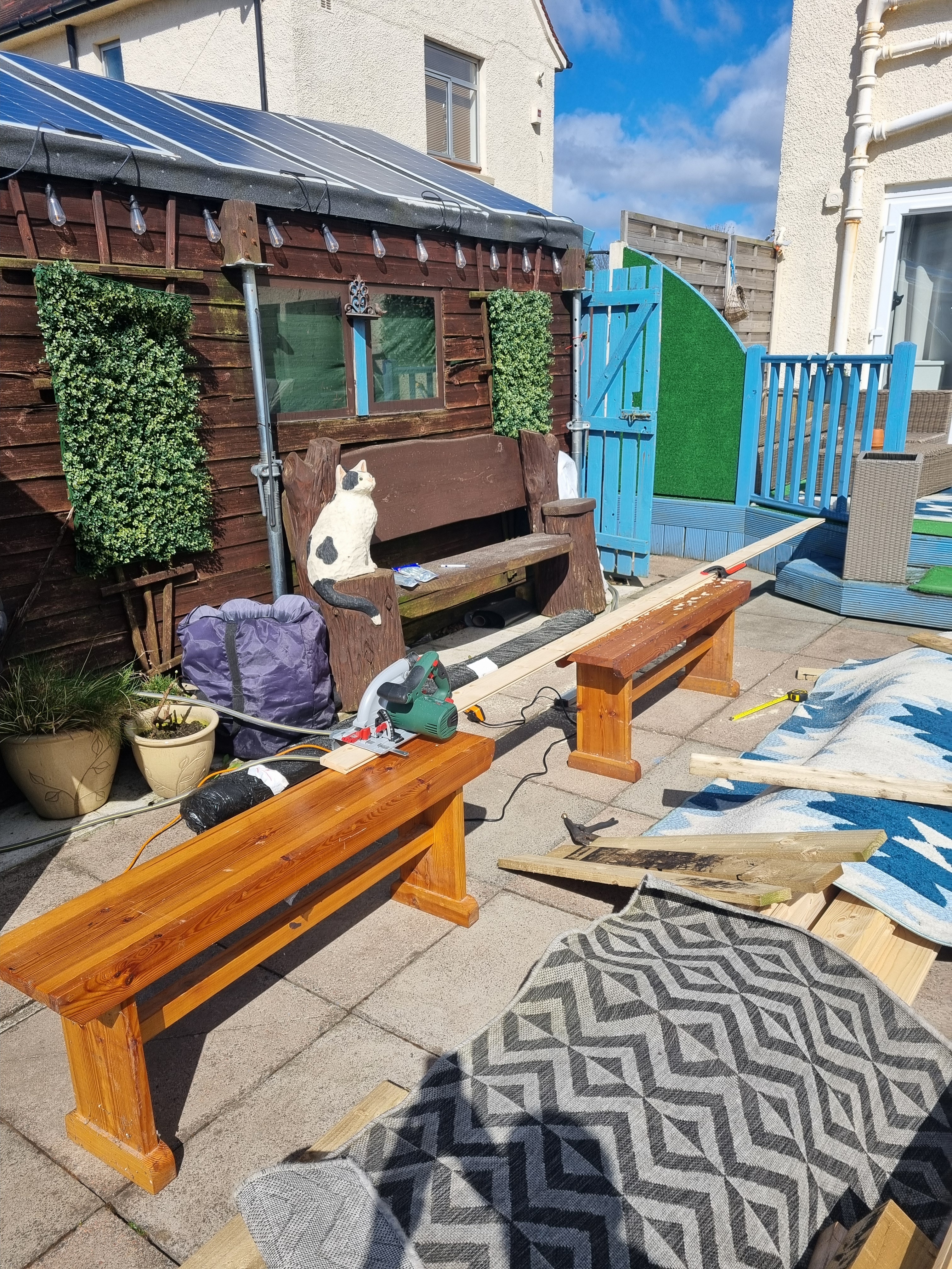 The build is finally underway. John constructs, Wendy applys the wood preservative and the cats are absolutely no help whatsoever...