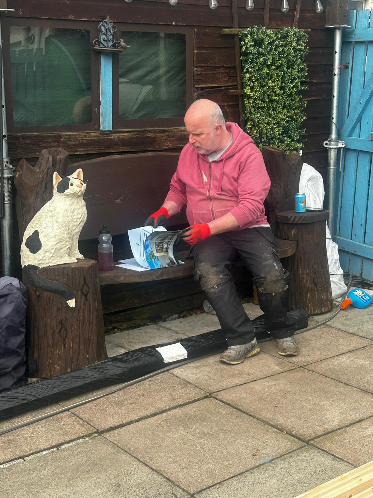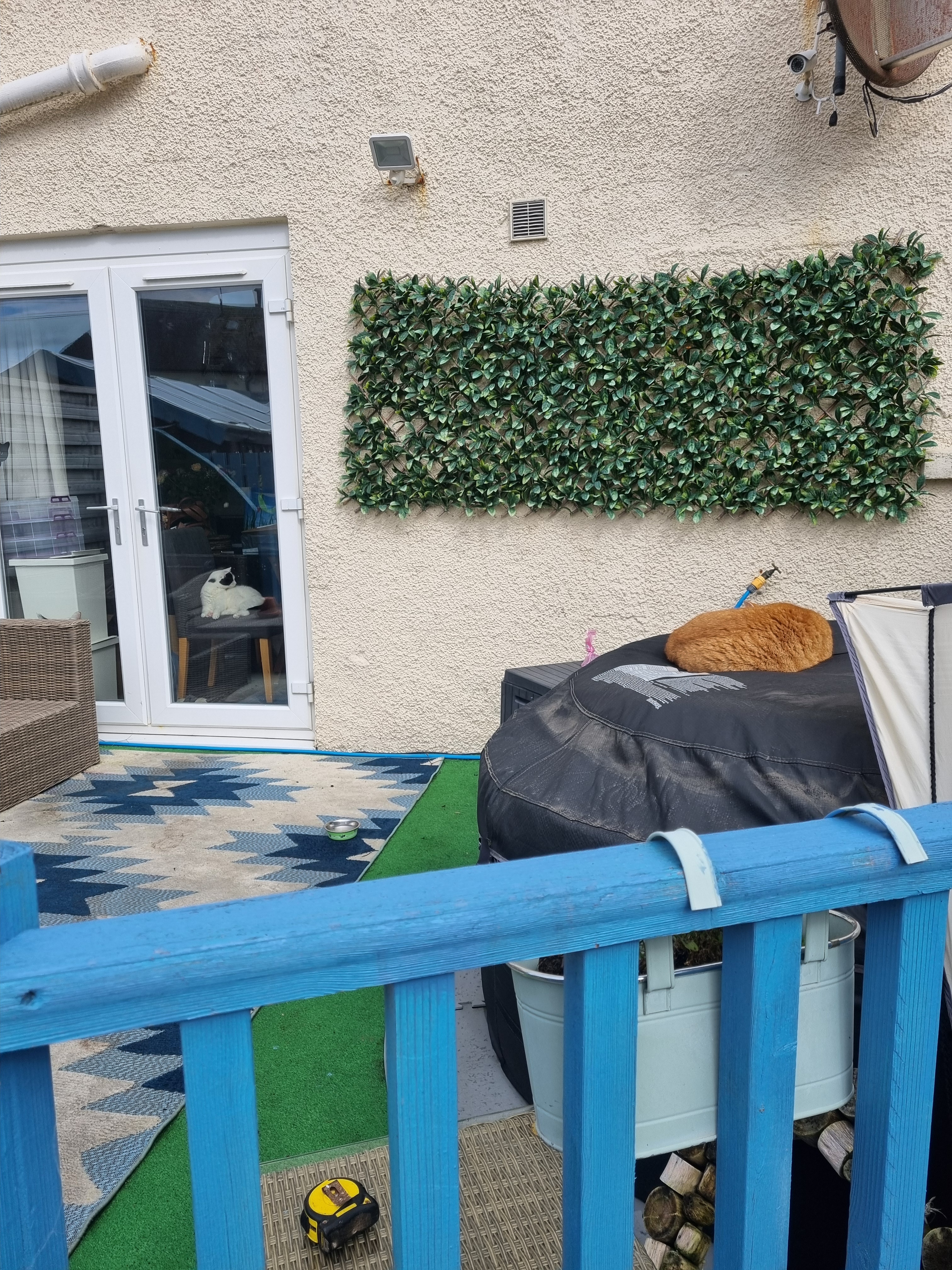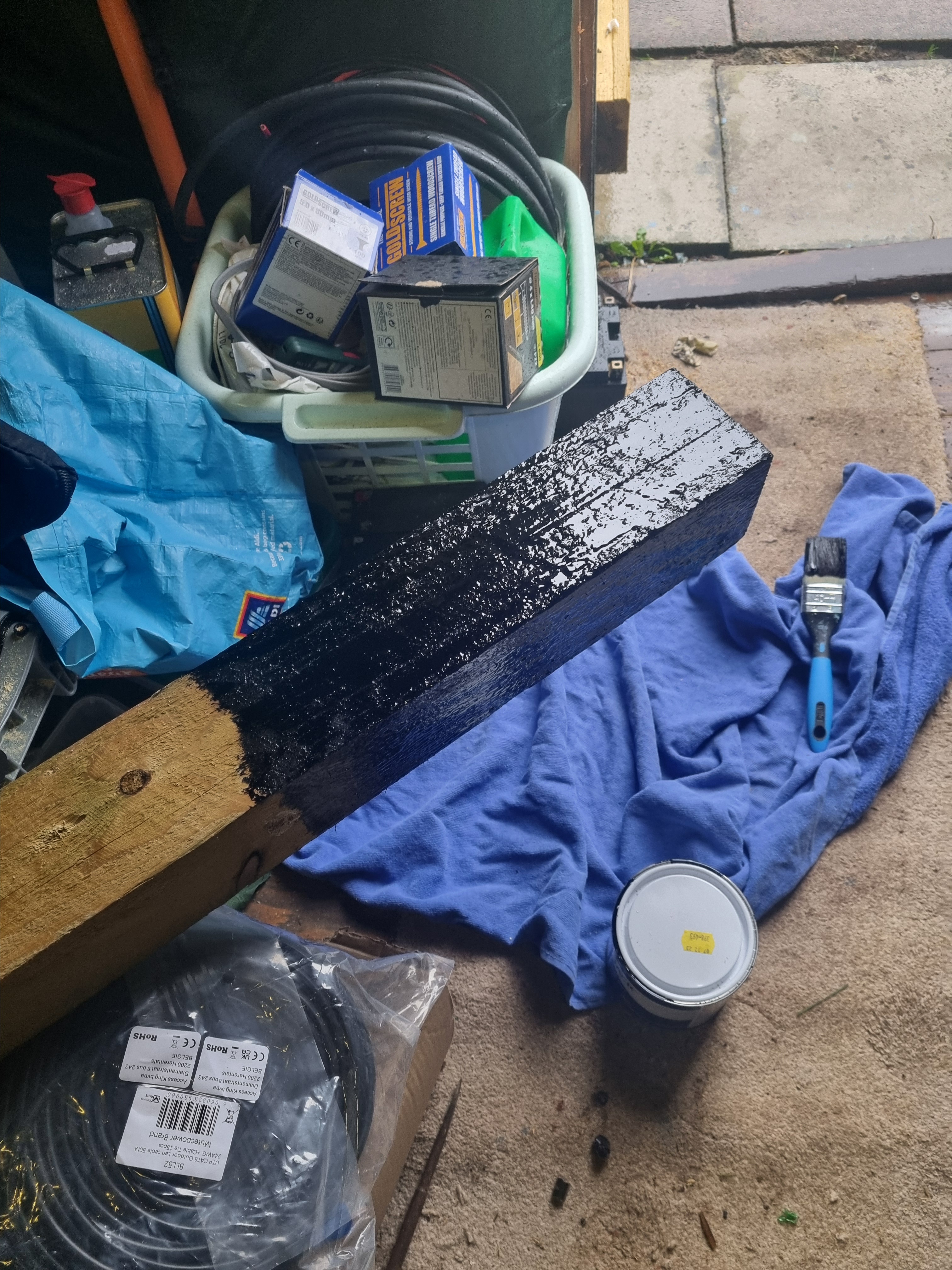 The build is finally underway. John constructs, Wendy applys the wood preservative and the cats are absolutely no help whatsoever...