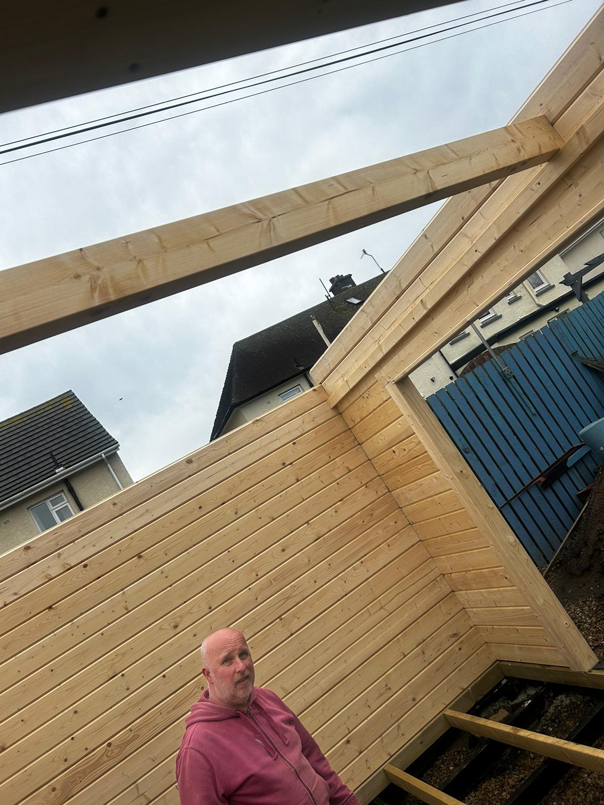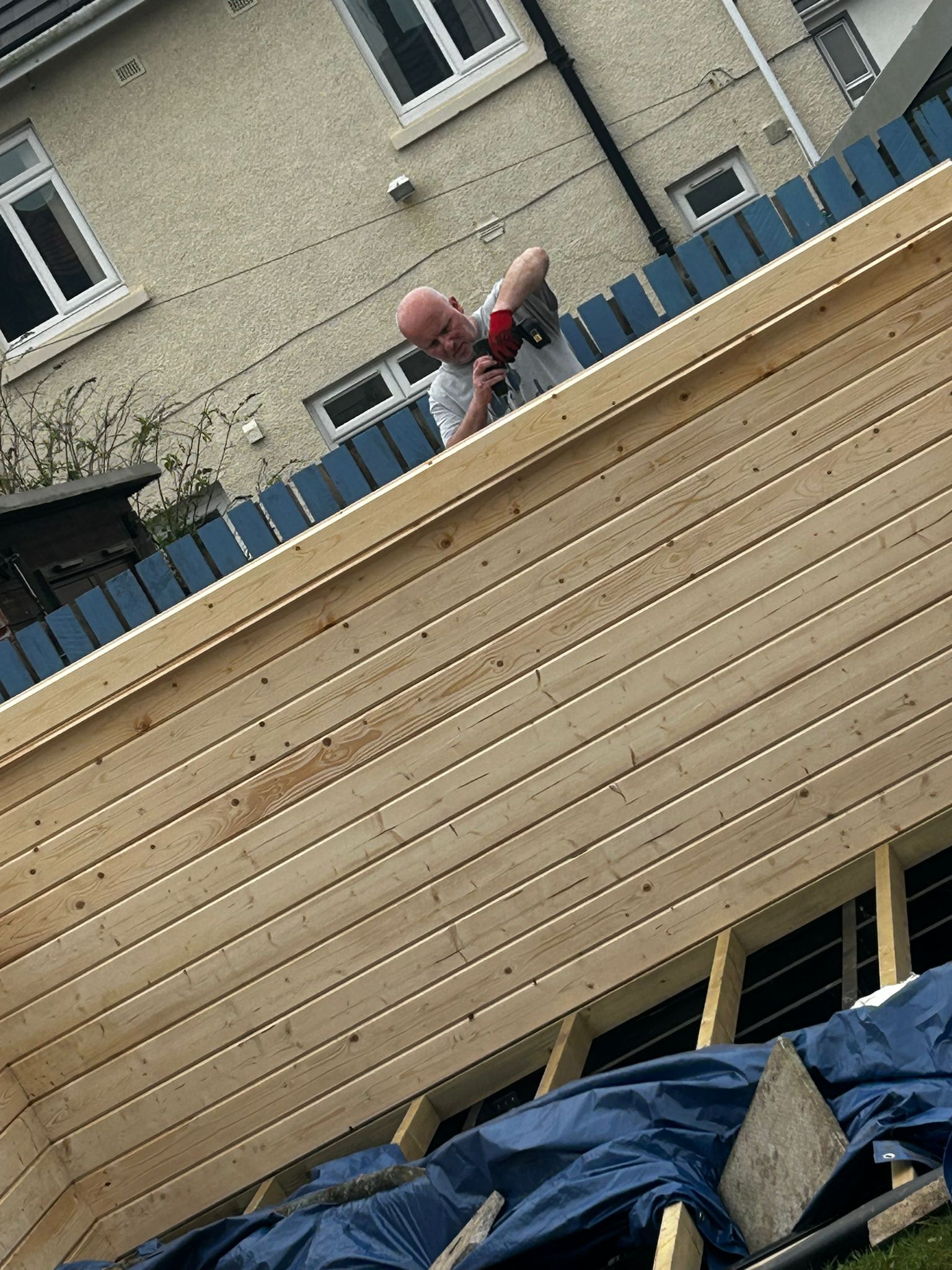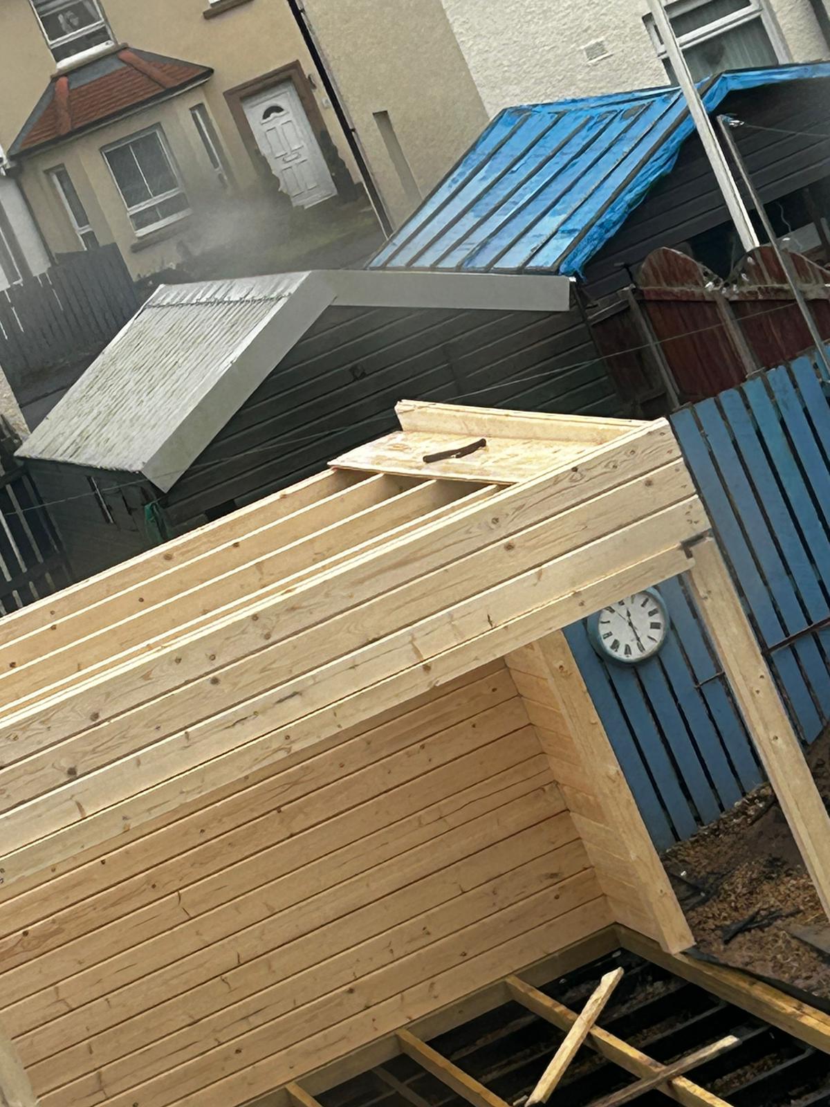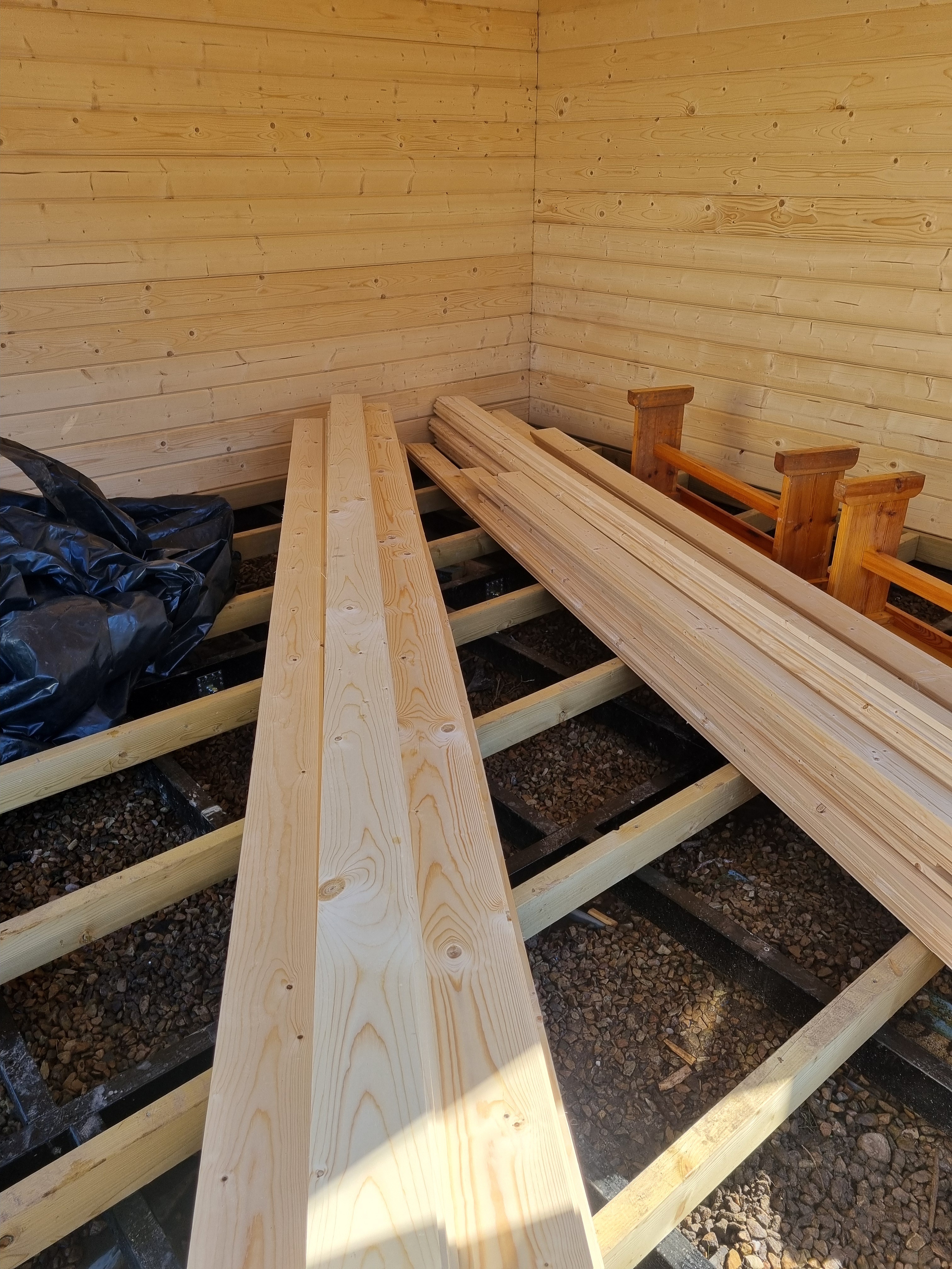 Better weather today so I've been able to use the power tools outside!! Final roof board cut and fitted, remaining timber moved in to the garden room to dry out...