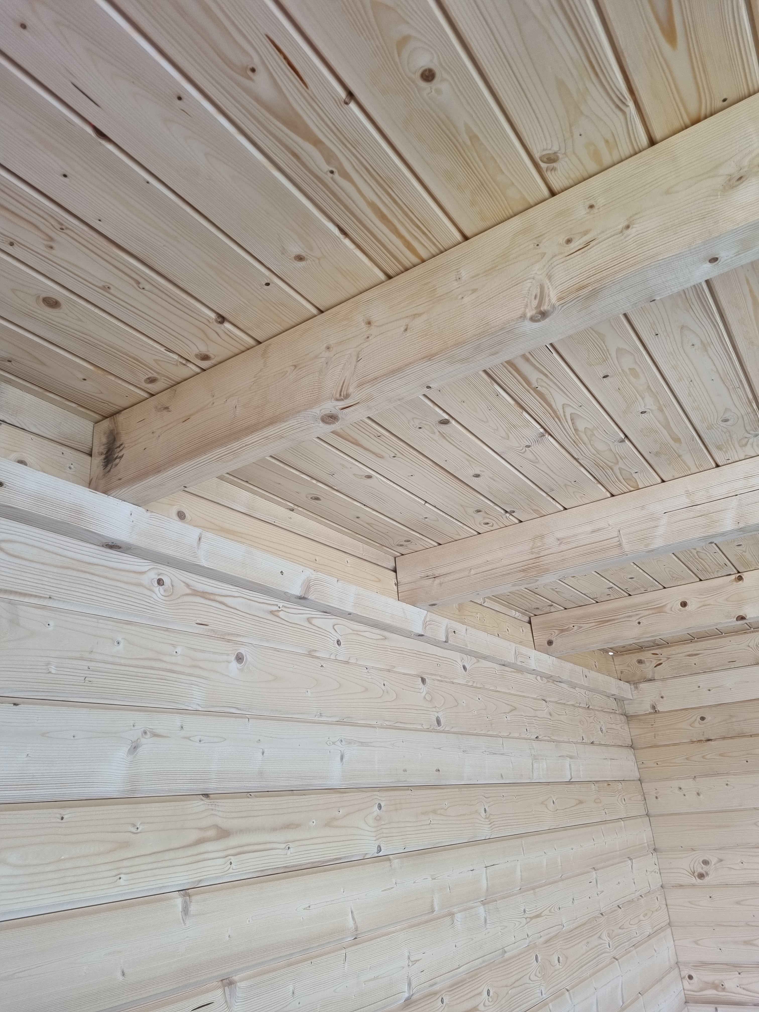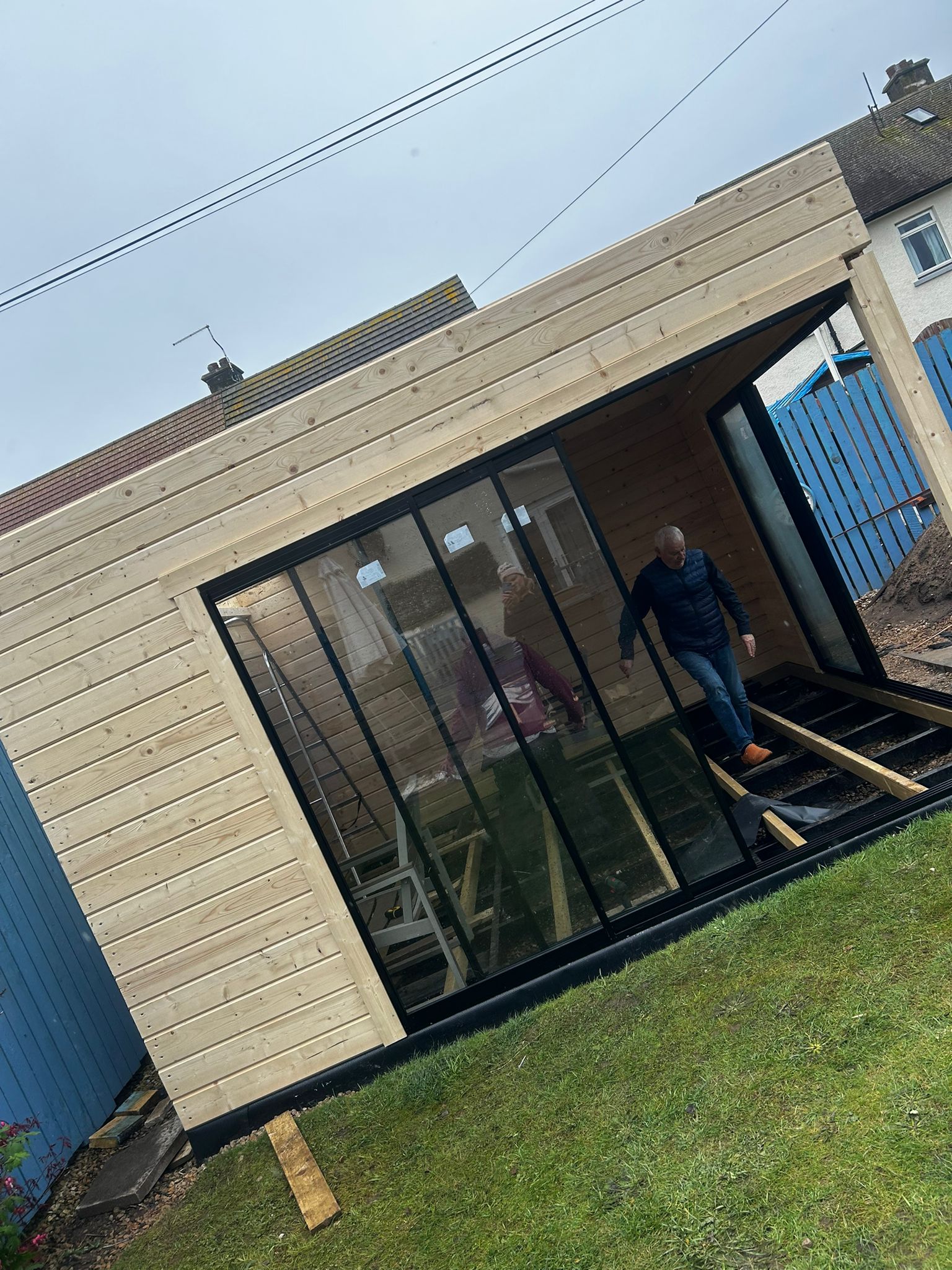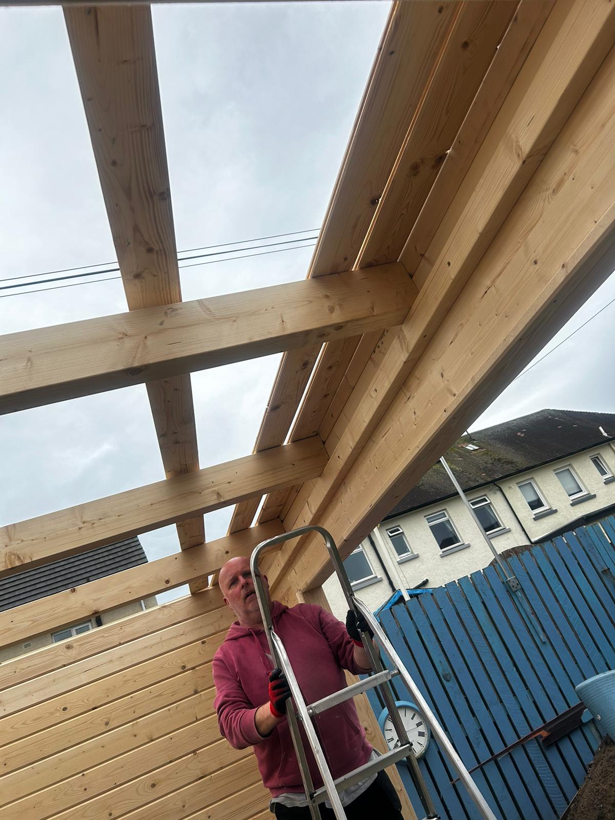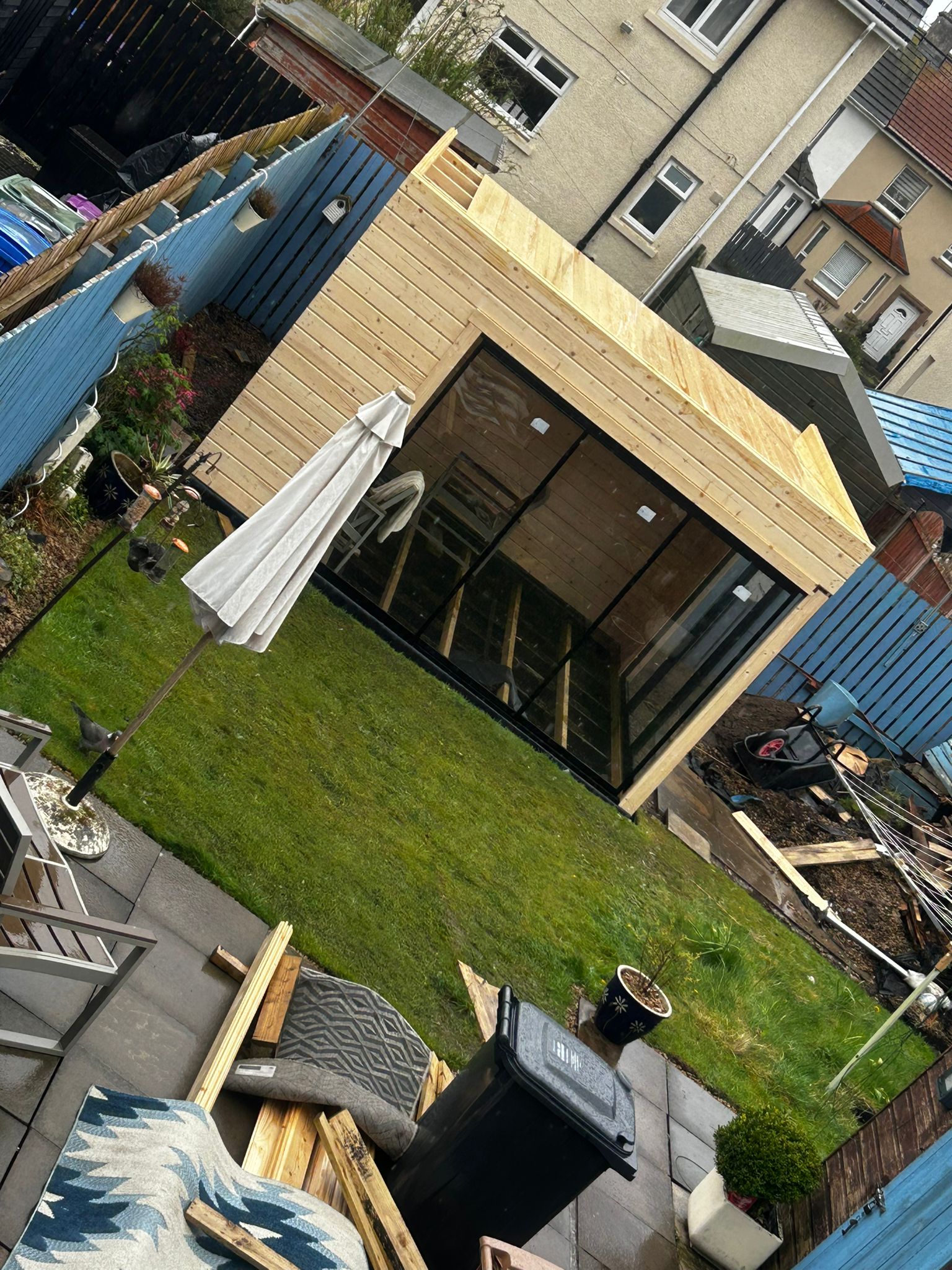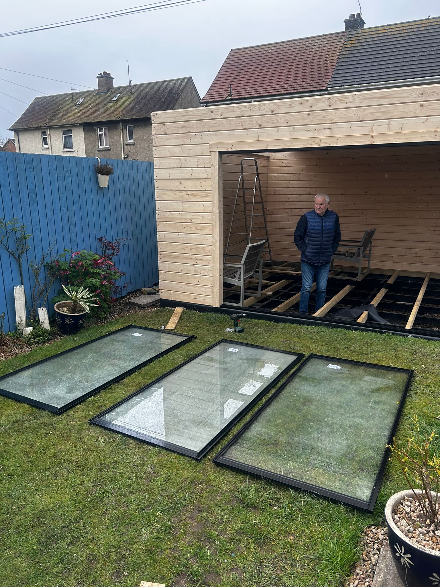 Better weather today so I've been able to use the power tools outside!! Final roof board cut and fitted, remaining timber moved in to the garden room to dry out...