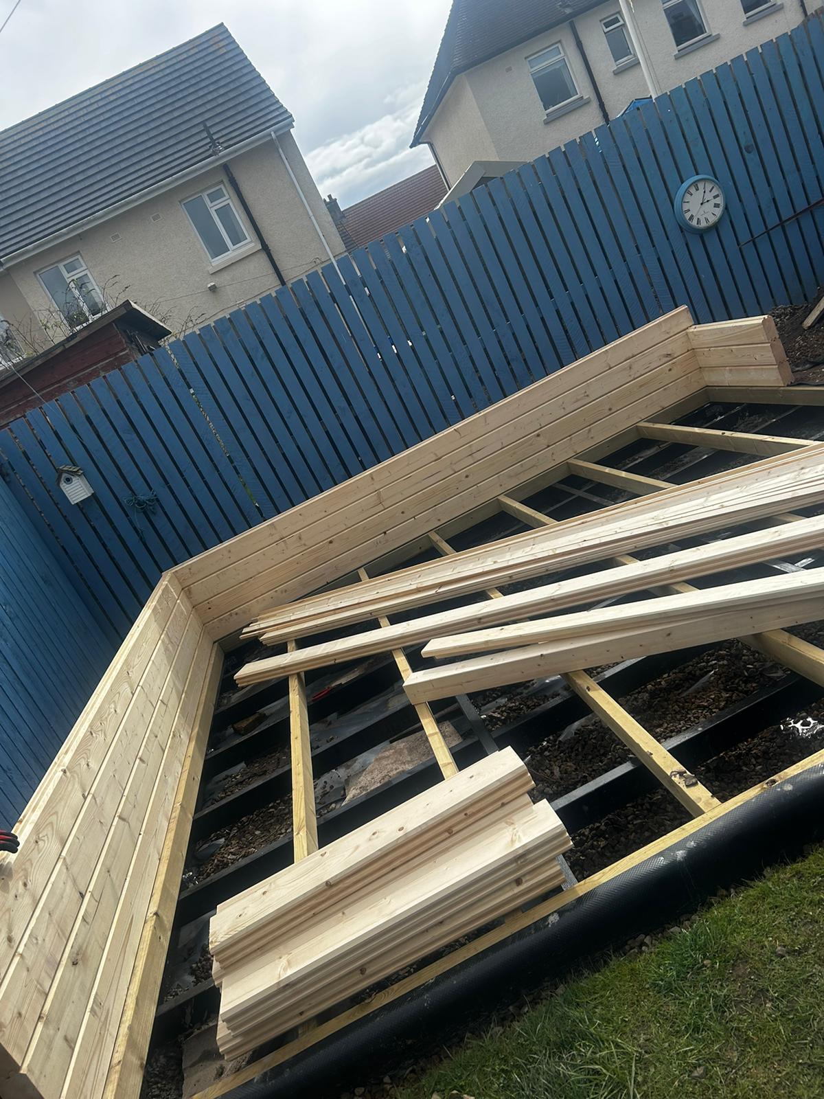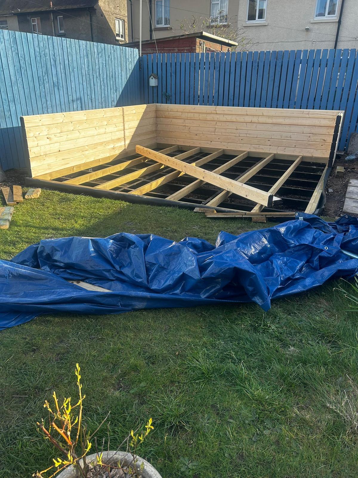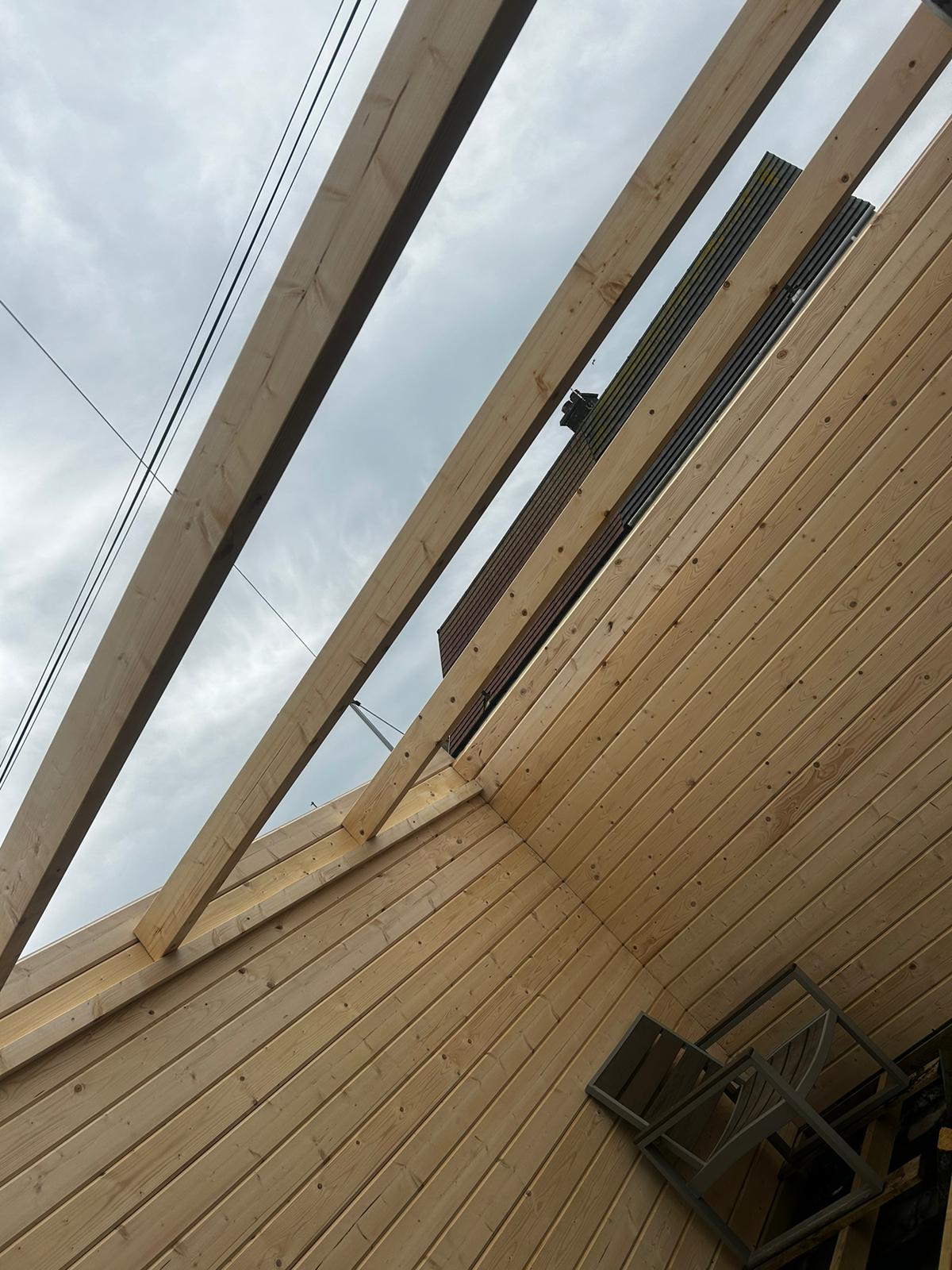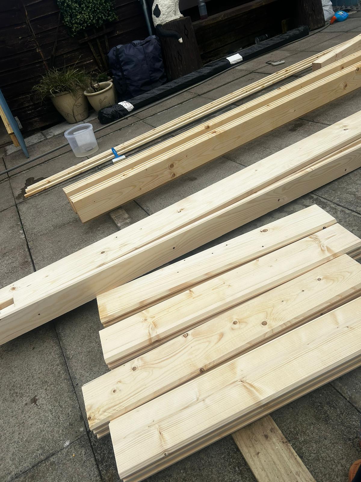 Better weather today so I've been able to use the power tools outside!! Final roof board cut and fitted, remaining timber moved in to the garden room to dry out...