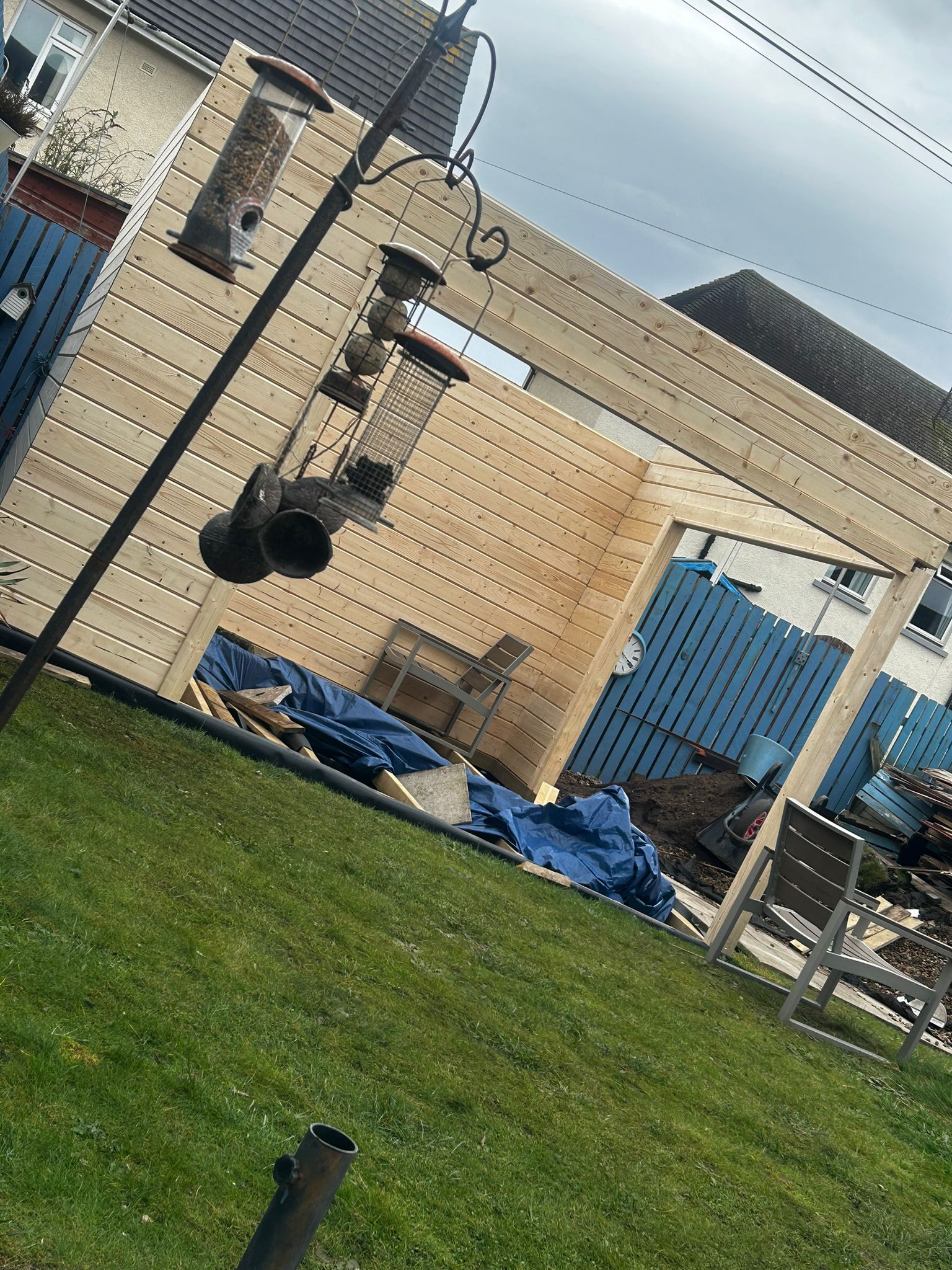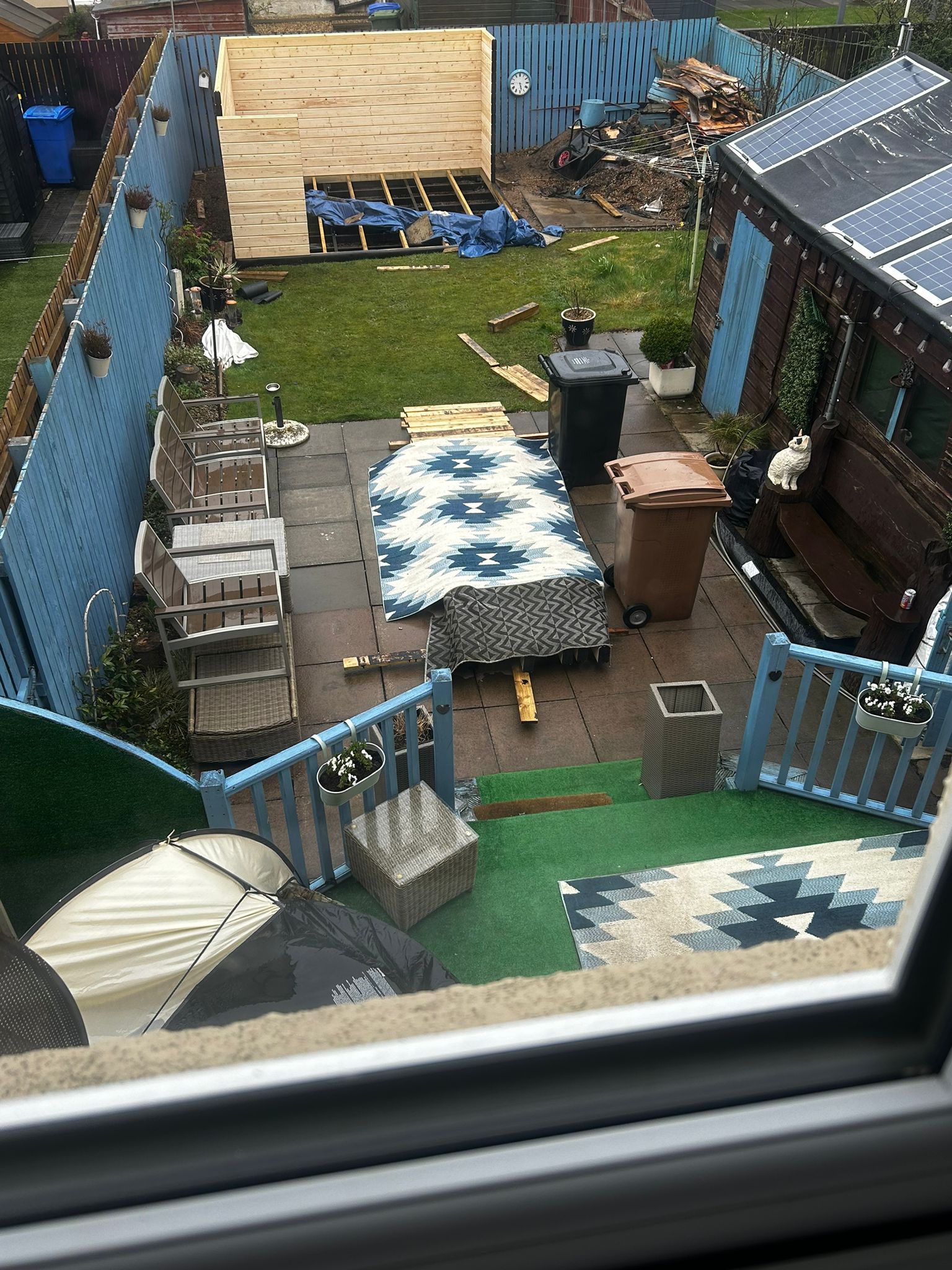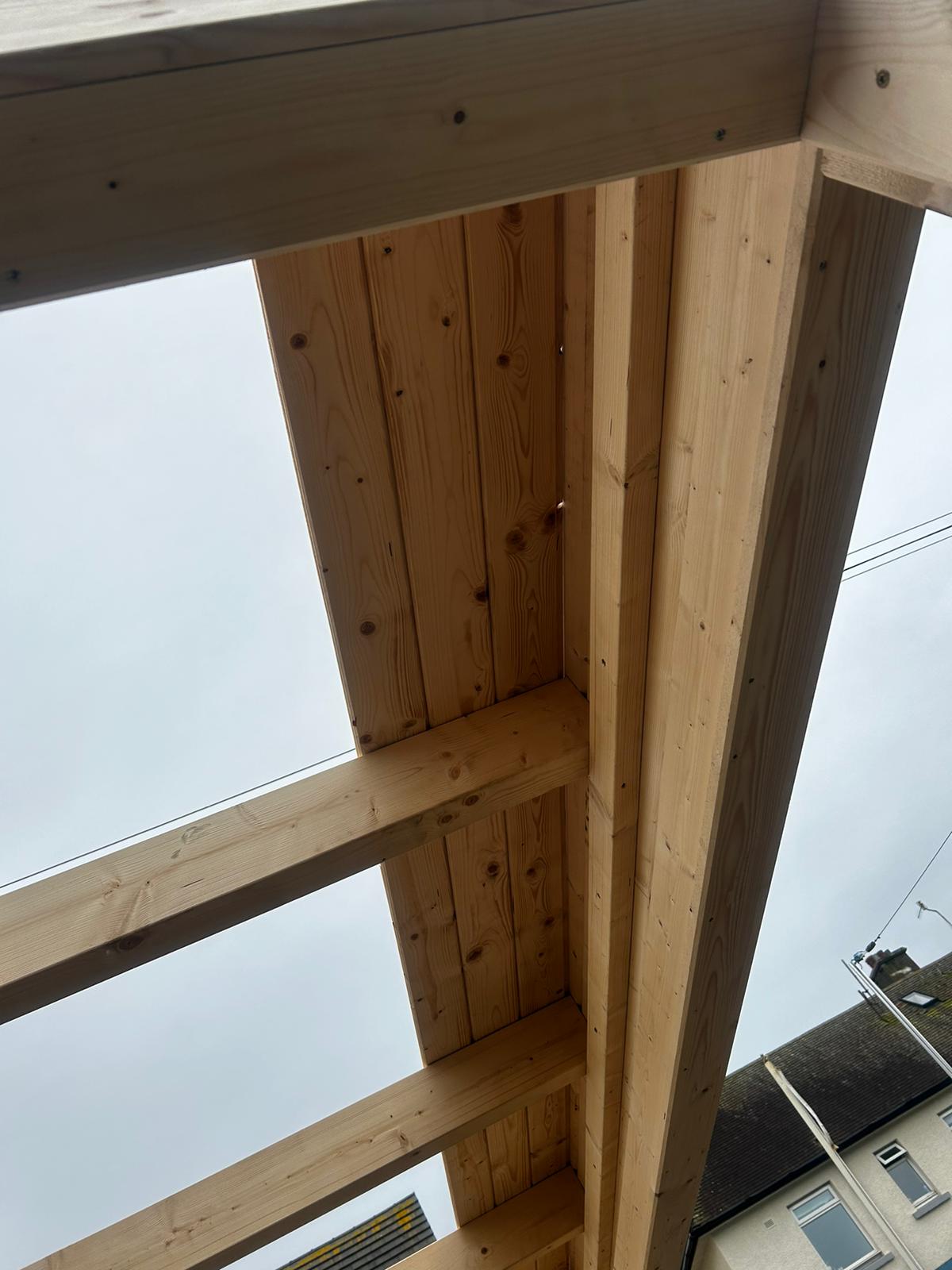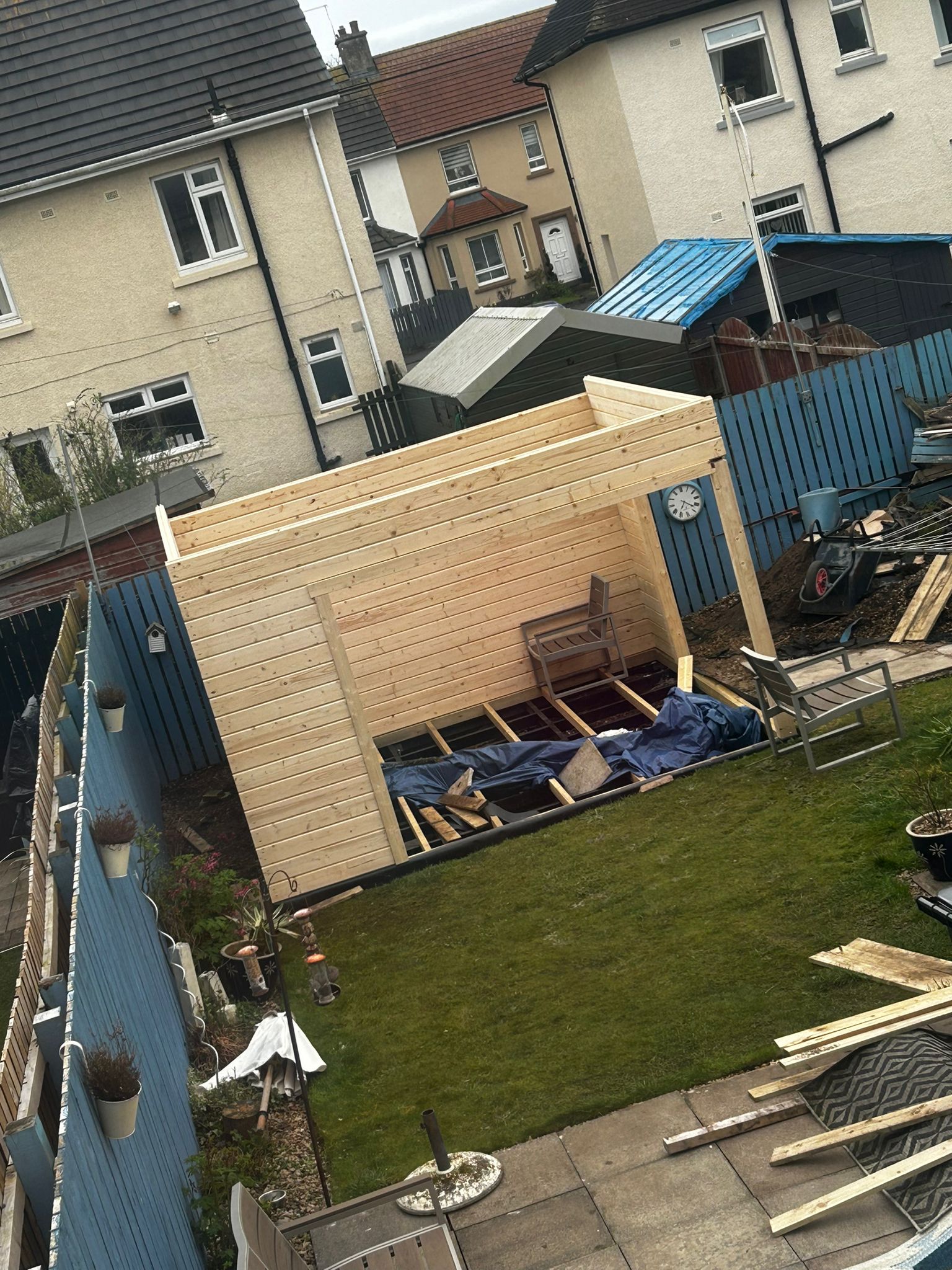 Better weather today so I've been able to use the power tools outside!! Final roof board cut and fitted, remaining timber moved in to the garden room to dry out...