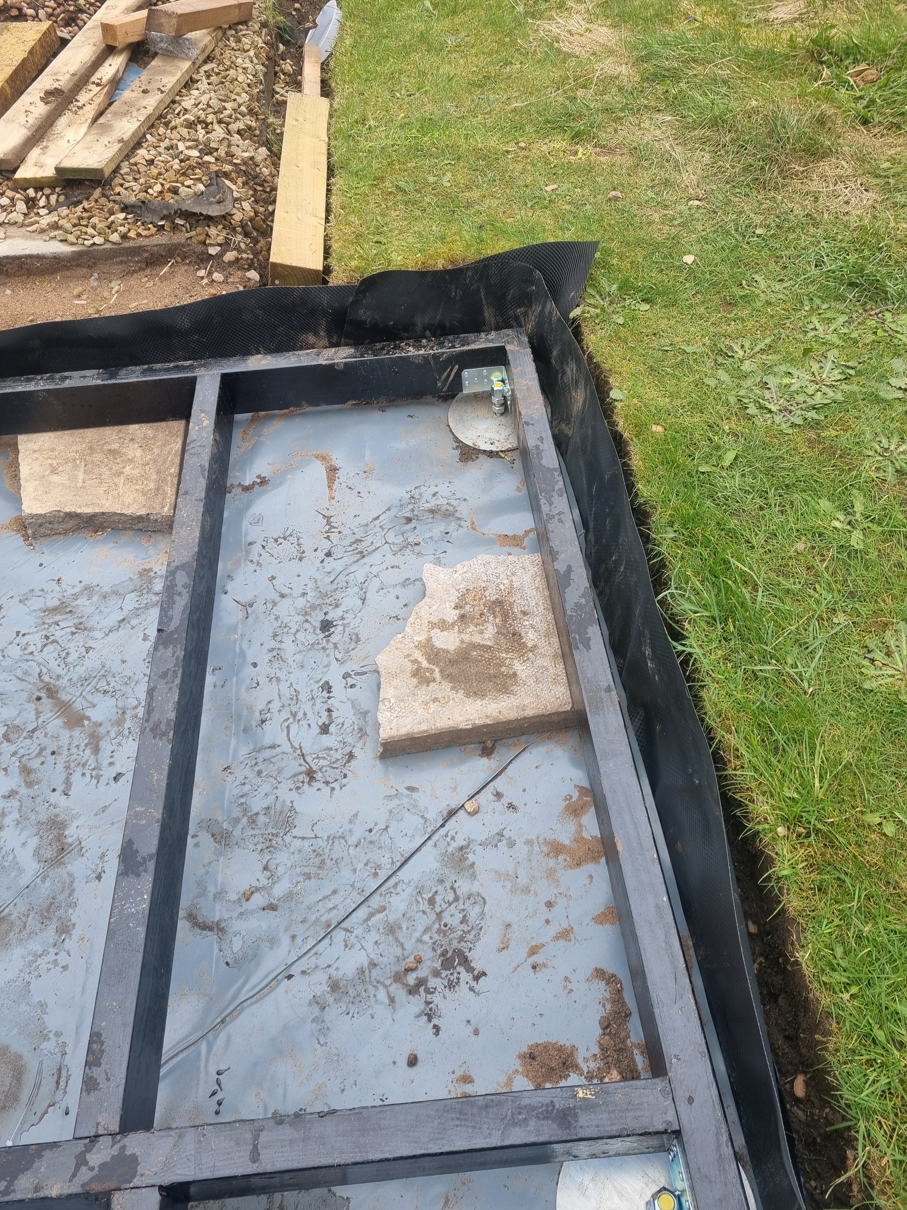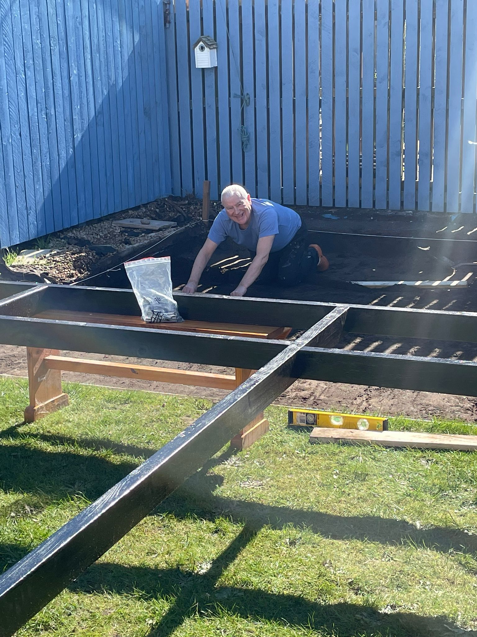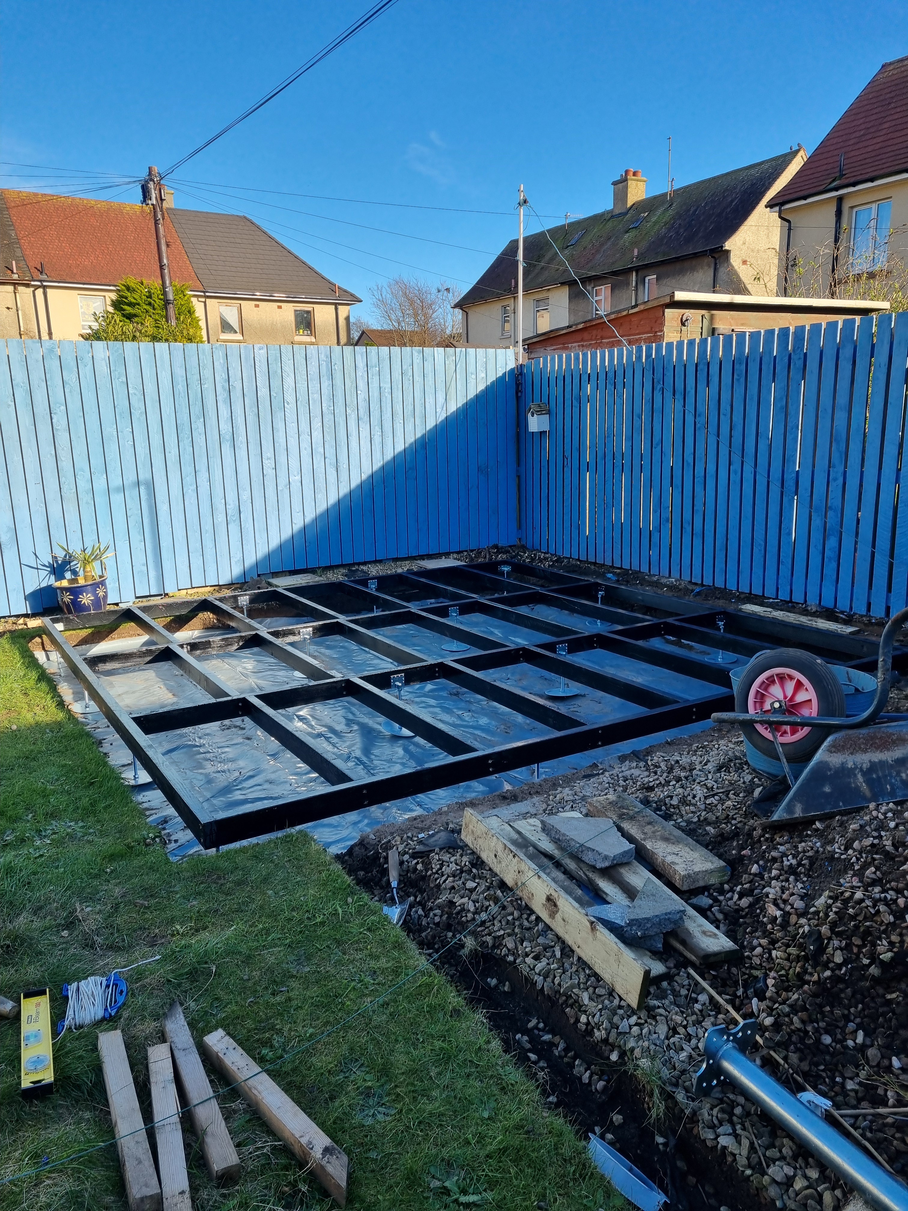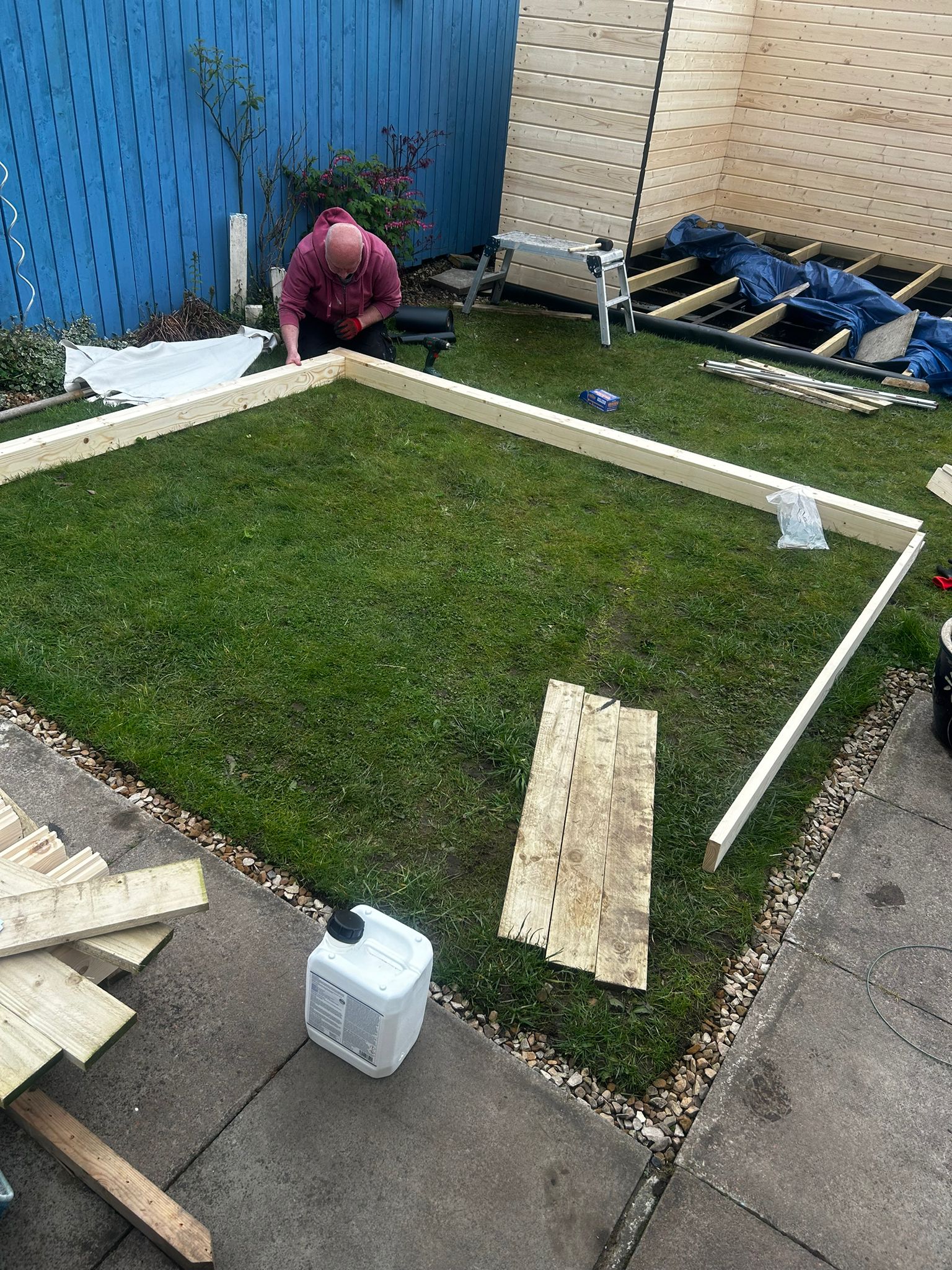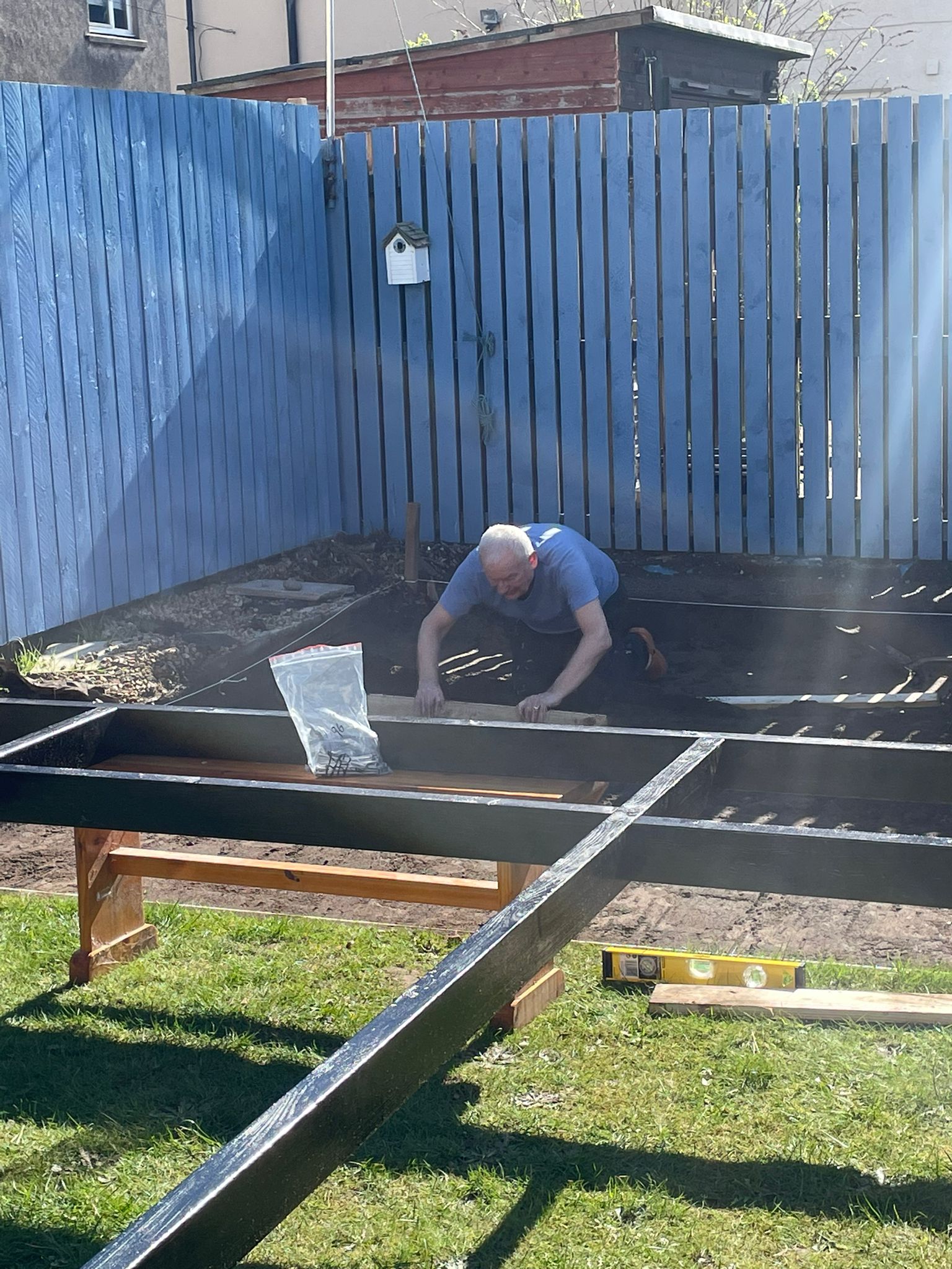 A welcome break in the weather and some welcome help on hand!! Foundation frame complete and turned over in to it's final resting place...