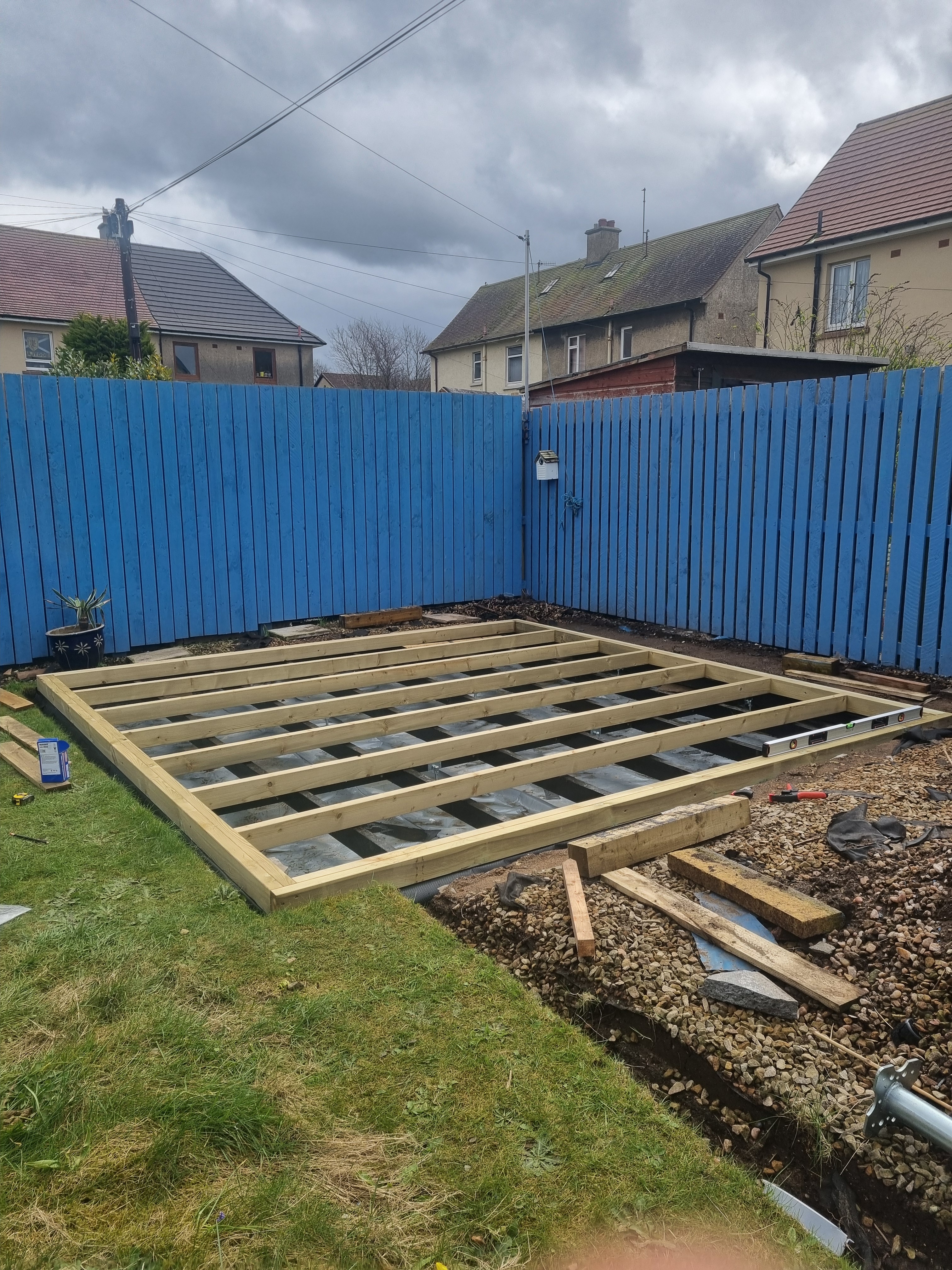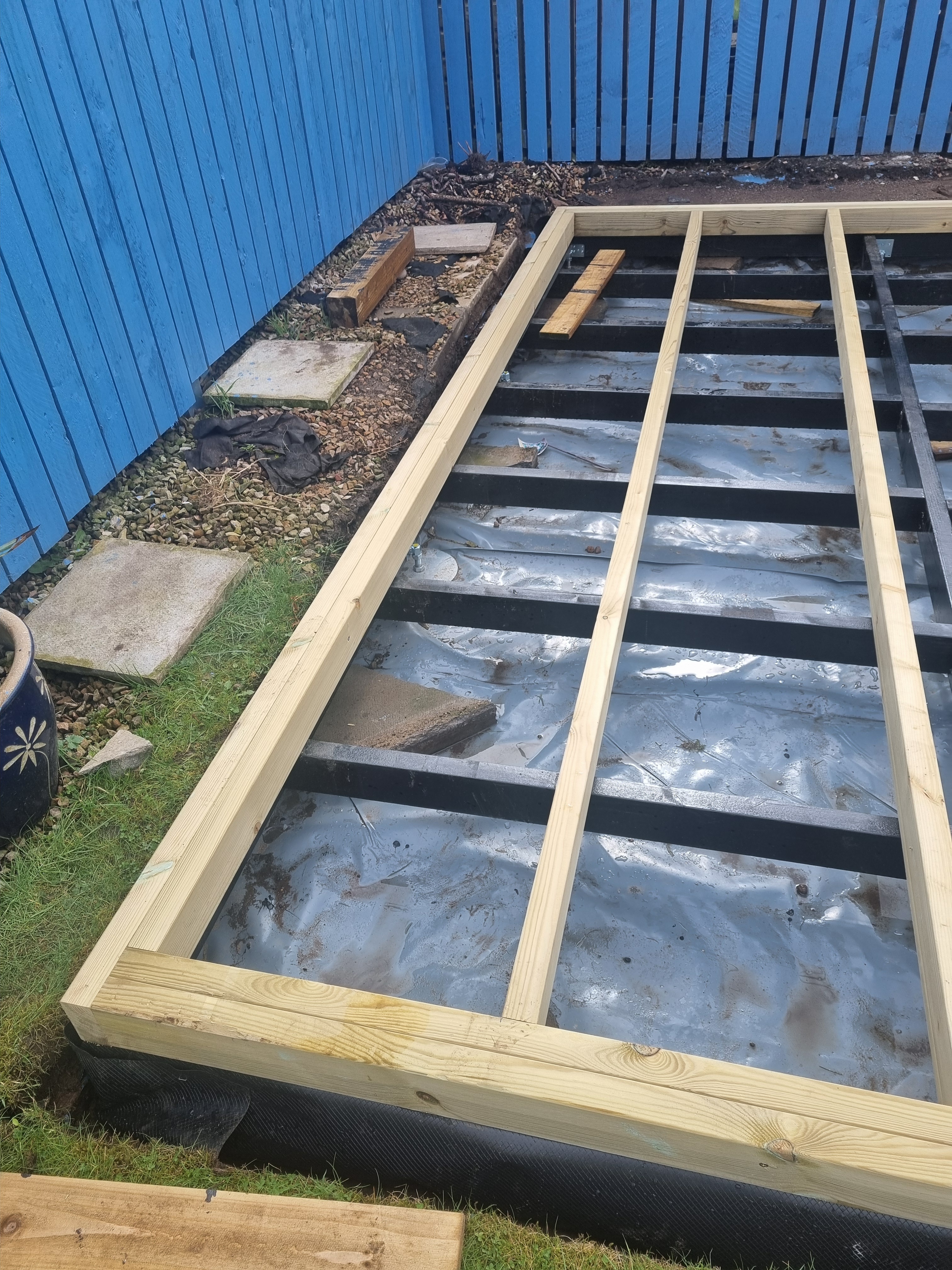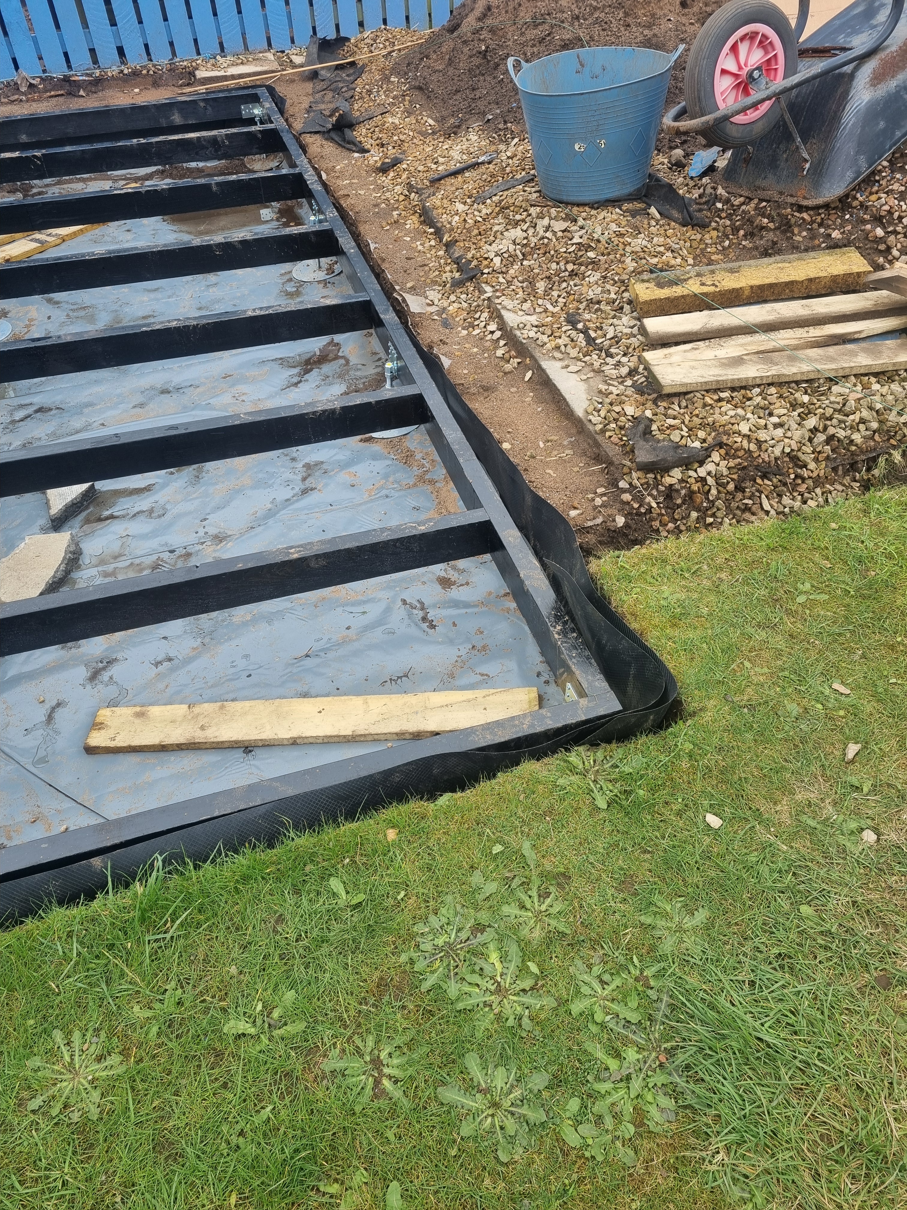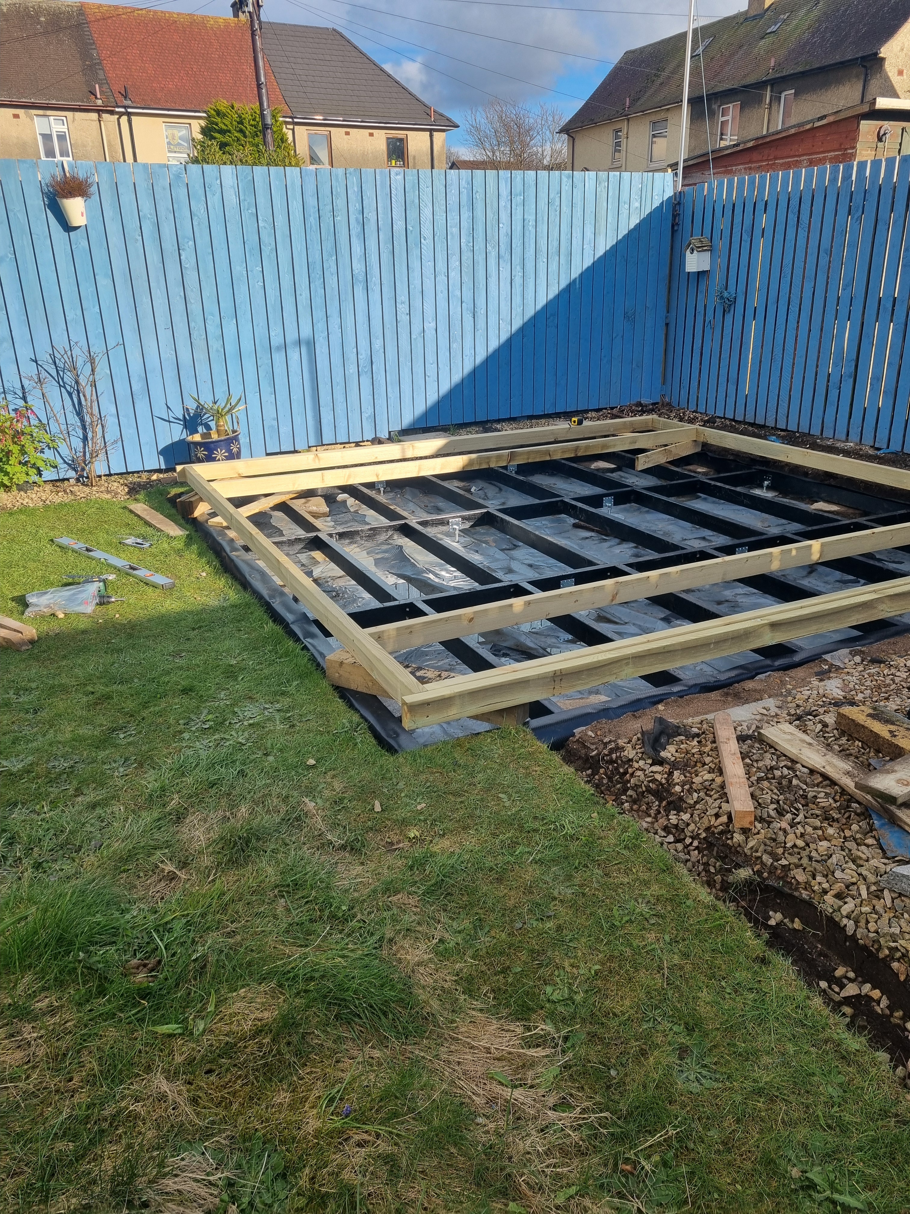 A welcome break in the weather and some welcome help on hand!! Foundation frame complete and turned over in to it's final resting place...