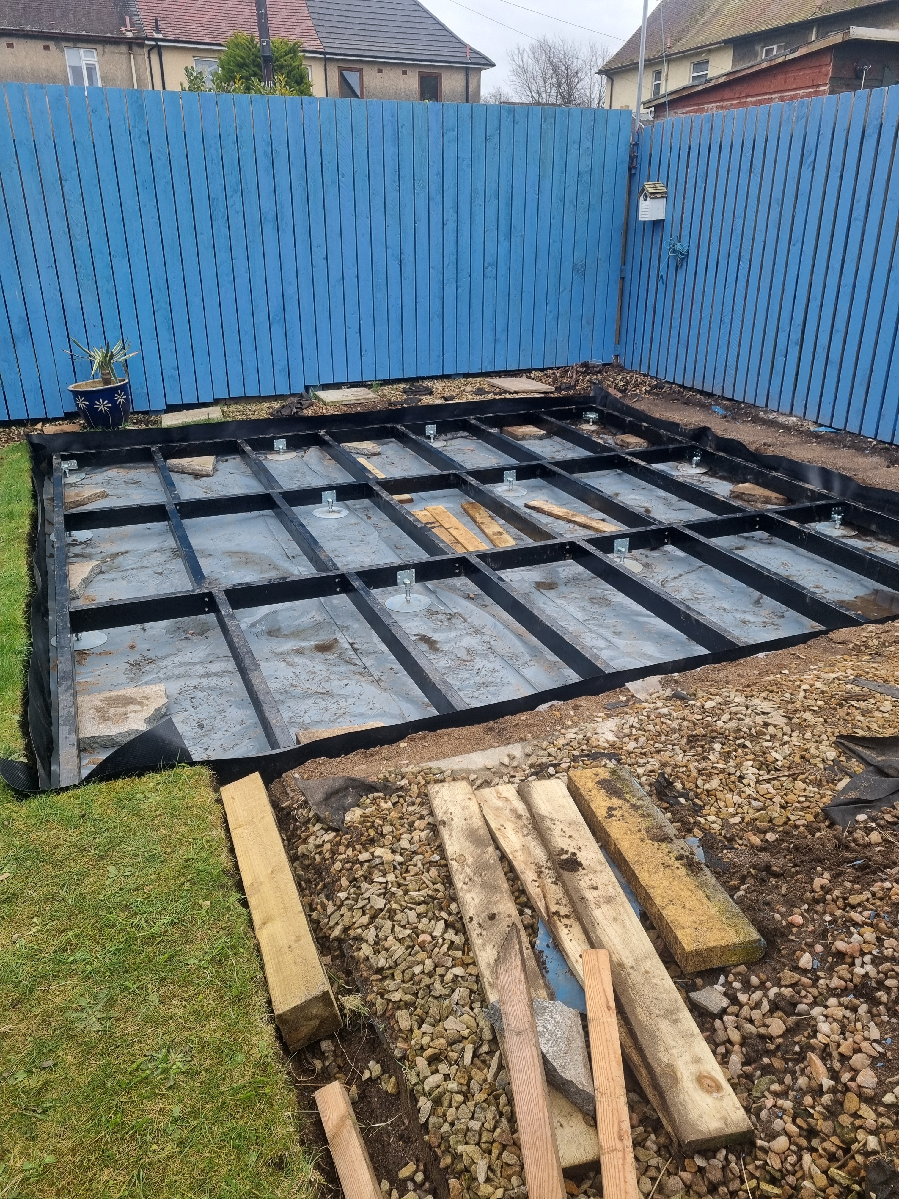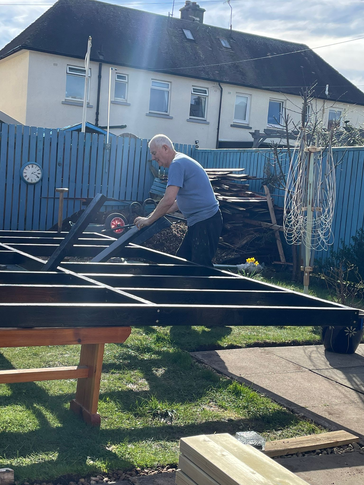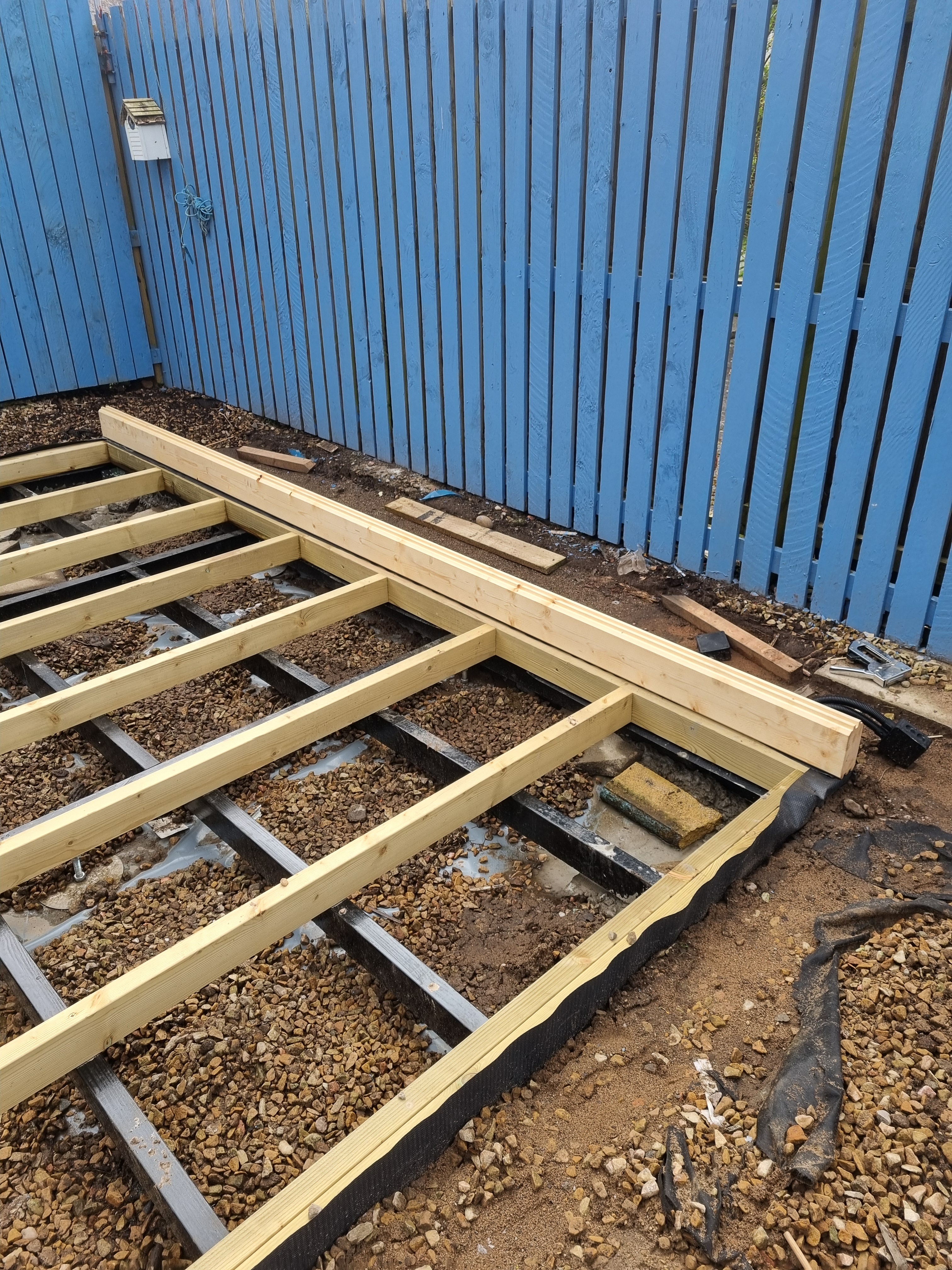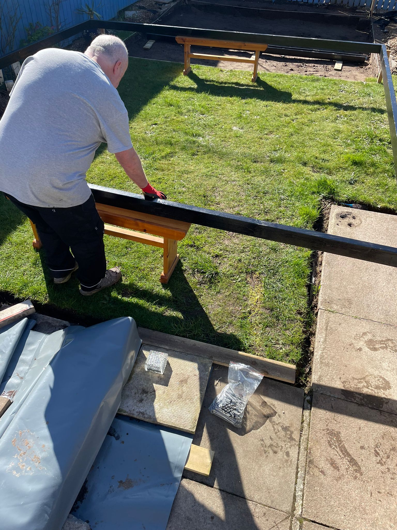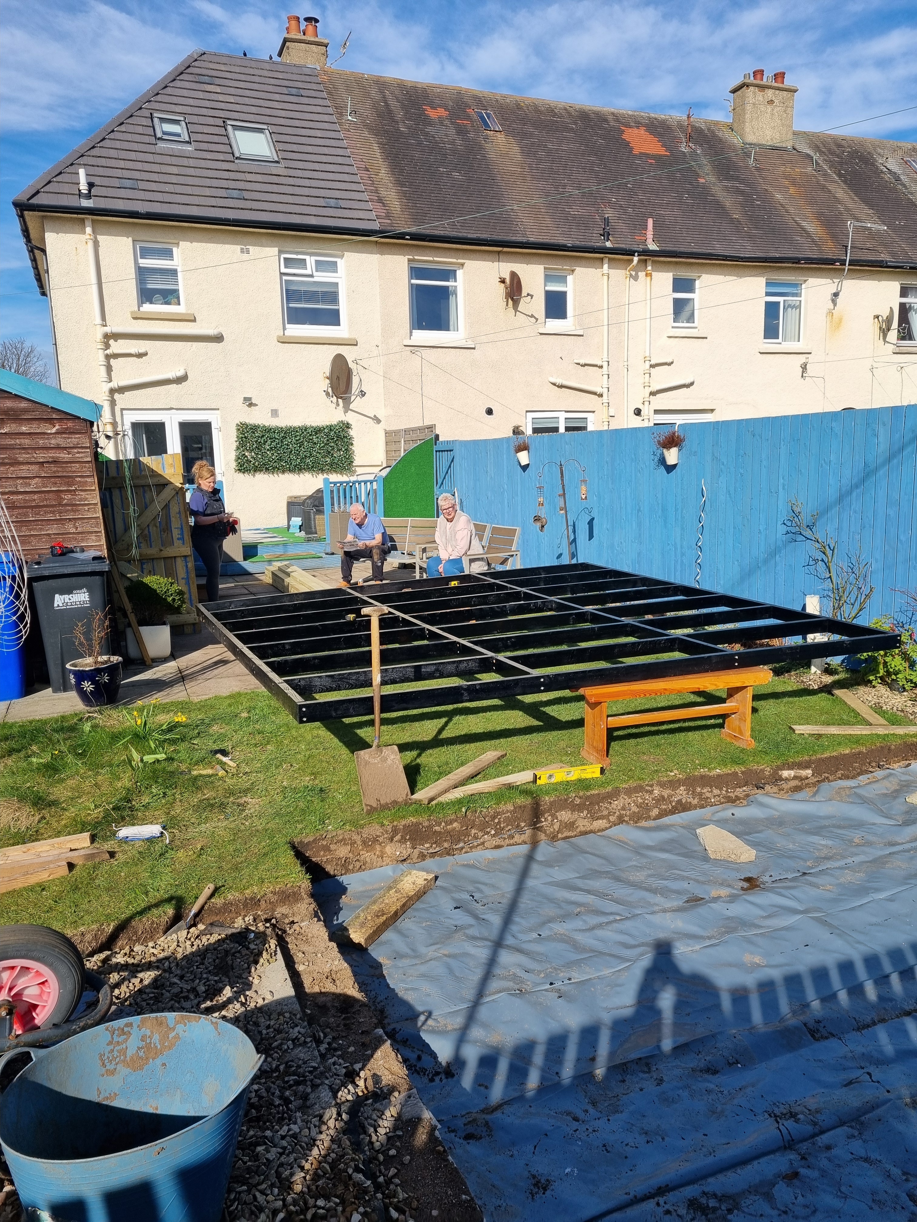 A welcome break in the weather and some welcome help on hand!! Foundation frame complete and turned over in to it's final resting place...