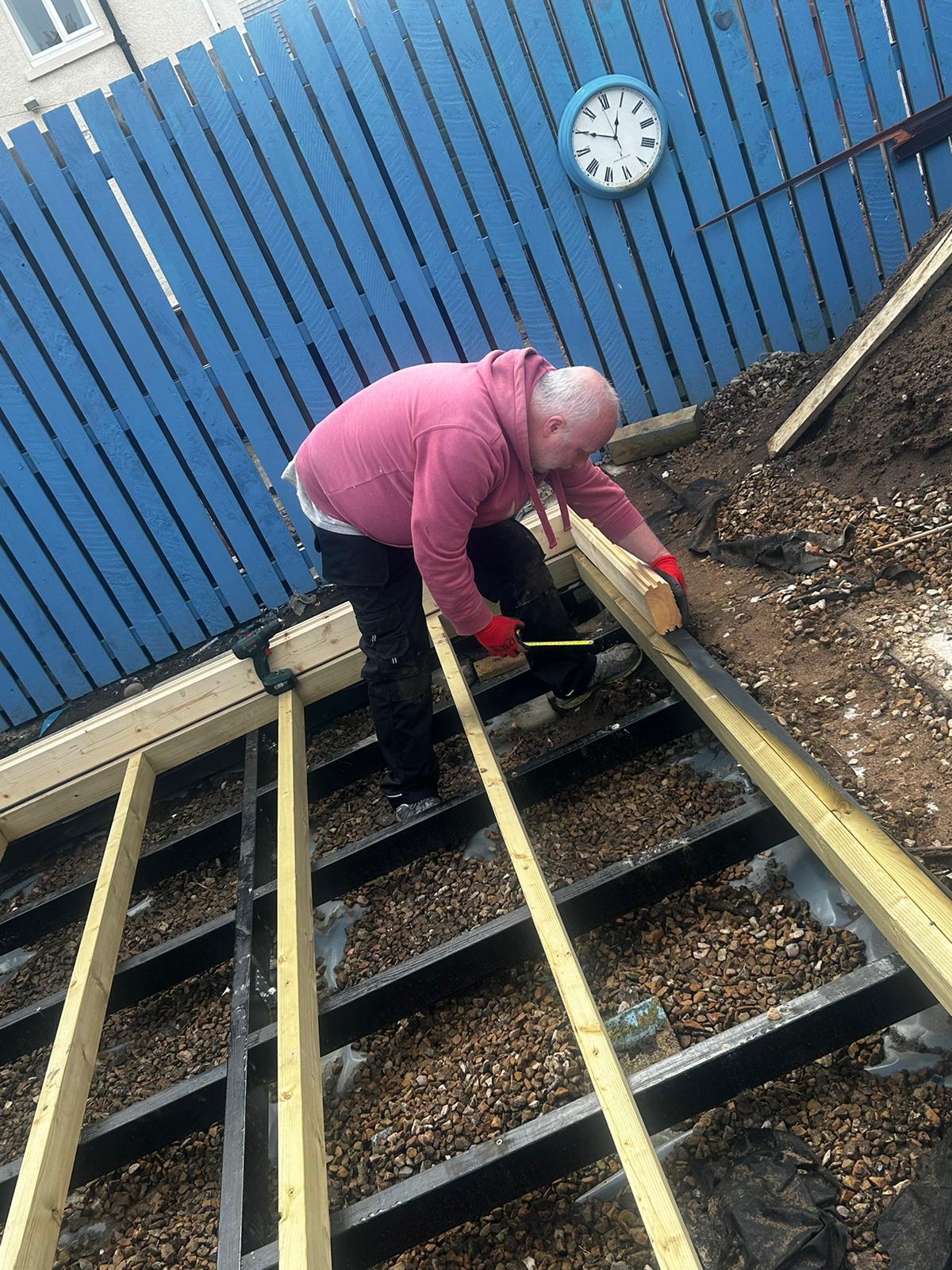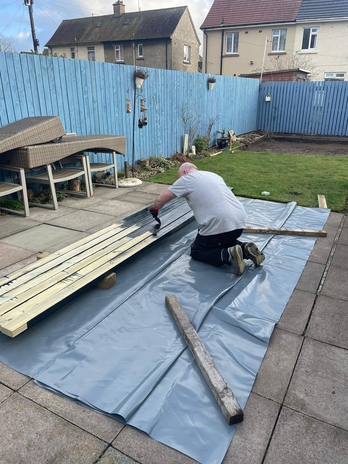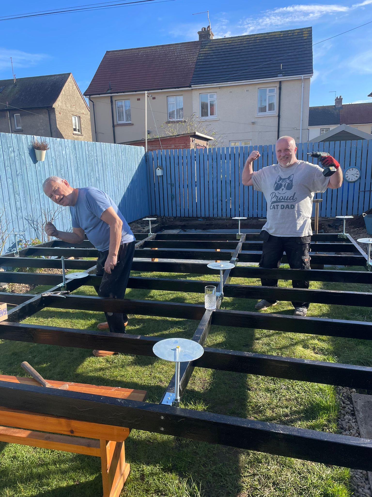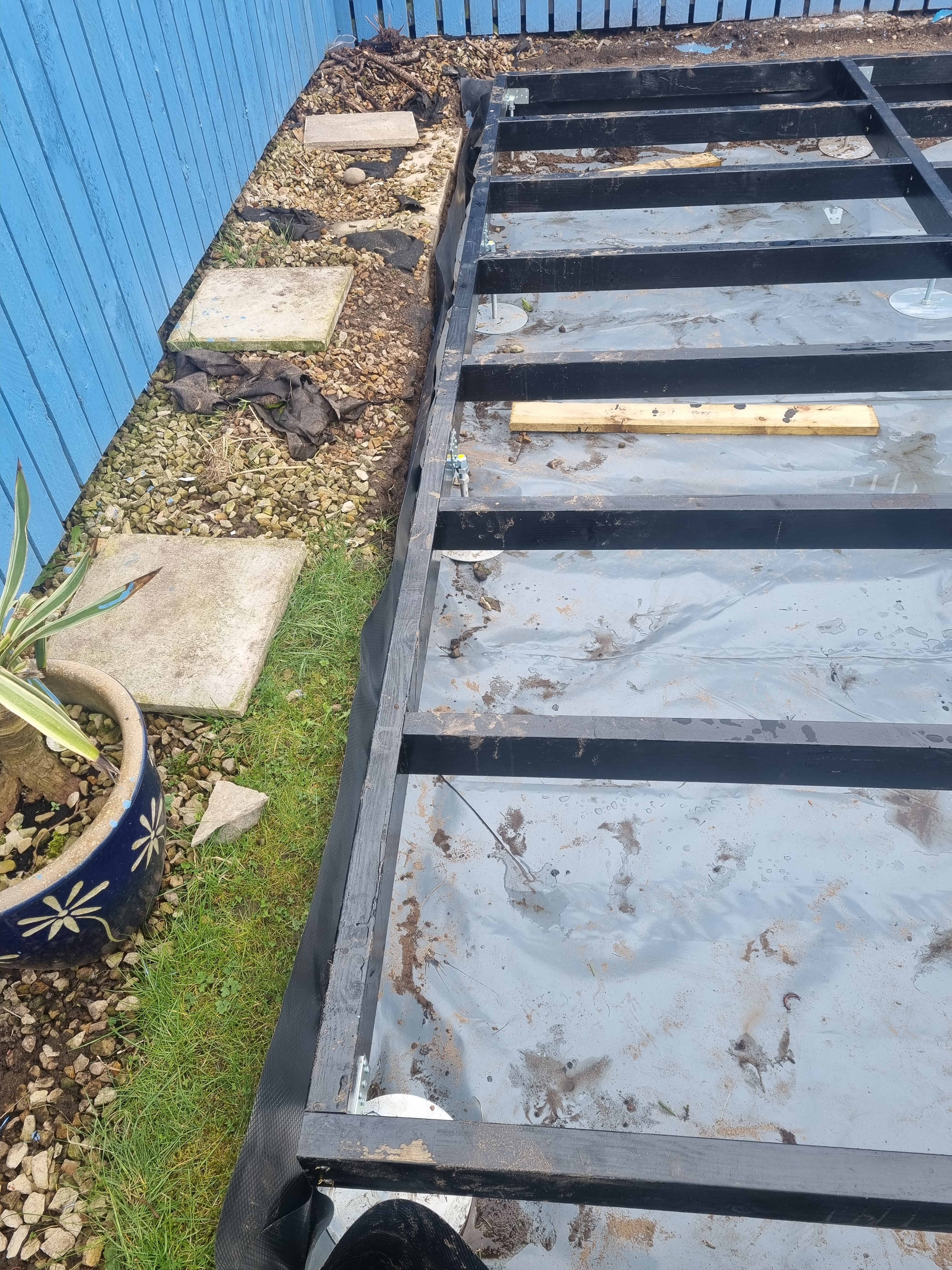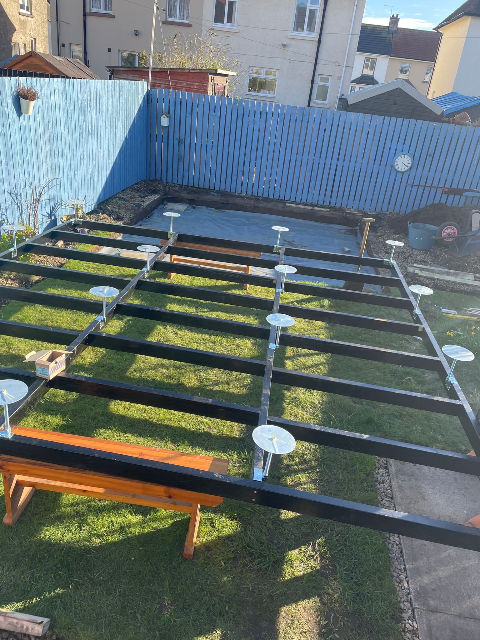 A welcome break in the weather and some welcome help on hand!! Foundation frame complete and turned over in to it's final resting place...