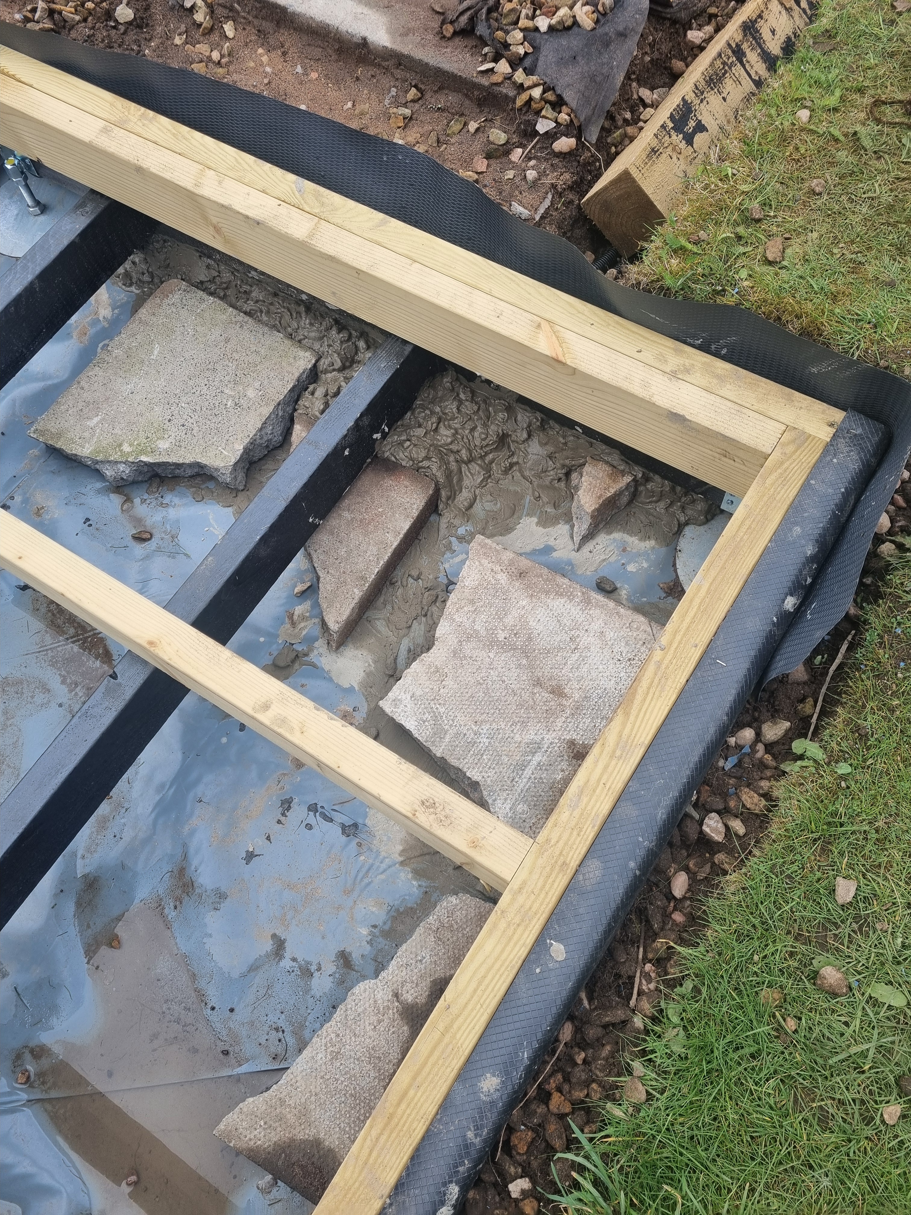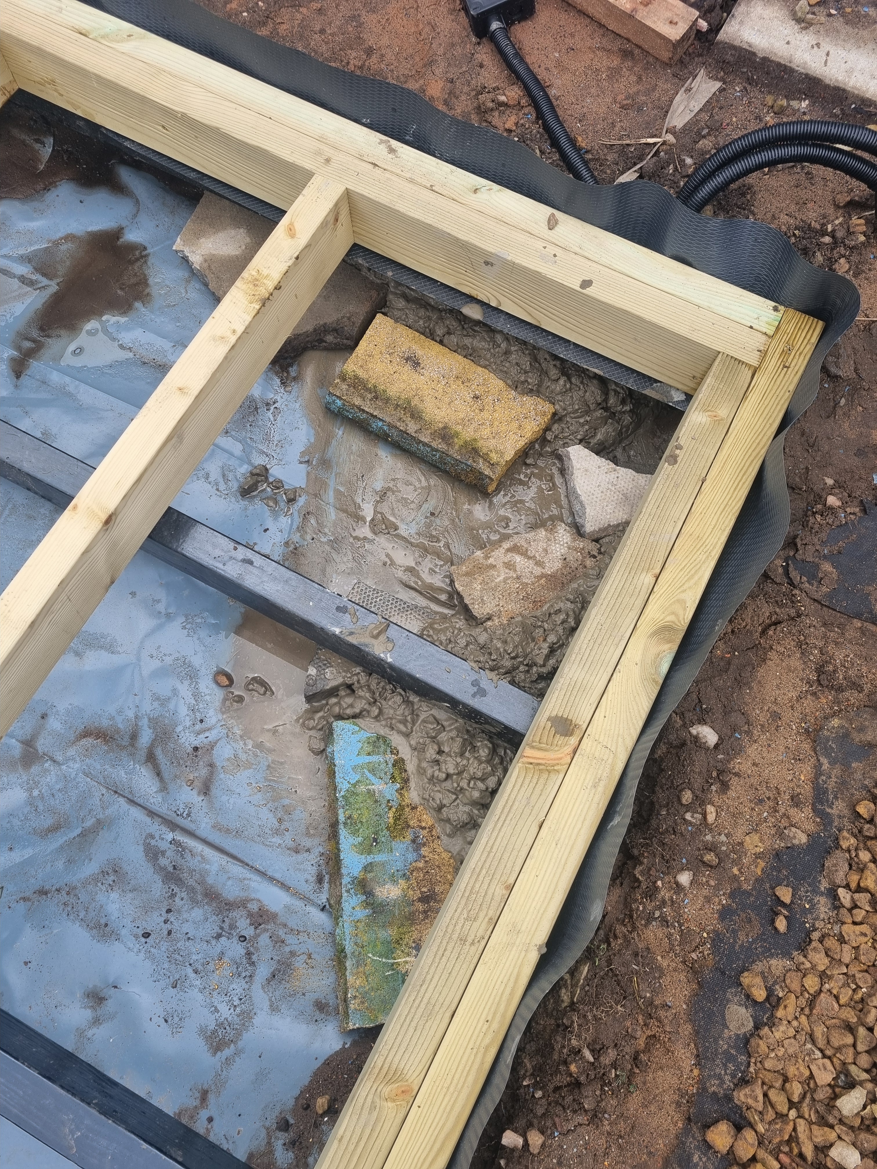 Some concrete added around the edges to give just a little bit more support. Everything's finally ready for the build proper to start...
