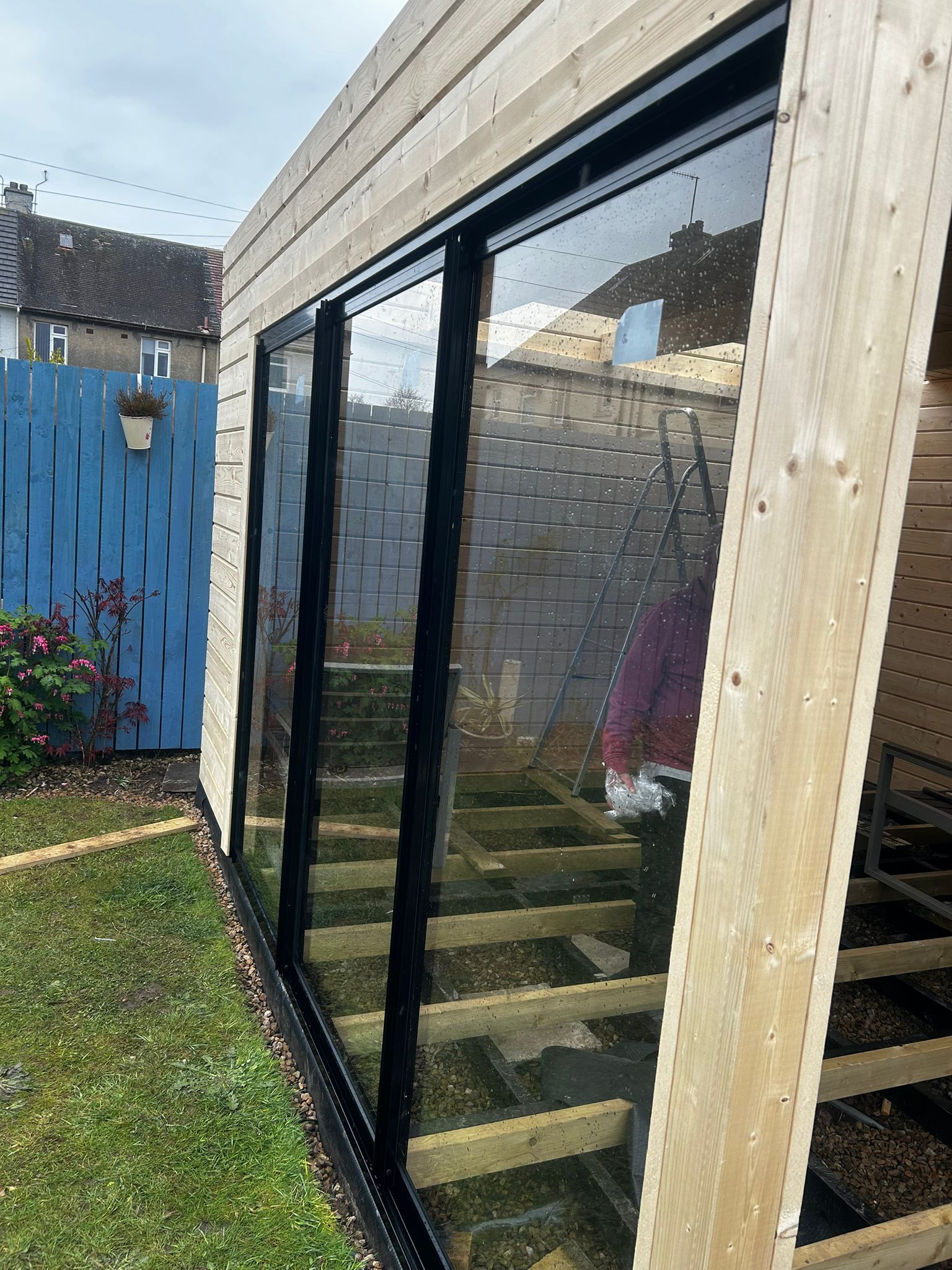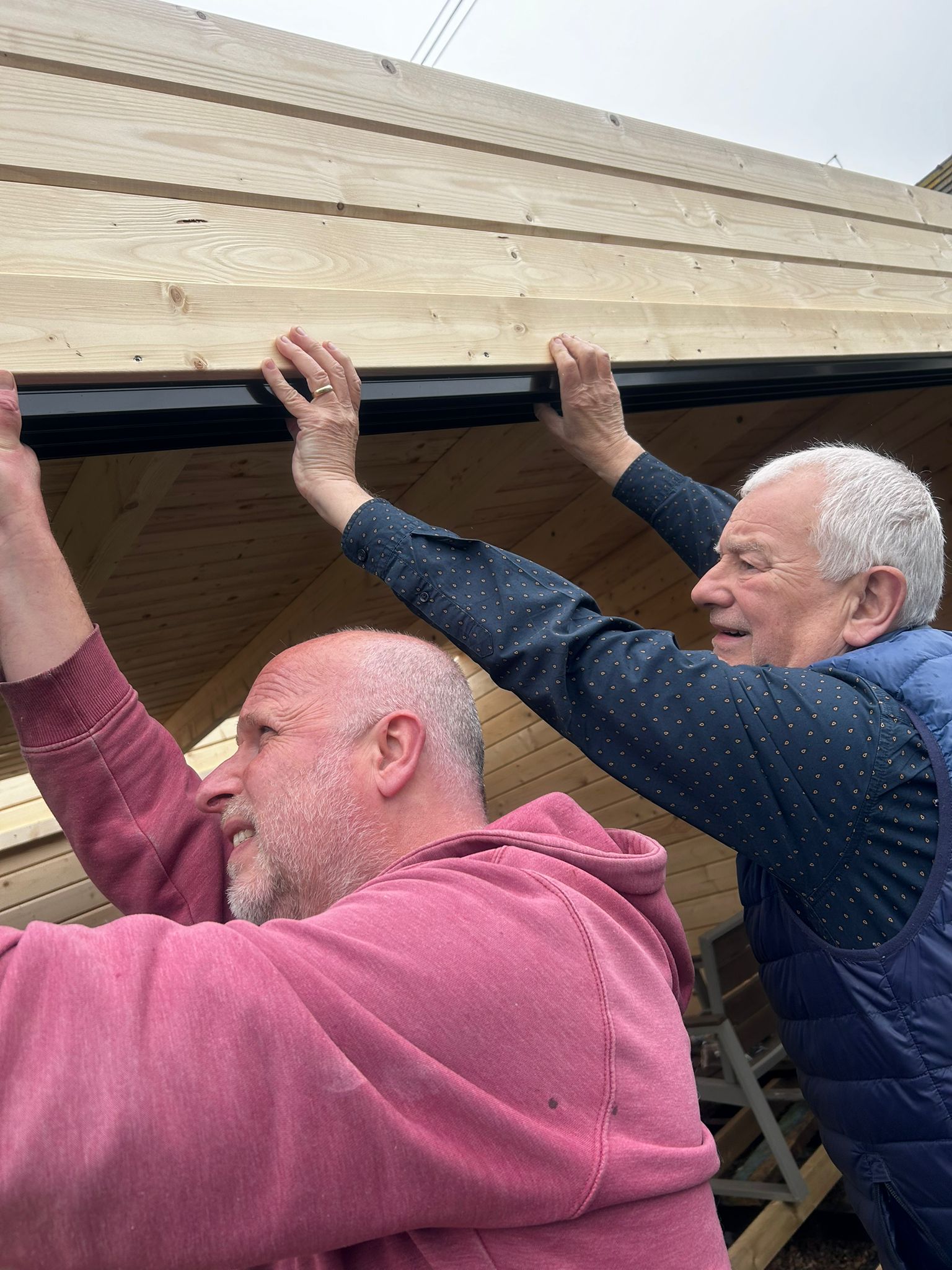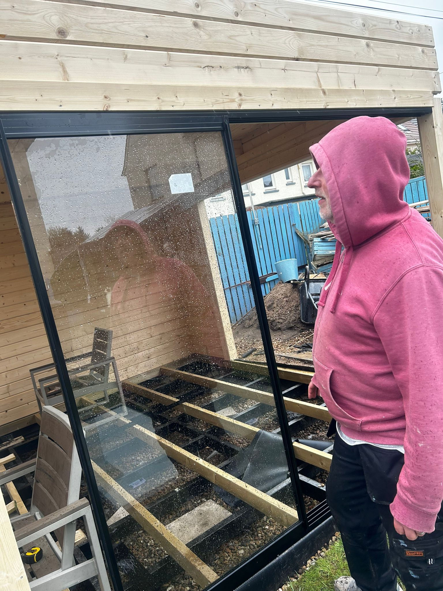The weather's rotten again today but at least the cavalry has arrived to lend some much needed help to get the sliding doors fitted...