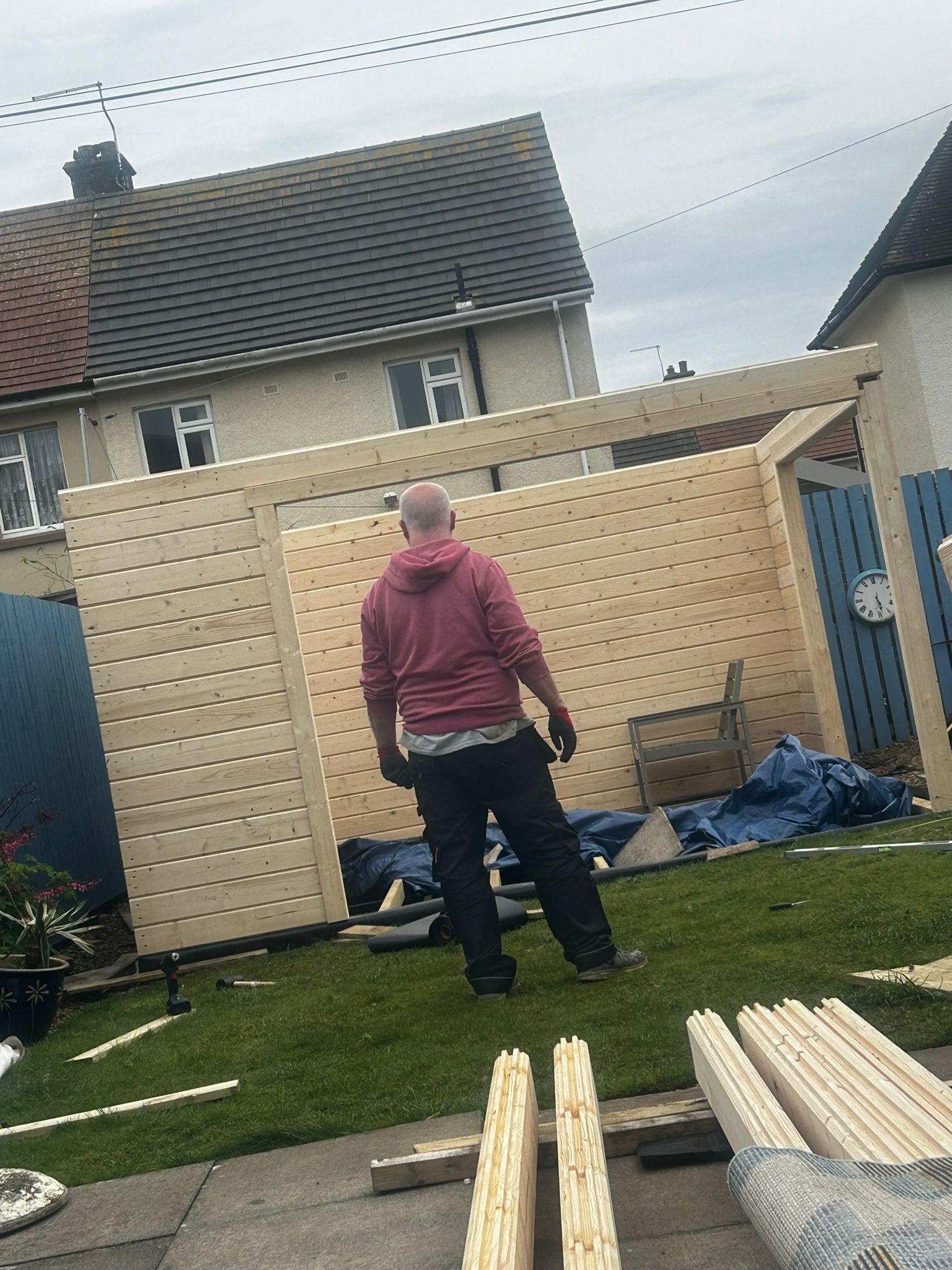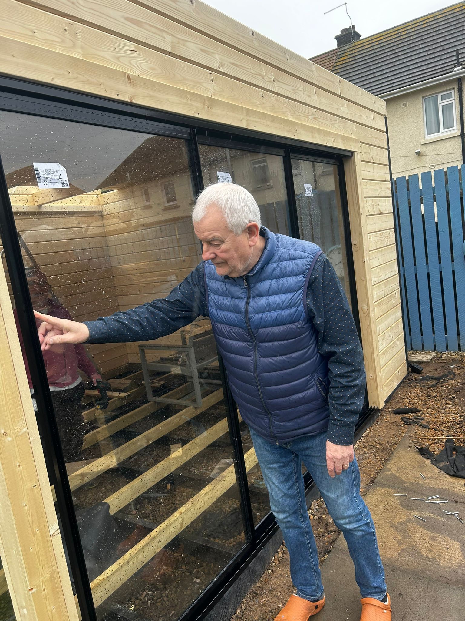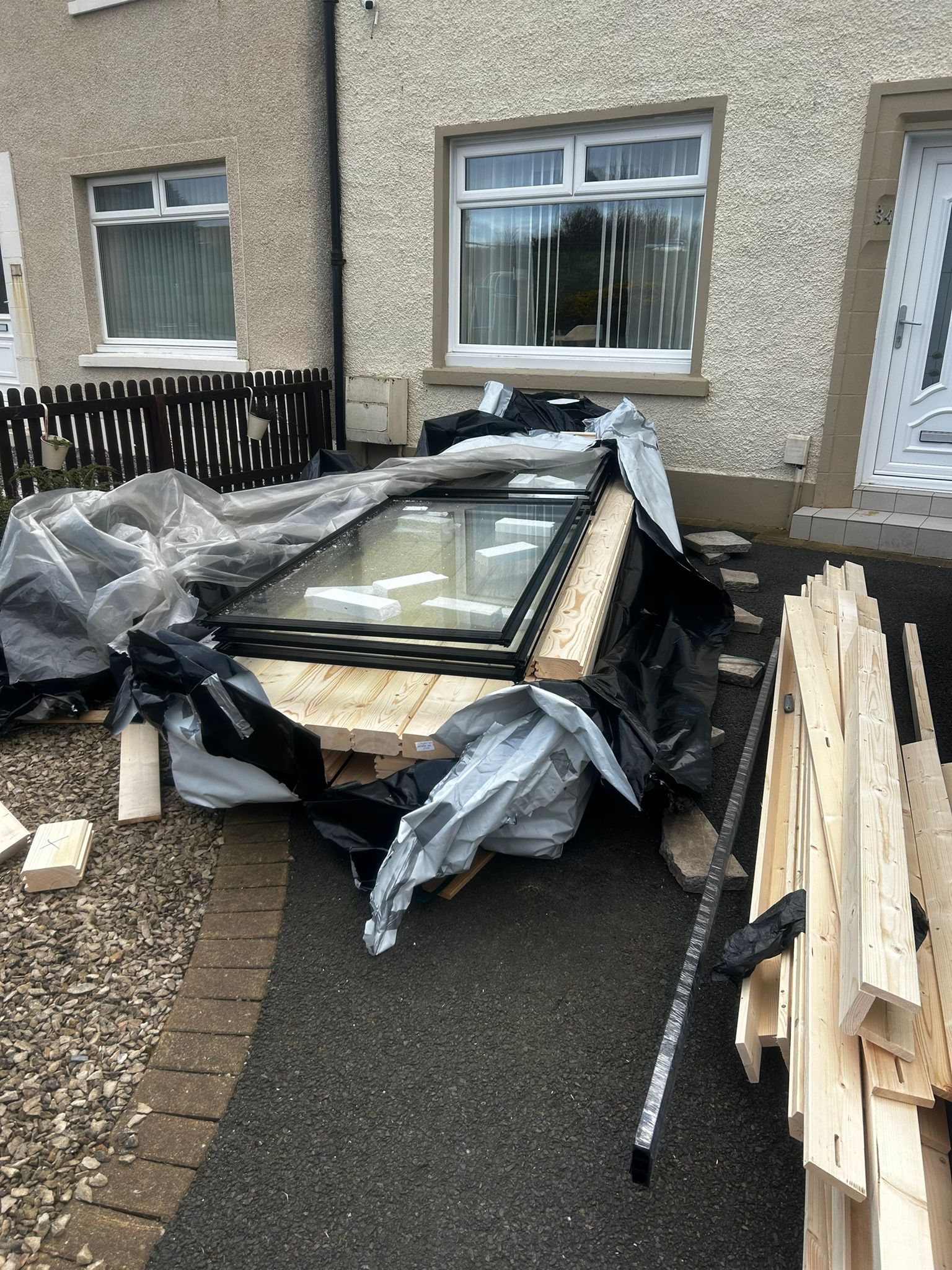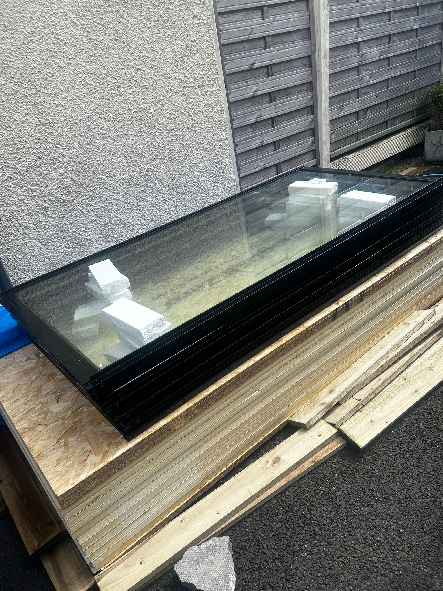 The weather's rotten again today but at least the cavalry has arrived to lend some much needed help to get the sliding doors fitted...
