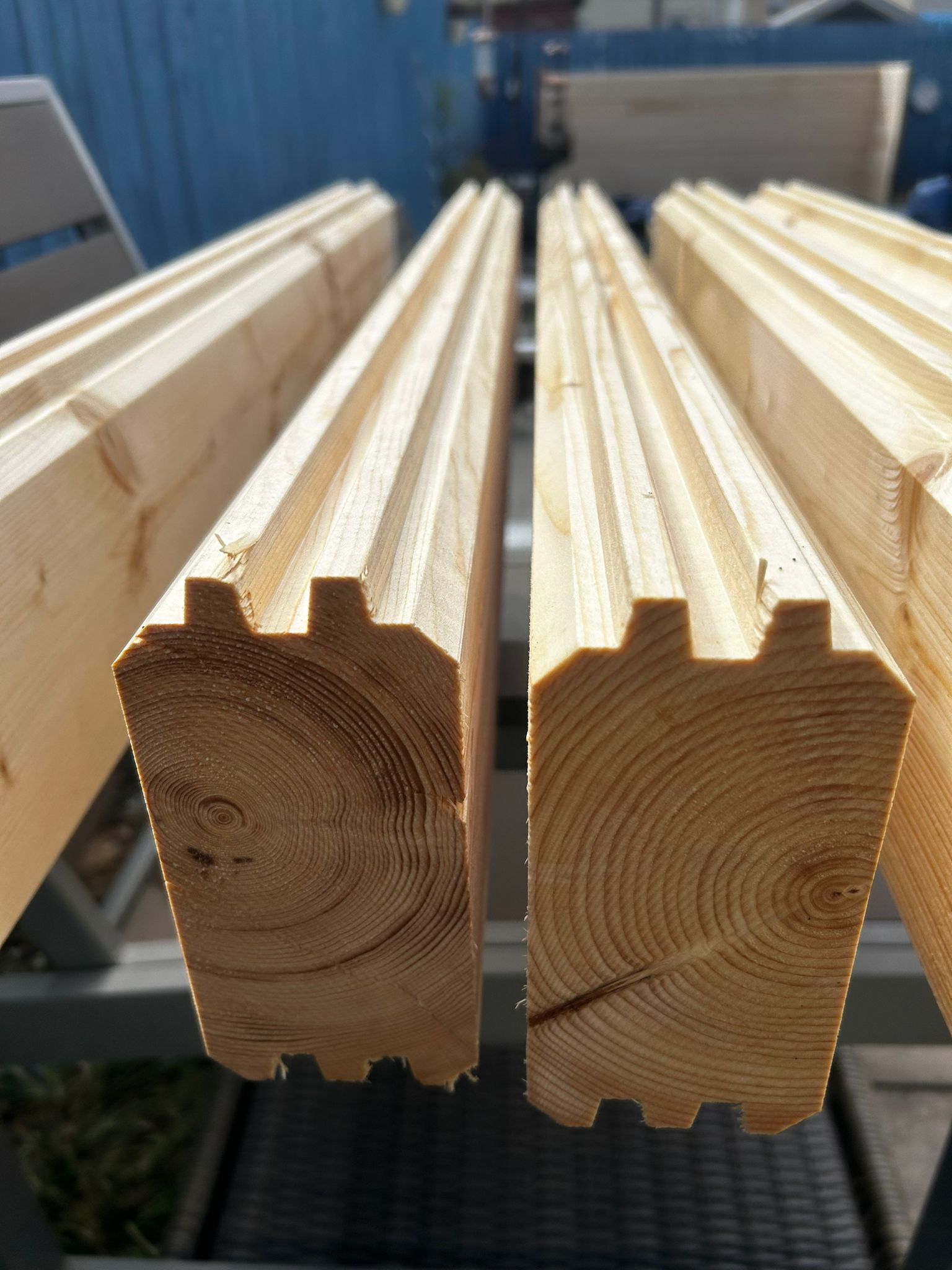 I was right, it's not that easy!! Lifting lots of these logs up above head height gets pretty tough after a while (especially recoverying from spinal surgery). We'll be glad to get this phase of the build finished...