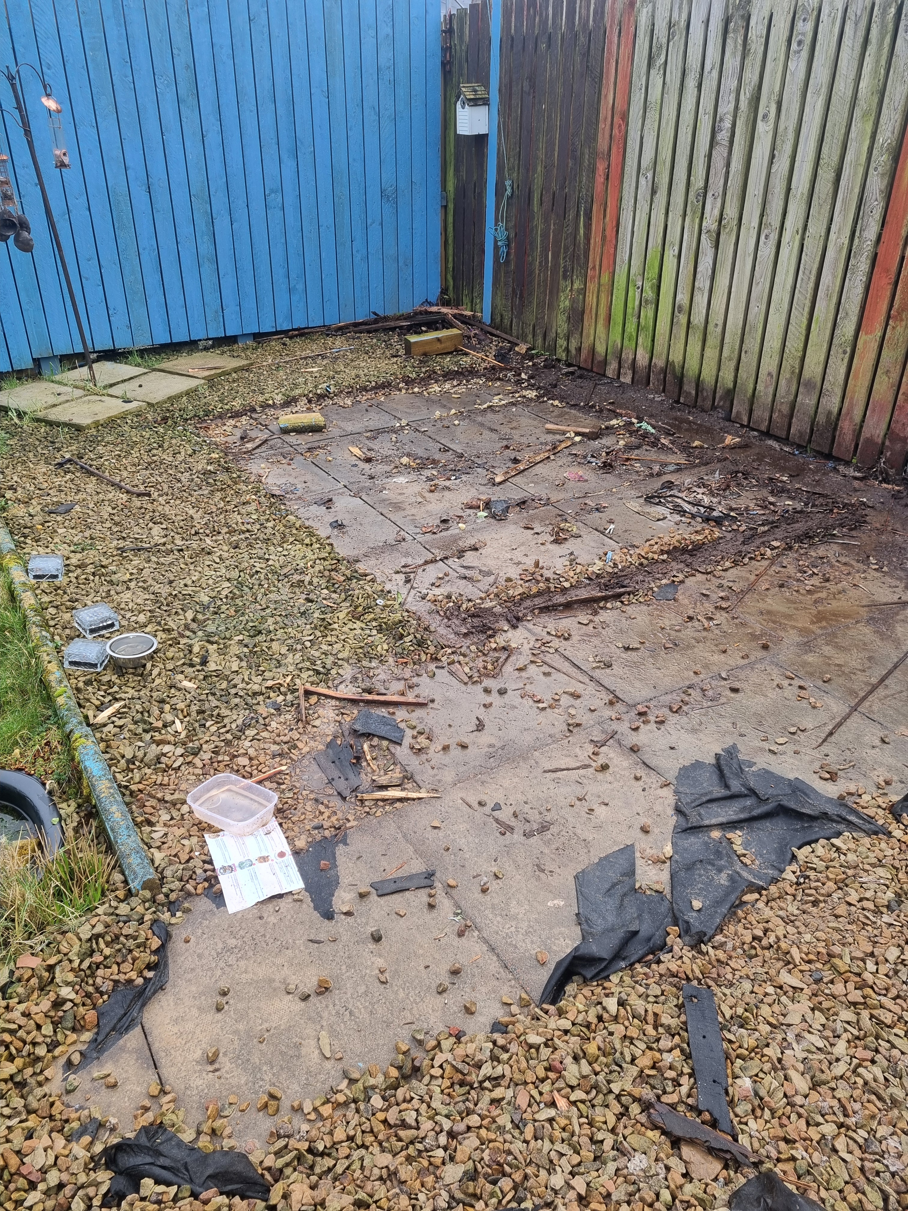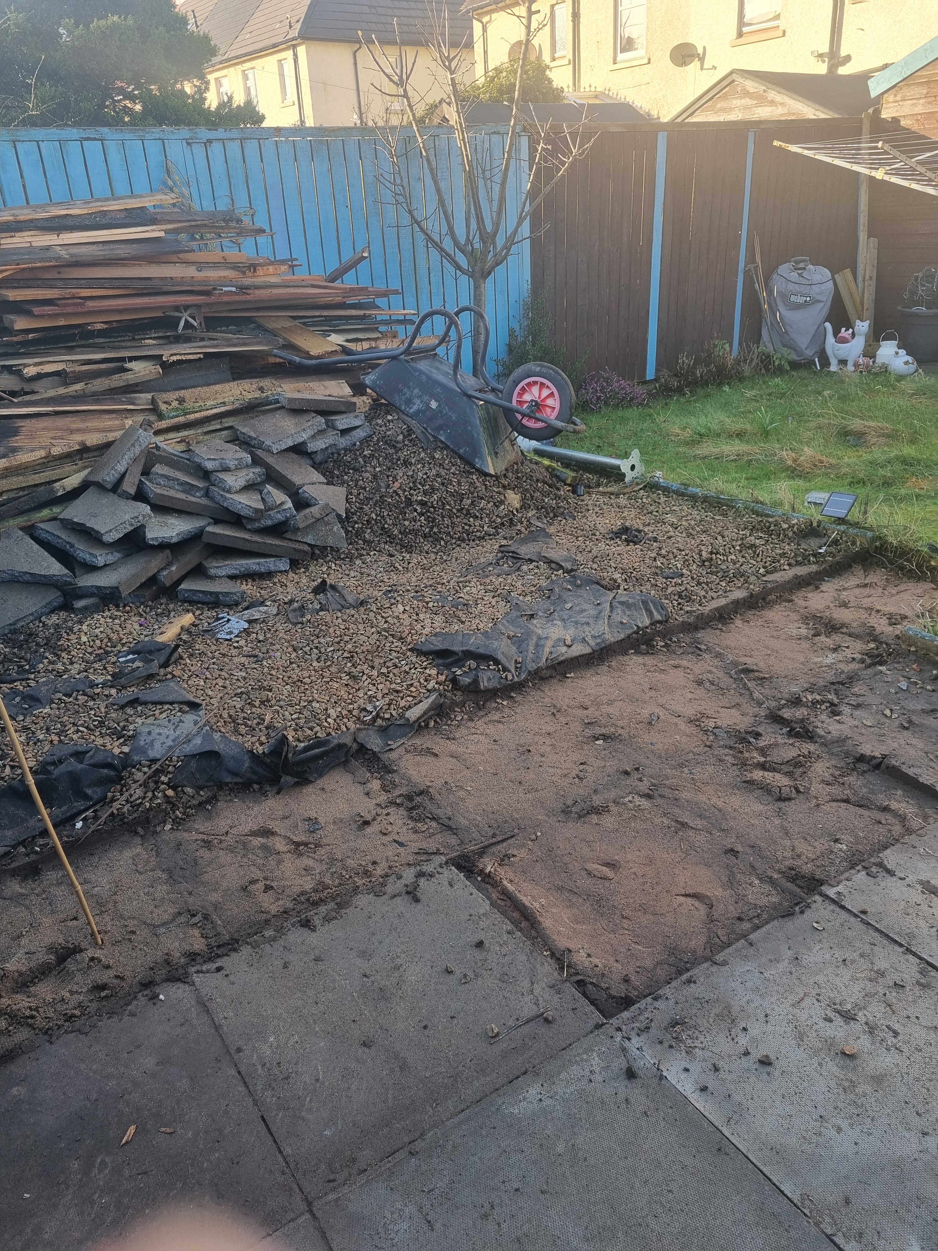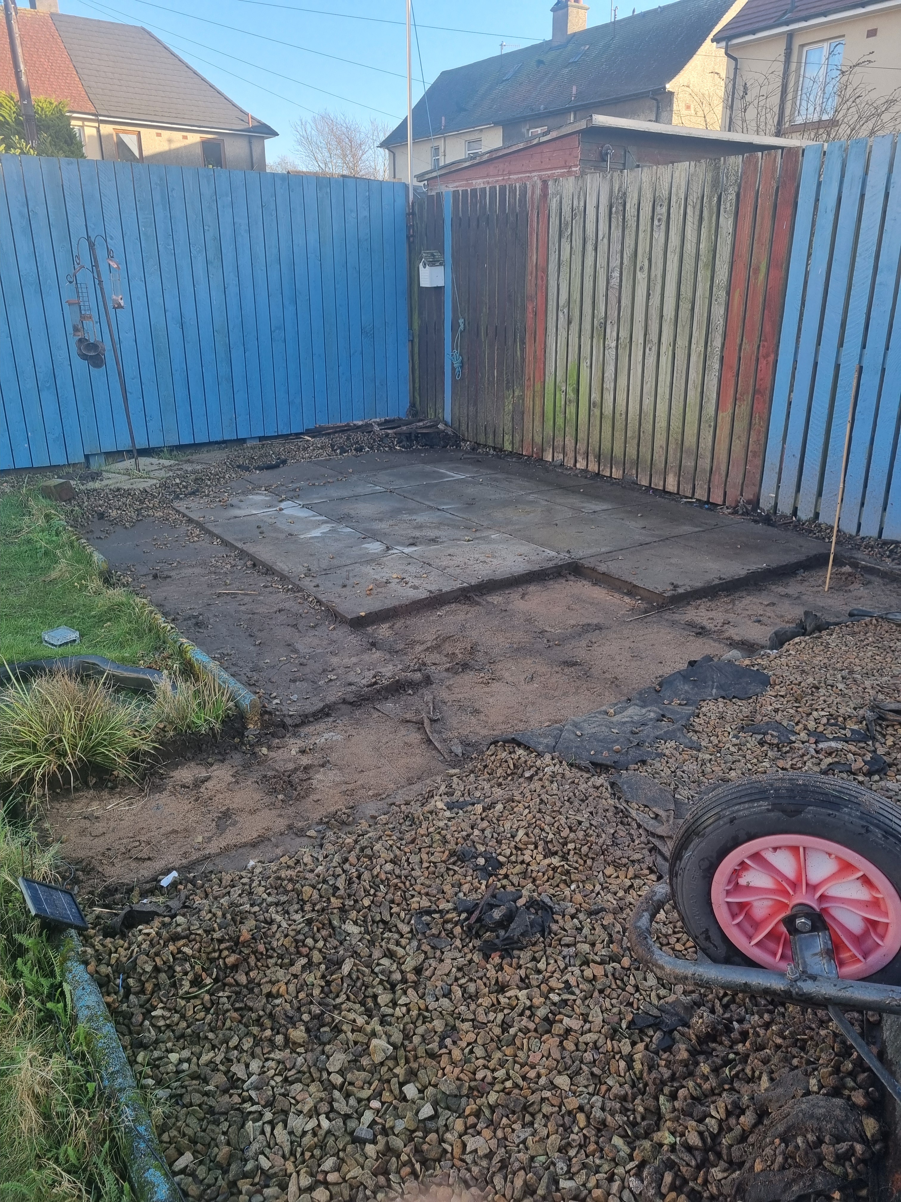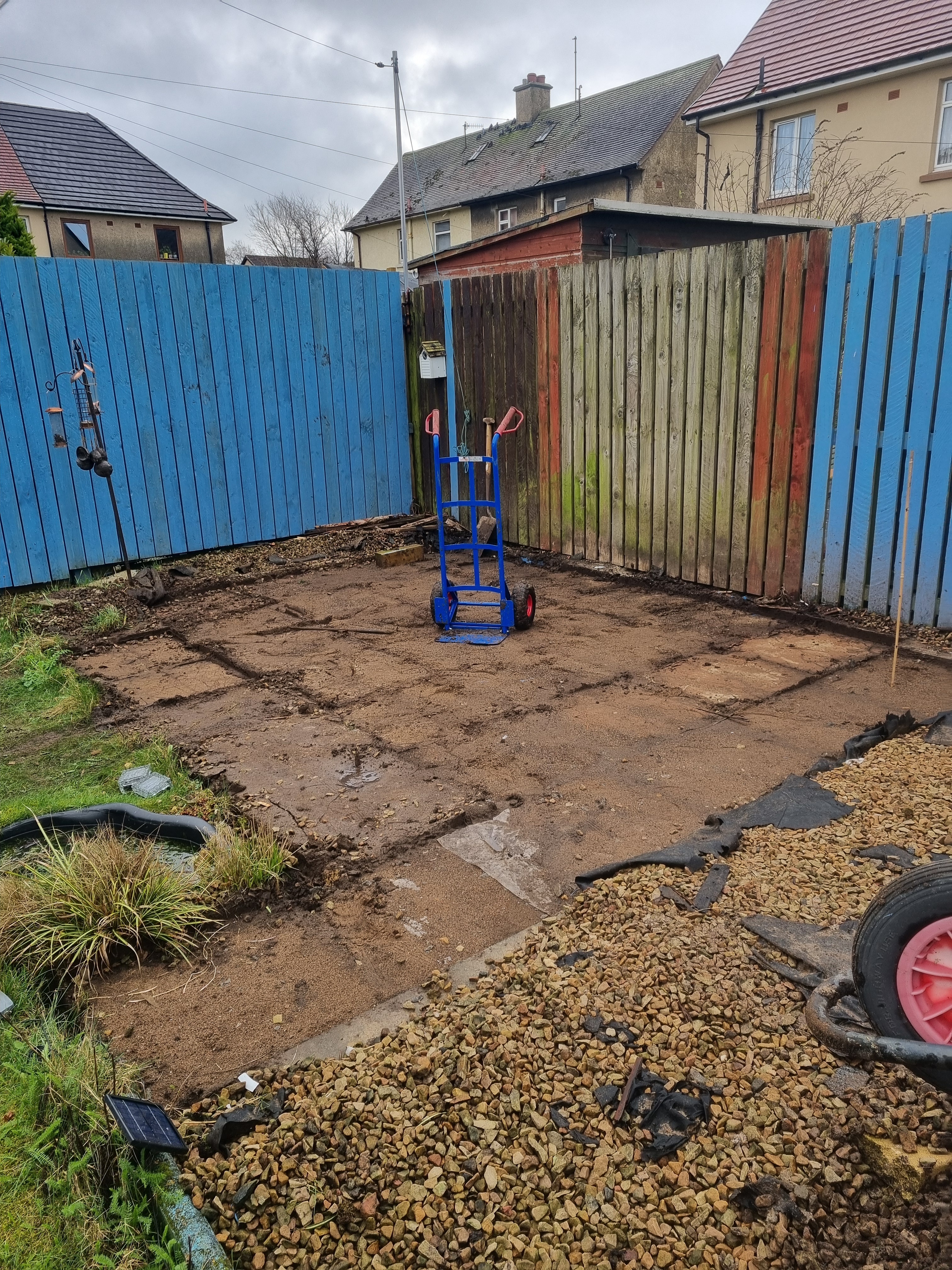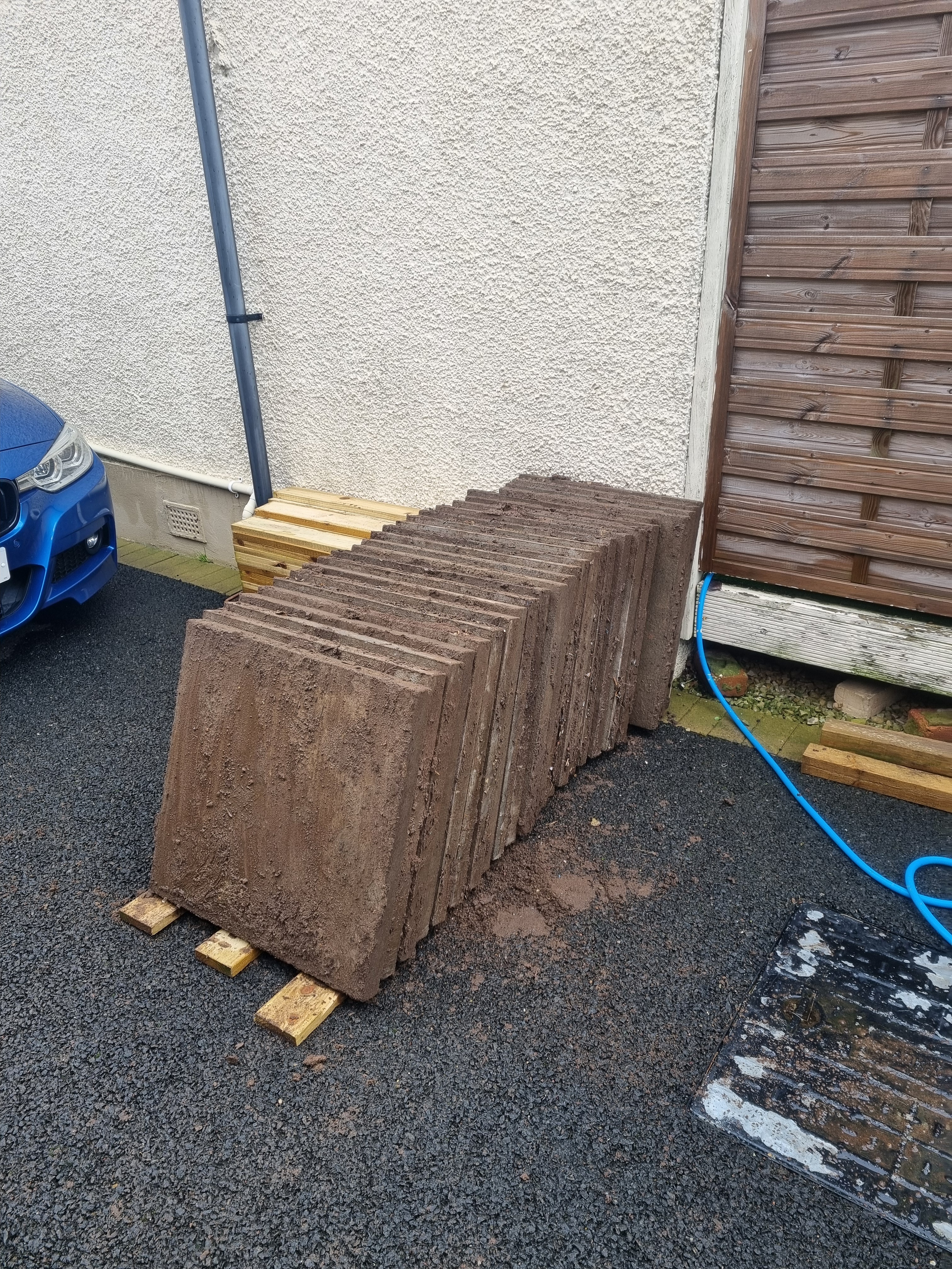 Slabs lifted and stacked neatly ready for a new home - it's all about having the right tools for the job!! Site now ready for digging and levelling...